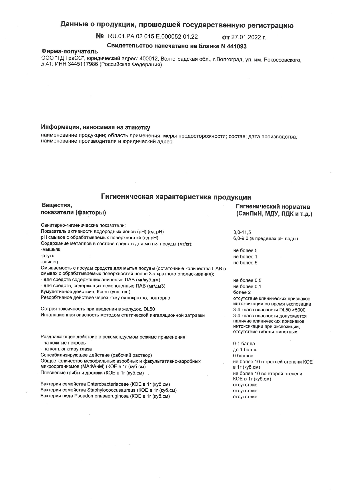 Меры предосторожности: беречь от детей! Хранить вдали от пищевых продуктов. При попадании в глаза немедленно промыть водой. При чувствительной коже и повреждениях кожи избегать длительного контакта со средством.