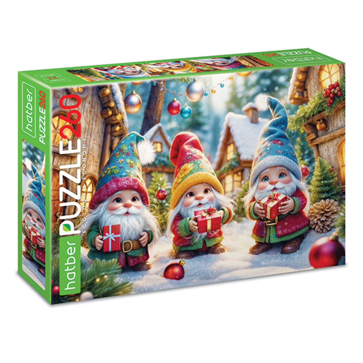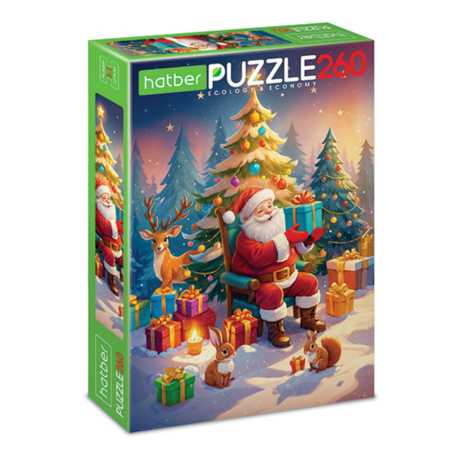 Пазл картонный НОВОГОДНИЙ 260 элементов АССОРТИ, 220х330 мм, HATBER Код товара: 665952 248,46 ₽ Купить Производитель:HATBER Пазл картонный HATBER из 260 элементов – это занимательная развивающая и обучающая игра, которая требует усидчивости, аккуратности, терпения и внимательности. 260 элементов дополнительно упакованы в прозрачный пакетик. Яркий, красочный дизайн придется по вкусу как детям, так и взрослым. Продукция соответствует стандартам качества. Упаковка – картонная коробка в термоусадочной пленке. Размер коробки – 17х24,5х3,8 см. Поставляется в нескольких вариантах дизайна без возможности выбора.Производство: РоссияКоличество элементов: 260 шт.Форма: прямоугольнаяОриентация: ассортиШирина: 220 ммДлина: 330 ммПредназначение: универсальныйСерия: Пазл картонныйДизайн: НовогоднийМатериал: картонУпаковка: картонная коробкаВес: 143 грРазмер упаковки: 3.9 × 24.8 × 17.1 смОбъём: 0.002 м3Промежуточная упаковка: 10 штТранспортная упаковка: 10 штШтрих-код: 4606782620618 Сертификат-1.jpg Сертификат-2.jpg Сертификат-3.jpg