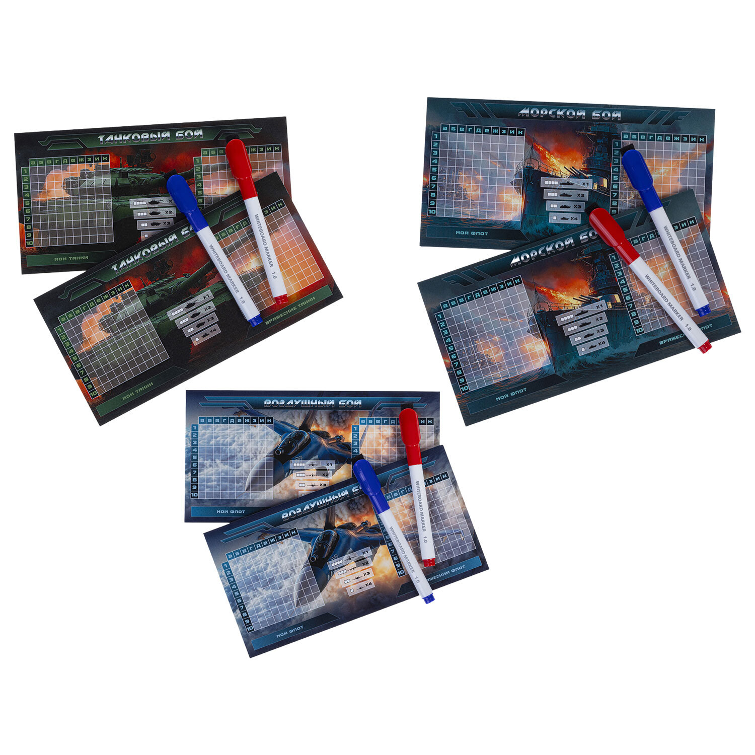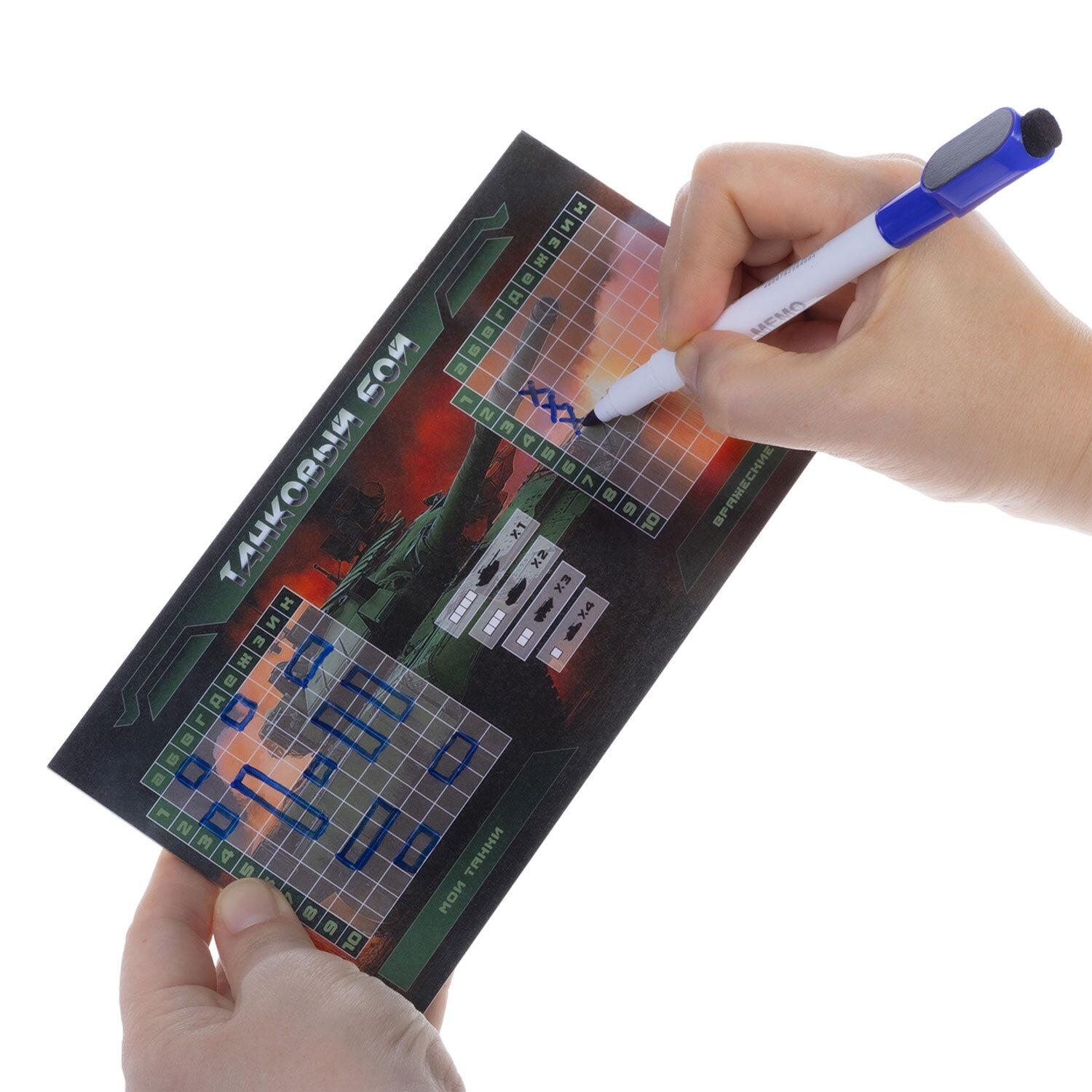 Игра настольная "Пиши-Стирай" МОРСКОЙ/ТАНКОВЫЙ/ВОЗДУШНЫЙ БОЙ, 2 стираемых маркера, ассорти Код товара: 667454 220,47 ₽ Купить Производитель:HATBER Настольные игры - хороший способ весело и интересно провести время в кругу семьи или друзей. Подходят как для семейных вечеров, так и для больших и шумных компаний. Игра "Морской бой" - это классическая настольная игра для двух игроков, цель которой первым потопить весь флот противника. На каждого игрока приходится по одной карточке, на которой отражены два квадрата размером 10х10- игровые поля. В первом квадрате игроки расставляют свои корабли. Во втором квадрате отмечают результаты стрельбы по кораблям противника и их расположение. Дети учатся планировать свои ходы заранее, учитывая возможные варианты действий противника. Это помогает развивать способность предвидеть последствия своих решений. Запоминание местоположений кораблей и ходов соперника способствует развитию зрительной и кратковременной памяти.Производство: РоссияСерия: Игра настольнаяМодель: Настольная играЖанр игры: стратегияВозраст: 3+Количество игровых элементов: 4 шт.Мин. количество игроков: 2Макс. количество игроков: 2Материал игрового поля: картонДлина игрового поля*: 20.5 смШирина игрового поля*: 10.5 смУпаковка: пакетСрок годности: 36 месВес: 83 грРазмер упаковки: 0.5 × 10.5 × 20.5 смОбъём: 0.0002 м3Промежуточная упаковка: 20 штТранспортная упаковка: 20 штШтрих-код: 4606782607589