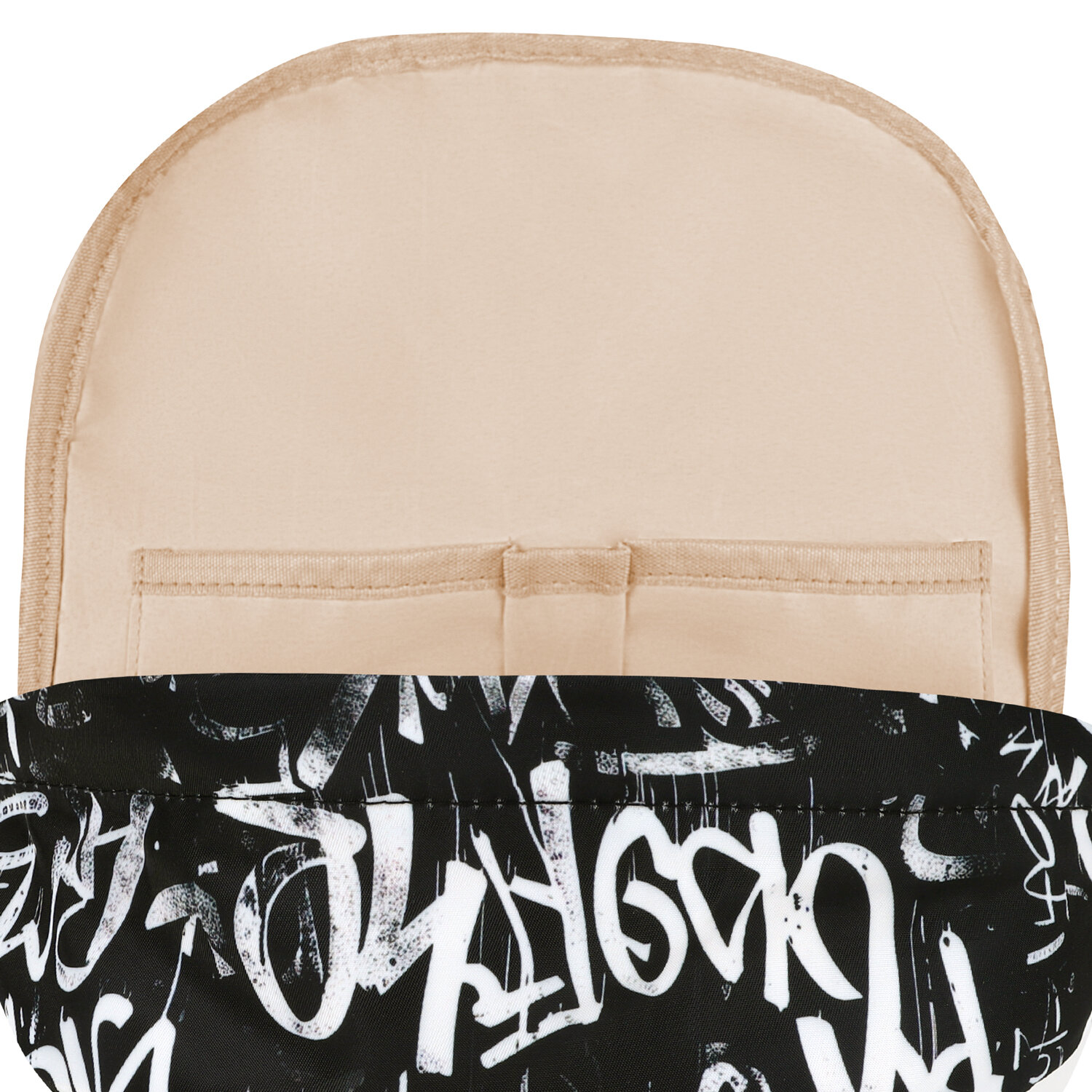 Главная особенность рюкзака – это тактильно приятная и при этом водоотталкивающая ткань с ярким модным принтом. Аксессуар изготовлен из разновидности полиэстера – твил-полиэстера. Благодаря особому переплетению волокон поверхность ткани имеет характерную диагональную структуру. При таком способе плетения нитей получается прочная, плотная, износостойкая ткань. Поверхность ткани шелковистая и мягкая, имеет сатиновый блеск. Твил обладает отличной устойчивостью цвета к солнечным лучам, за ним легко ухаживать.