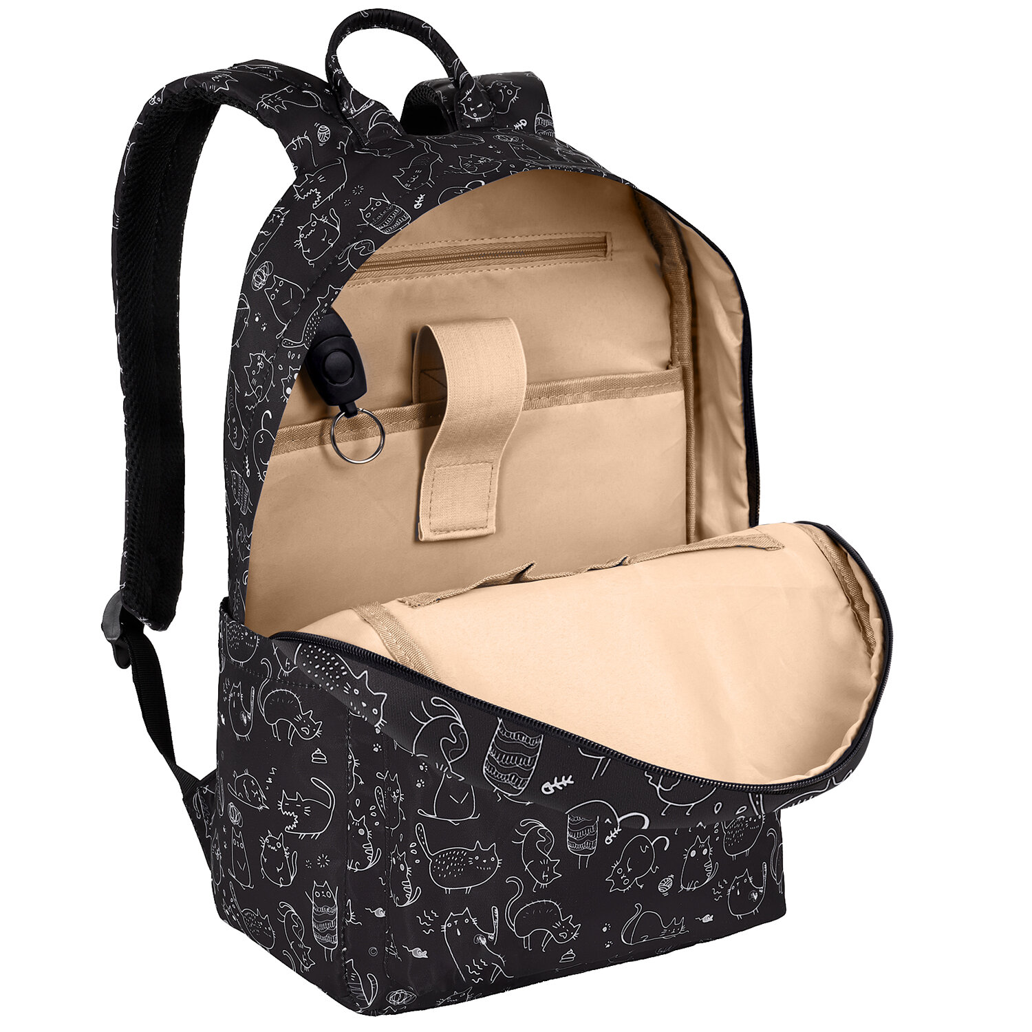 Рюкзаки серии DREAM – удобные, практичные и вместительные. Множество карманов и вместительное основное отделение позволят упорядоченно разложить большое количество вещей различных размеров в зависимости от целей использования рюкзака. Учебные пособия, канцтовары, папки формата А4, крупногабаритные предметы, например, одежда, вещи первой необходимости, такие как салфетки, платочки, бутылочка с водой, ключи, кошелек, документы и другие важные мелочи – все это можно с легкостью разметить в рюкзаке. Немаловажная деталь – это наличие специального уплотненного кармана на липучке, который можно использовать для журналов и тетрадей или для гаджета с диагональю экрана до 14". Также предусмотрен карабин для ключей.