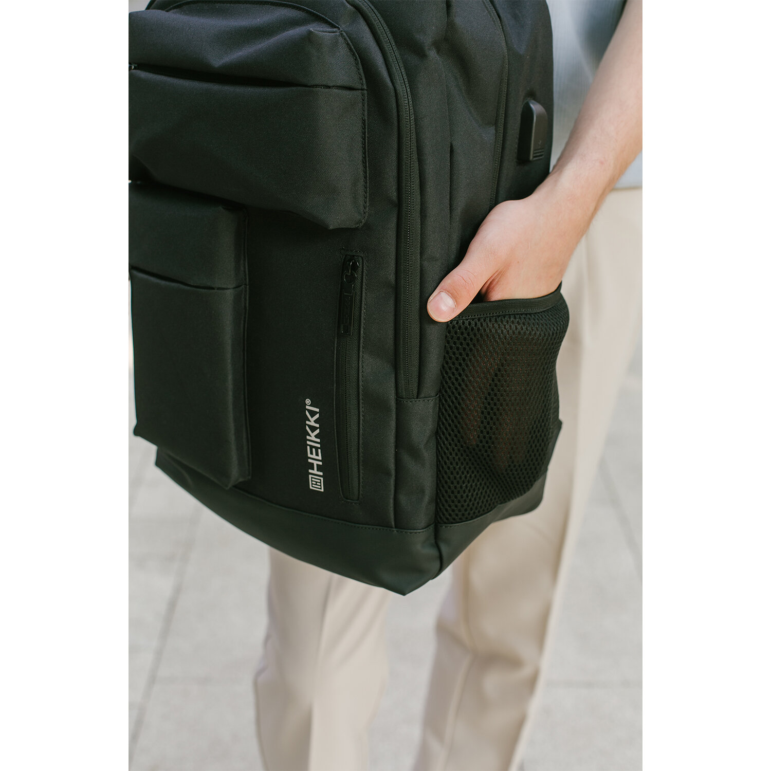 Рюкзак HEIKKI CONCORDANCE (ХЕЙКИ) универсальный, отделение для ноутбука, черный, 47x32x15 см Код товара: 273892 1 227,84 ₽ Купить Производитель:HEIKKI Рюкзак HEIKKI CONCORDANCE – универсальный и стильный аксессуар для работы, учебы и путешествий. Вместительное отделение для ноутбука до 17 дюймов, USB-порт и продуманная организация карманов обеспечат комфорт и удобство в любых условиях. Рюкзак HEIKKI CONCORDANCE изготовлен из прочного полиэстера чёрного цвета и имеет размер 47x32x15 см, oбъем 22 литра и вес 700 грамм. Благодаря таким габаритам рюкзак позволяет комфортно разместить необходимое количество вещей, сохраняя компактность и удобство в повседневном использовании. Основное отделение оснащено мягким карманом для ноутбука до 17 дюймов и дополнительными отделениями для организации ваших вещей. Всего имеется 6 карманов: три небольших передних на молнии, два боковых сетчатых кармана для бутылок или зонтов и небольшой потайной карман на спине для хранения ценных предметов в безопасности. Рюкзак оснащен инновационным USB-портом, который позволяет подзаряжать гаджеты на ходу без необходимости доставать пауэрбанк. Дно рюкзака выполнено из чёрного полиэстера со специальным водонепроницаемым покрытием, что обеспечивает надежную защиту от воды и загрязнений. Вентилируемые и регулируемые плечевые лямки длиной 45 см обеспечивают комфорт даже при длительном ношении, снижая нагрузку на плечи и препятствуя излишнему потоотделению благодаря хорошей циркуляции воздуха. Светоотражающий логотип на передней части повышает вашу безопасность в условиях низкой освещенности. Рюкзак упакован в плотный ПЭТ-пакет для защиты при транспортировке и хранении.Производство: КитайСовместим с диагоналями экрана: 13", 14", 15", 16", 17"Серия: CONCORDANCEТип рюкзака: универсальныйКоличество основных отделений: 2 шт.Количество карманов: 6 шт.Количество карманов из эластичной сетки: 0 шт.USB-порт: даКоличество лямок: 2 шт.Наличие ручки для переноса: даНаличие колес: нетЦвет: черныйМатериал: полиэстерОбъем: 22 лВысота: 47 смШирина: 32 смГлубина: 15 смДлина лямок: 45 смВес: 0.7 кгРазмер упаковки: 7.1 × 49.6 × 38.8 смОбъём: 0.0085 м3Промежуточная упаковка: 20 штТранспортная упаковка: 20 штШтрих-код: 4606224507866 Файлы Сертификат-1.jpg Сертификат-2.jpg Сертификат-3.jpg Сертификат-4.jpg