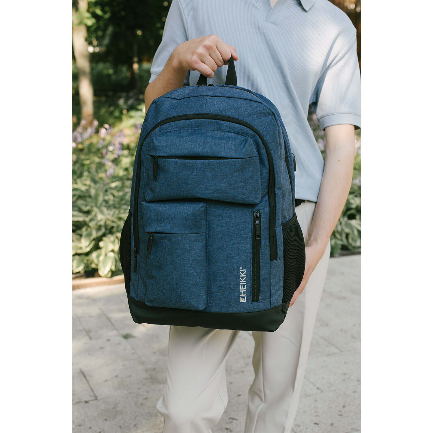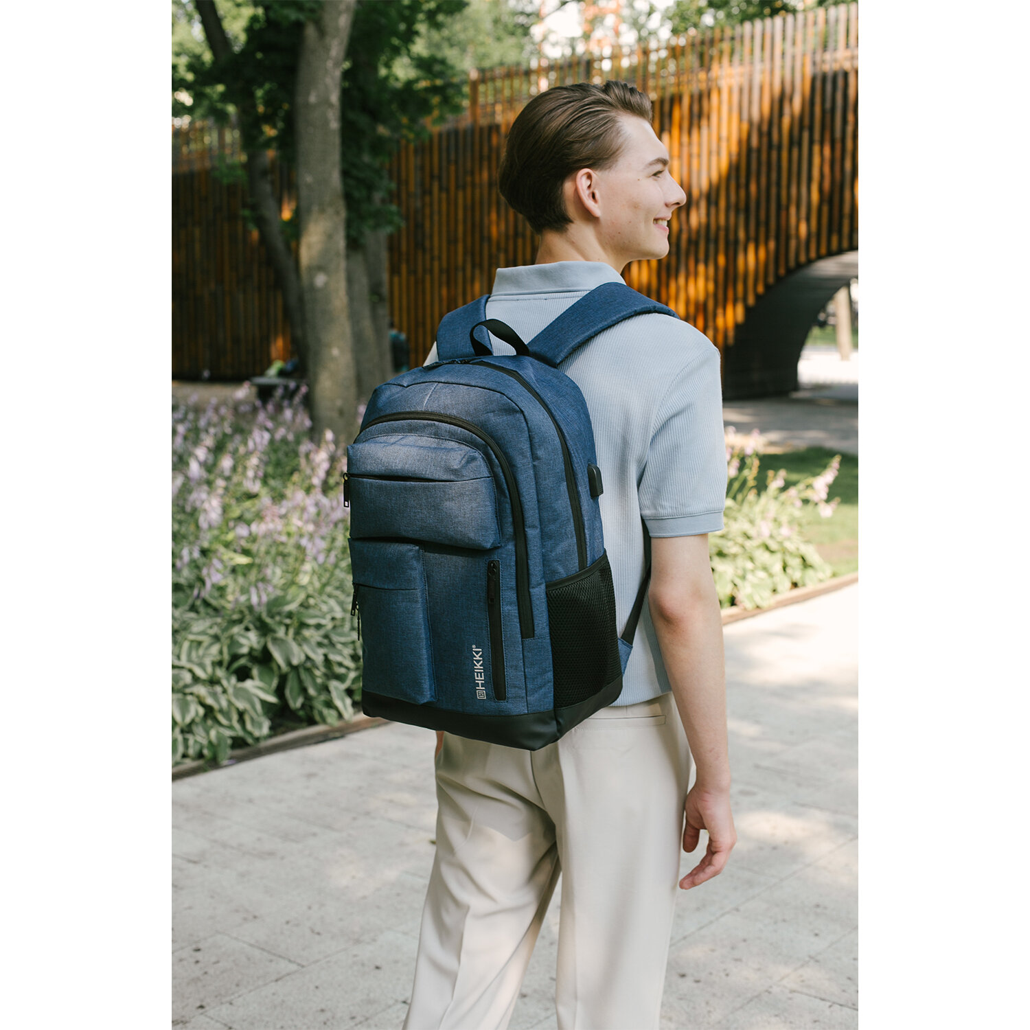 Рюкзак HEIKKI CONCORDANCE (ХЕЙКИ) универсальный, отделение для ноутбука, синий, 47x32x15 см Код товара: 273893 1 227,84 ₽ Купить Производитель:HEIKKI Рюкзак HEIKKI CONCORDANCE – универсальный и стильный аксессуар для работы, учебы и путешествий. Вместительное отделение для ноутбука до 17 дюймов, USB-порт и продуманная организация карманов обеспечат комфорт и удобство в любых условиях. Рюкзак HEIKKI CONCORDANCE изготовлен из прочного полиэстера синего цвета и имеет размер 47x32x15 см, oбъем 22 литра и вес 700 грамм. Благодаря таким габаритам рюкзак позволяет комфортно разместить необходимое количество вещей, сохраняя компактность и удобство в повседневном использовании. Основное отделение оснащено мягким карманом для ноутбука до 17 дюймов и дополнительными отделениями для организации ваших вещей. Всего имеется 6 карманов: три небольших передних на молнии, два боковых сетчатых кармана для бутылок или зонтов и небольшой потайной карман на спине для хранения ценных предметов в безопасности. Рюкзак оснащен инновационным USB-портом, который позволяет подзаряжать гаджеты на ходу без необходимости доставать пауэрбанк. Дно рюкзака выполнено из чёрного полиэстера со специальным водонепроницаемым покрытием, что обеспечивает надежную защиту от воды и загрязнений. Вентилируемые и регулируемые плечевые лямки длиной 45 см обеспечивают комфорт даже при длительном ношении, снижая нагрузку на плечи и препятствуя излишнему потоотделению благодаря хорошей циркуляции воздуха. Светоотражающий логотип на передней части повышает вашу безопасность в условиях низкой освещенности. Рюкзак упакован в плотный ПЭТ-пакет для защиты при транспортировке и хранении.Производство: КитайСовместим с диагоналями экрана: 13", 14", 15", 16", 17"Серия: CONCORDANCEТип рюкзака: универсальныйКоличество основных отделений: 2 шт.Количество карманов: 6 шт.Количество карманов из эластичной сетки: 0 шт.USB-порт: даКоличество лямок: 2 шт.Наличие ручки для переноса: даНаличие колес: нетЦвет: синийМатериал: полиэстерОбъем: 20 лВысота: 47 смШирина: 32 смГлубина: 15 смДлина лямок: 45 смВес: 0.7 кгРазмер упаковки: 6.4 × 49.3 × 40.5 смОбъём: 0.0086 м3Промежуточная упаковка: 20 штТранспортная упаковка: 20 штШтрих-код: 4606224507873 Файлы Сертификат-1.jpg Сертификат-2.jpg Сертификат-3.jpg Сертификат-4.jpg