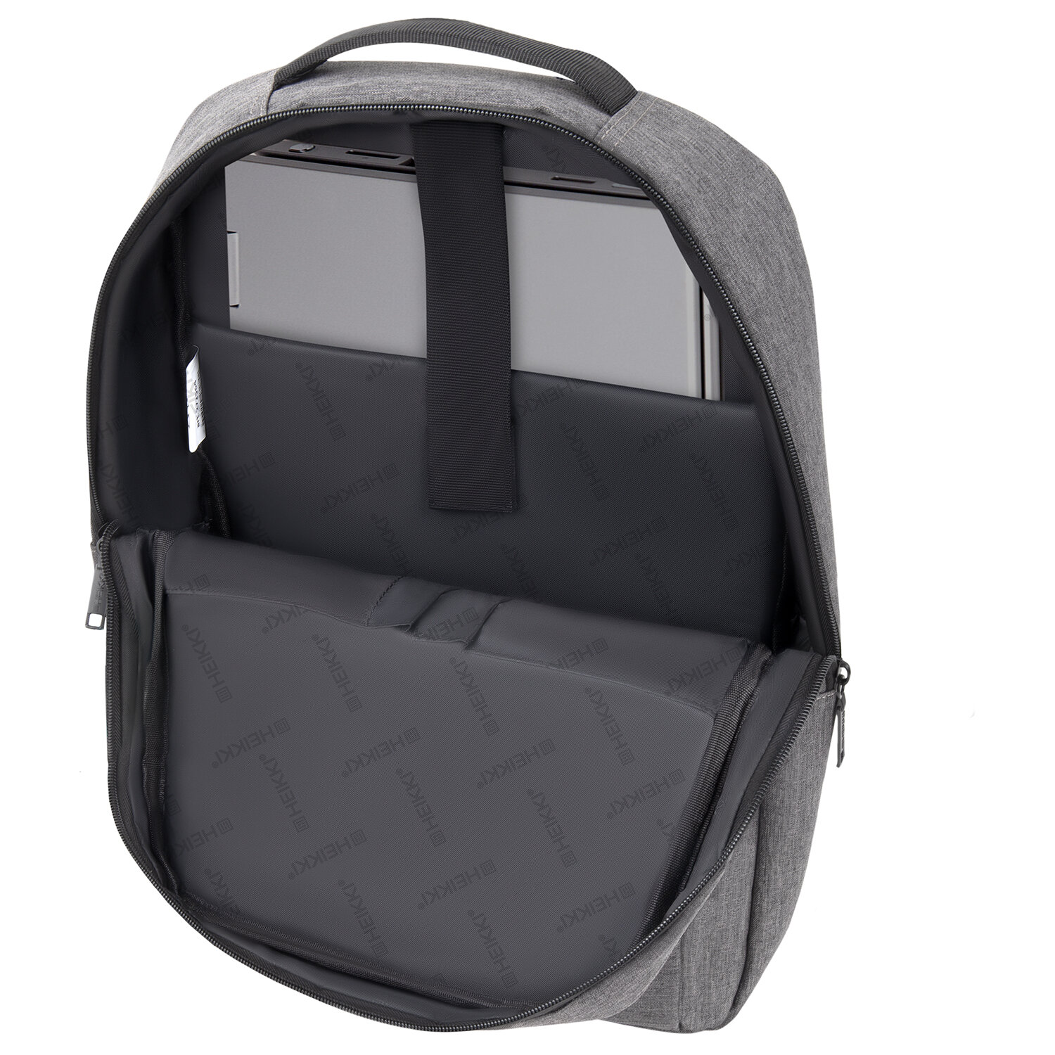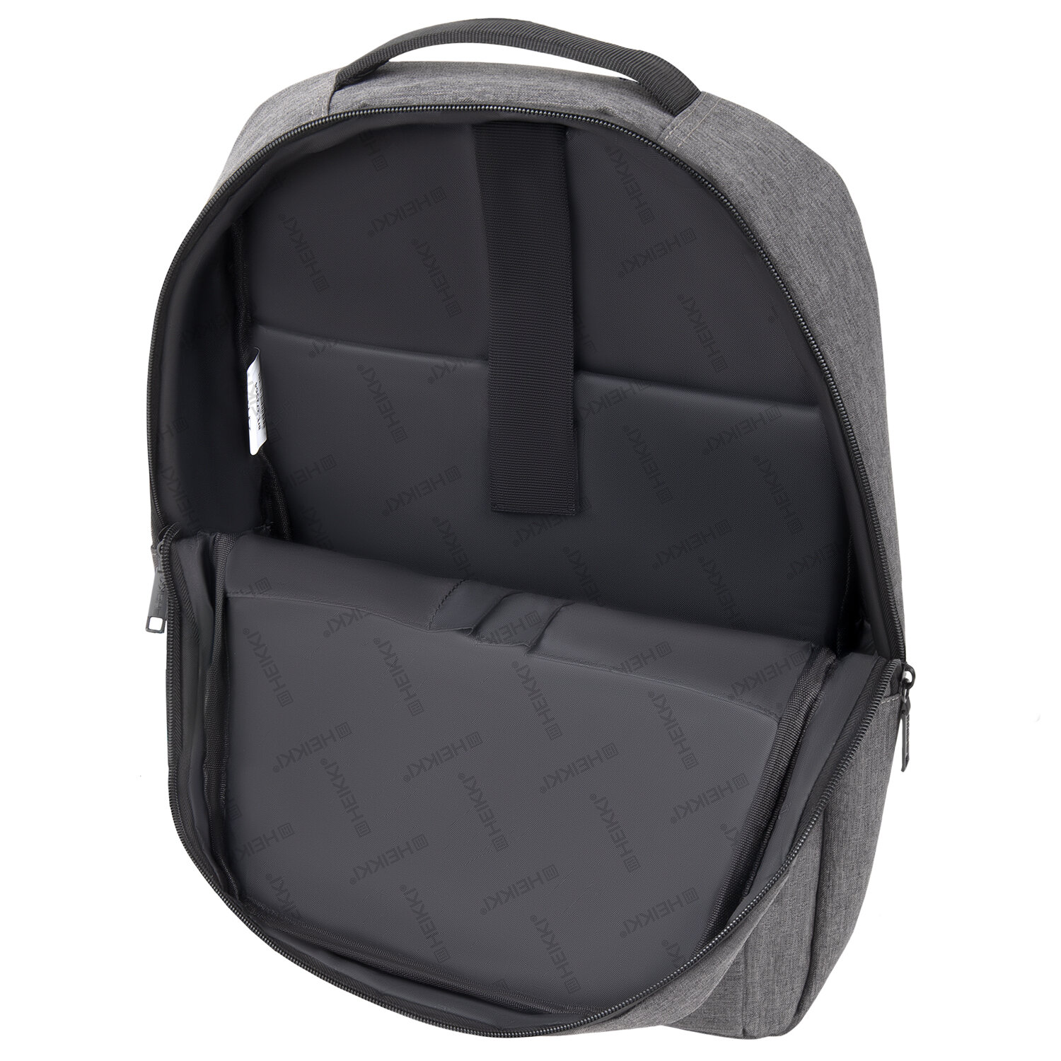 Рюкзак HEIKKI PANEL (ХЕЙКИ), отделение для ноутбука, USB-порт, серый, 44x30x13 см Код товара: 273903 1 301,45 ₽ Купить Производитель:HEIKKI Рюкзак HEIKKI PANEL – универсальный и практичный аксессуар для повседневных задач. Стильный дизайн с продуманной организацией: отделение для ноутбука, USB-порт, багажная лента и водоотталкивающая вставка делают его незаменимым для любого случая. Рюкзак HEIKKI PANEL выполнен из прочного полиэстера и имеет размеры 44x30x13 см, объем 15 литров и вес 570 грамм. Совместим с ноутбуками с диагональю до 16 дюймов. Внешняя часть украшена вставкой из черного водонепроницаемого полиэстера с водоотталкивающим покрытием, защищающей от влаги и дождя. Это универсальный рюкзак с одним основным отделением, внутри которого расположен карман для ноутбука и карман-органайзер для мелочей. Внутри – 5 карманов: два передних на молнии, один боковой для бутылки или зонта, а также карман-органайзер и карман для ноутбука. Встроенный USB-порт позволяет заряжать гаджеты на ходу, а багажная лента помогает фиксировать рюкзак на верхней ручке чемодана. Вентилируемые и регулируемые плечевые лямки длиной 45 см обеспечивают комфорт, снижают нагрузку и способствуют хорошей циркуляции воздуха. Рюкзак упакован в плотный ПЭТ-пакет для защиты при транспортировке и хранении.Производство: КитайСовместим с диагоналями экрана: 13", 14", 15", 16"Серия: PANELТип рюкзака: универсальныйКоличество основных отделений: 1 шт.Количество карманов: 5 шт.Количество карманов из эластичной сетки: 0 шт.USB-порт: даКоличество лямок: 2 шт.Внутренний органайзер: даНаличие ручки для переноса: даНаличие колес: нетЦвет: серыйМатериал: полиэстерОбъем: 15 лВысота: 44 смШирина: 30 смГлубина: 13 смДлина лямок: 40 смВес: 0.57 кгРазмер упаковки: 5.4 × 47 × 37.8 смОбъём: 0.0083 м3Промежуточная упаковка: 20 штТранспортная упаковка: 20 штШтрих-код: 4606224507958 Файлы Сертификат-1.jpg Сертификат-2.jpg Сертификат-3.jpg Сертификат-4.jpg