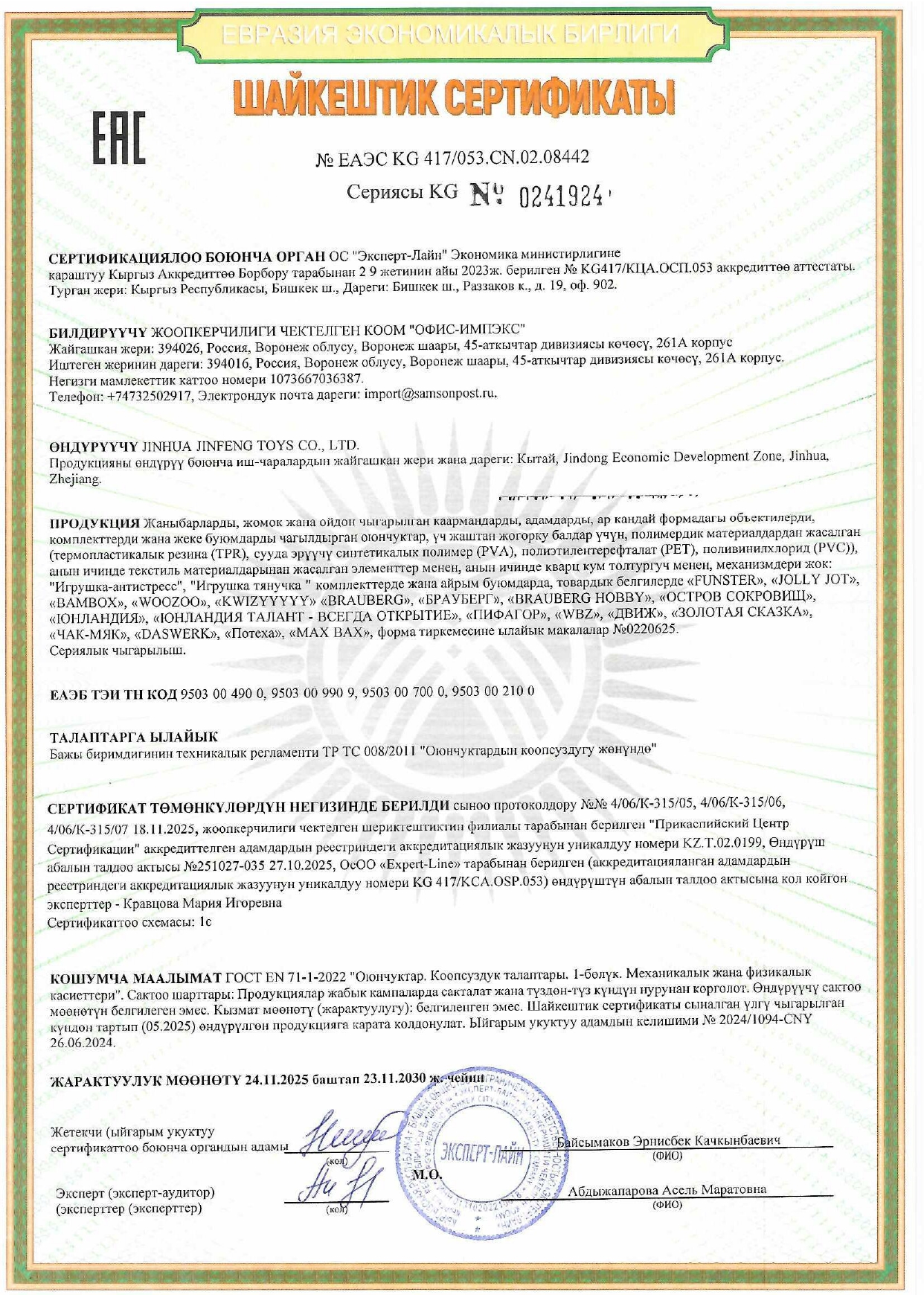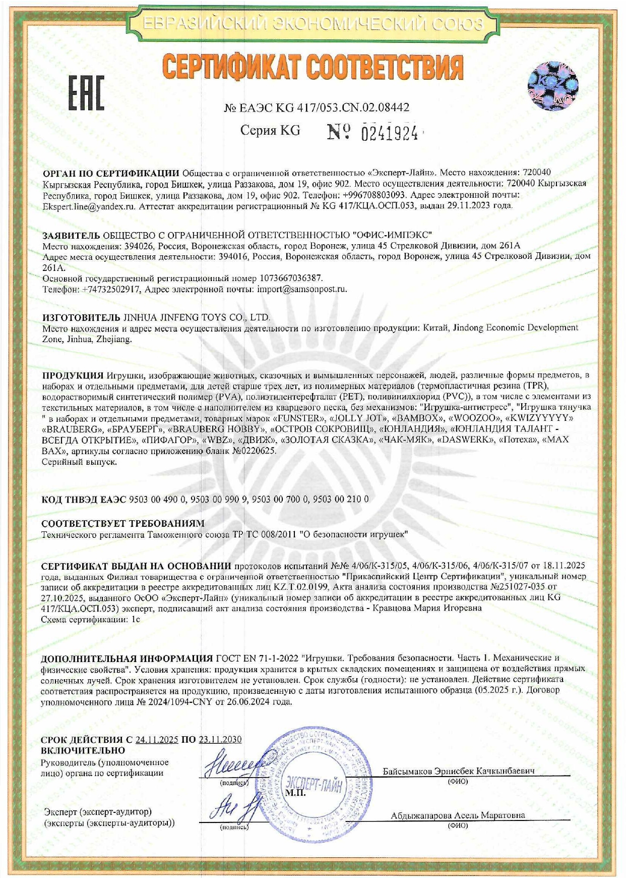 Игрушка-антистресс "ЛЕСНОЙ МОНСТР", 14 см, ассорти 4 вида, JOLLY JOT (ДЖОЛЛИ ДЖОТ) Код товара: 665779 345,95 ₽ Купить Производитель:JOLLY JOT Игрушка-антистресс "ЛЕСНОЙ МОНСТР" подходит для детей и взрослых. Игрушку можно мять, тянуть, кидать, сжимать, создавать различные формы. Уникальный дизайн, реалистичная форма и приятная текстура подарят вам различные визуальные и тактильные ощущения. Игрушка не боится воды и легко чистится от любых загрязнений. Не токсично!Производство: КитайТип товара: игрушки-антистресс монстрыНазначение: повышает чувствительность пальцев, развивает моторику, способствует релаксации, устраняет волнениеСерия: монстрыВозраст ребенка от: 3 летЦвет: ассортиСюжет: Лесные монстрыМатериал: полимерВысота: 14 смШирина: 11 смУпаковка: блистер с европодвесомВес: 320 гСрок годности: 60 месРазмер упаковки: 5.5 × 25.4 × 15.2 смОбъём: 0.0018 м3Промежуточная упаковка: 12 штТранспортная упаковка: 12 штШтрих-код: 4606224458625 Файлы Сертификат-1.jpg Сертификат-2.jpg Сертификат-3.jpg Сертификат-4.jpg Сертификат-5.jpg Сертификат-6.jpg