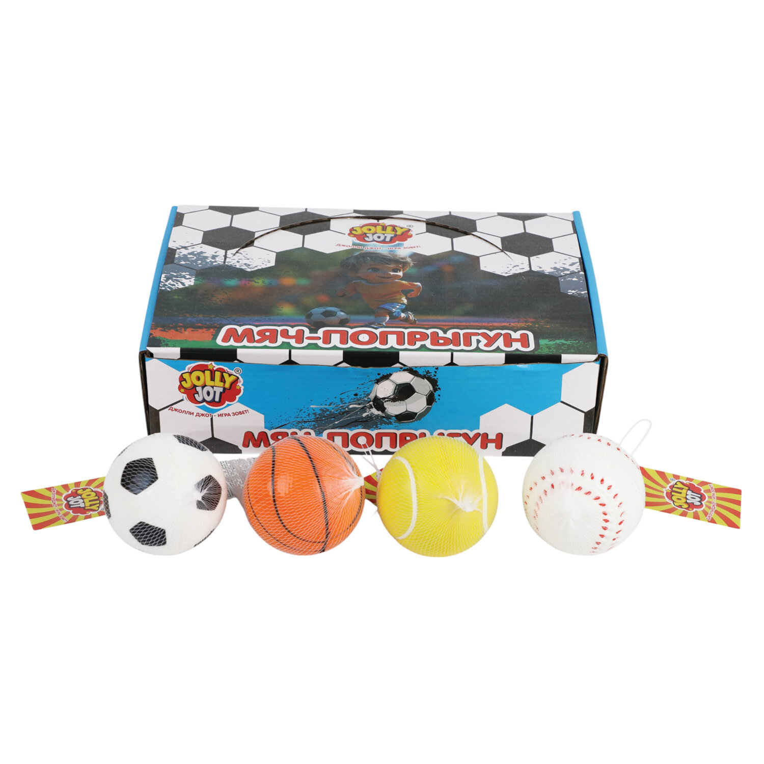 Мяч-попрыгун СПОРТ, 6 см, полиуретан ассорти, 4 вида, JOLLY JOT (ДЖОЛЛИ ДЖОТ) Код товара: 666127 99,45 ₽ Купить Производитель:JOLLY JOT Мяч-попрыгун JOLLY JOT – это действительно универсальное развлечение для детей и домашних питомцев! С таким разнообразием, как футбольные, бейсбольные, баскетбольные и теннисные мячи, каждый найдет себе что-то по душе. Что делает мяч попрыгун особенным? • Мяч-попрыгун JOLLY JOT обладает невероятной прыгучестью, легко отскакивает на высоту до 5 метров, принося массу удовольствия от игры. • Мяч-попрыгун JOLLY JOT – это игрушка-антистресс. Просто сжимайте мяч в руках или подбрасывайте в перерывах между делами. • Мяч-попрыгун JOLLY JOT изготовлен из надёжных полимерных материалов, благодаря которым он долго сохраняет яркость красок и упругость. Мяч-попрыгун JOLLY JOT понравится мальчикам, девочкам и взрослым. Это подарок на 23 февраля и день рождения, на 8 марта и детям в садик. Ассорти – 4 вида.Производство: КитайТип товара: мяч-попрыгунНазначение для: дома, пляжа, улицыДиаметр: 6 смЦвет: ассортиКоличество в комплекте: 1 шт.Материал: полиуретанСерия: спортВозраст: 3+Упаковка: сеткаВес: 0.037 гРазмер упаковки: 6.2 × 6.2 × 6.2 смОбъём: 0.0003 м3Промежуточная упаковка: 12 штТранспортная упаковка: 288 штШтрих-код: 4606224499161 Файлы Сертификат-1.jpg Сертификат-2.jpg Сертификат-3.jpg Сертификат-4.jpg Сертификат-5.jpg Сертификат-6.jpg