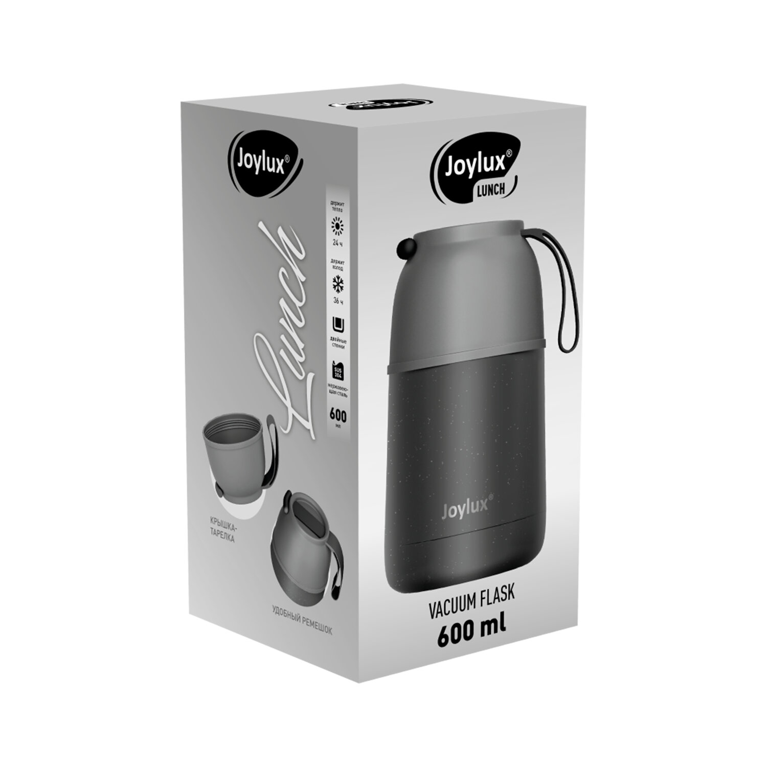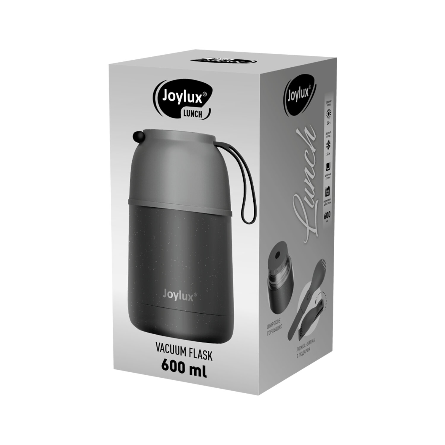 Термос 0,6 л для еды/напитков с широким горлом, JOYLUX (ДЖОЙЛЮКС) LUNCH, нержавеющая сталь SUS304, ложка-вилка Код товара: 700326 867,22 ₽ Купить Производитель:Joylux Компактный термос JOYLUX LUNCH объемом 0,6 л сделан из высококачественной нержавеющей стали SUS304. Благодаря своей конструкции и материалам сохранит ваш обед горячим до 24 часов. Термос JOYLUX LUNCH выполнен из долговечной пищевой нержавеющей стали SUS304 и безопасного для здоровья нетоксичного пластика (BPA free). Вакуумная конструкция с двойными стенками, силиконовыми уплотнителями и надёжной крышкой обеспечивает полную герметичность и защиту от протеканий. Нержавеющая сталь SUS304 внутри и снаружи помогает термосу сохранять первозданный вид даже при постоянном использовании, а специальное покрытие корпуса делает каждый термос уникальным – абсолютно идентичных позиций по дизайну нет. Удержание температуры зависит от условий использования: частоты открывания, времени нахождения в открытом состоянии, температуры окружающей среды, начальной температуры наливаемой жидкости. Термос JOYLUX – это универсальное решение для тех, кто ценит удобство и функциональность. С ним Вы сможете брать с собой первые и вторые блюда, напитки или даже мороженое: широкое горлышко позволяет есть прямо из термоса, а вместительная крышка превращается в удобную тарелку. В комплекте также есть раскладная пластиковая вилка-ложка, а ремешок на крышке упрощает переноску. Особая система с винтовой пробкой и кнопкой для стравливания давления делает использование термоса максимально безопасным – вы легко откроете его, не рискуя обжечься. Термос имеет оптимальный объем 0,6 л, высоту 19,2 см, диаметр донышка 10 см.Производство: КитайОбъем: 0.6 лТип горла: широкоеКомплектация: вилка, ложка, ремешокСерия: LUNCHВысота: 19.2 смДиаметр: 10 смЦвет: серыйМатериал: нержавеющая сталь 304Тип упаковки: картонная коробкаВес: 534 грРазмер упаковки: 10.7 × 19.9 × 10.7 смОбъём: 0.0028 м3Промежуточная упаковка: 20 штТранспортная упаковка: 20 штШтрих-код: 4606224473673