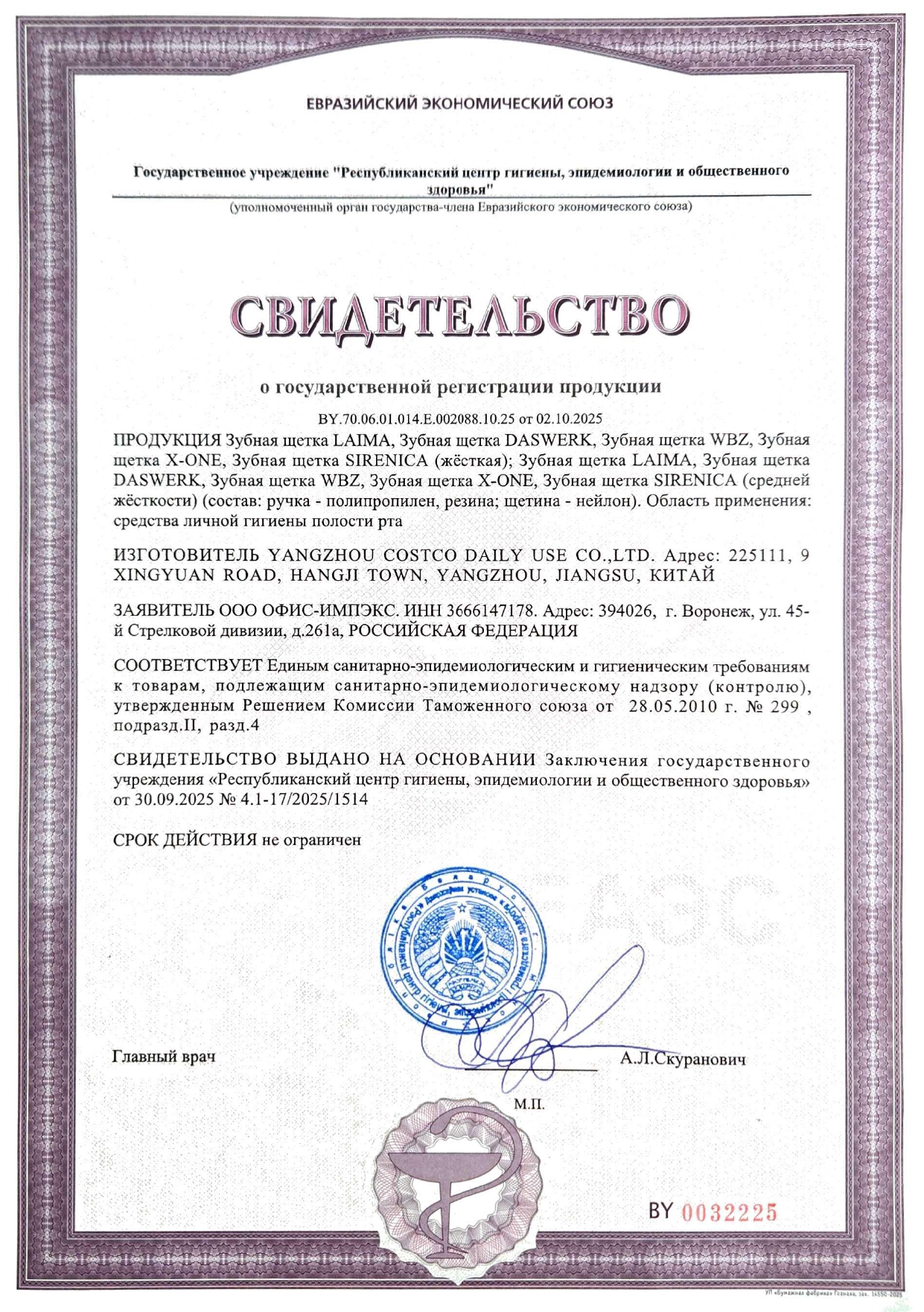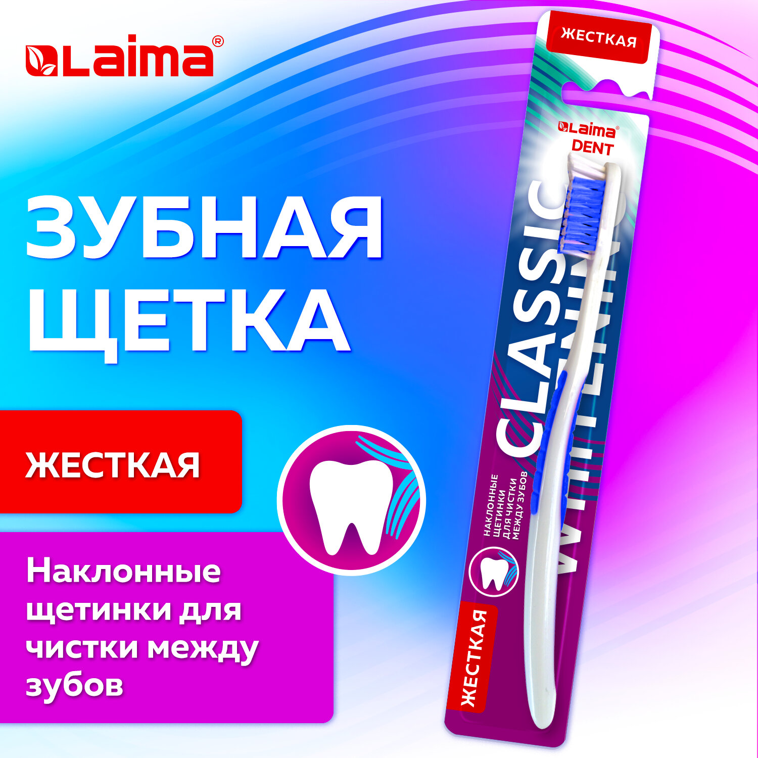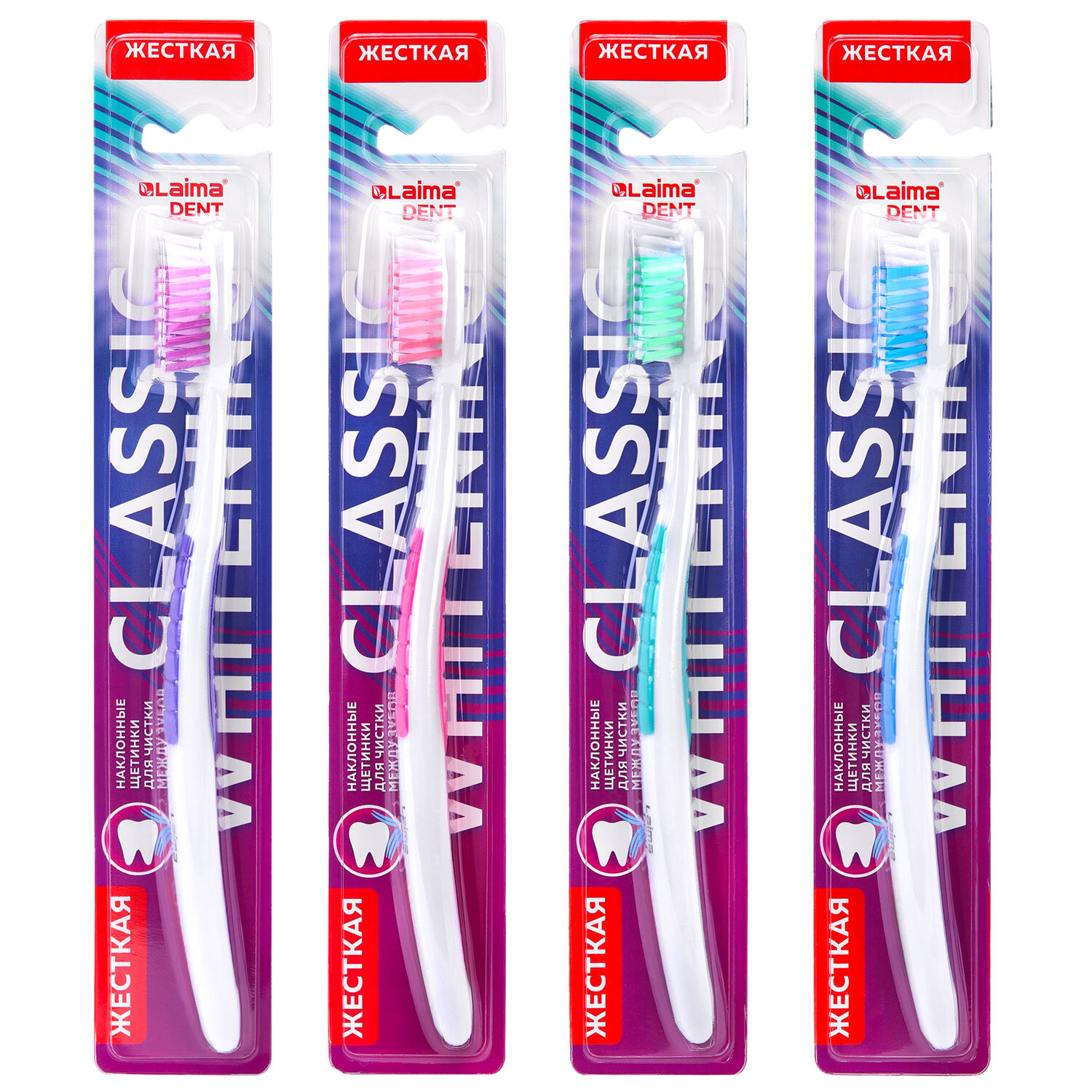 Зубная щетка жесткая, для быстрого очищения и безопасного отбеливания, ассорти 4 цвета, LAIMA DENT Код товара: 609313 35,63 ₽ Купить Производитель:LAIMA DENT Зубная щетка LAIMA DENT– идеальный выбор для всей семьи! Обеспечивает качественную гигиену полости рта. Жесткая щетина обеспечивает максимальное очищение, эффективно удаляет налет и бактерии. Подходит для быстрого очищения и безопасного отбеливания. Щетинки высокой жесткости эффективно удаляют налет и отбеливают зубную эмаль. Компактная головка щетки легко проникает в труднодоступные места. Эргономичная ручка с резиновым упором для большого пальца. Важно: перед использованием новую зубную щетку промыть в теплой воде (не более 60 °С) с мылом. Более высокая температура воды может деформировать материал щетки и её ручки. Во время использования рекомендуется хранить щетку в вертикальном положении, щетиной вверх. Рекомендуемый срок службы зубной щетки: 2-3 месяца. Цвет щетки – ассорти без возможности выбора (4 цвета).Производство: КитайТип товара: зубная щеткаЖесткость щетины: жесткаяПрорезиненная вставка на рукоятке : даКоличество в упаковке: 1 шт.Особенности щетки: с наклонными щетинкамиСерия: DENTВозрастная группа: взрослаяЦвет ассорти: даВес: 27 грРазмер упаковки: 1.9 × 24 × 4.2 смОбъём: 0.0002 м3Промежуточная упаковка: 12 штТранспортная упаковка: 144 штШтрих-код: 4606224439419 Сертификат-1.jpg Сертификат-2.jpg
