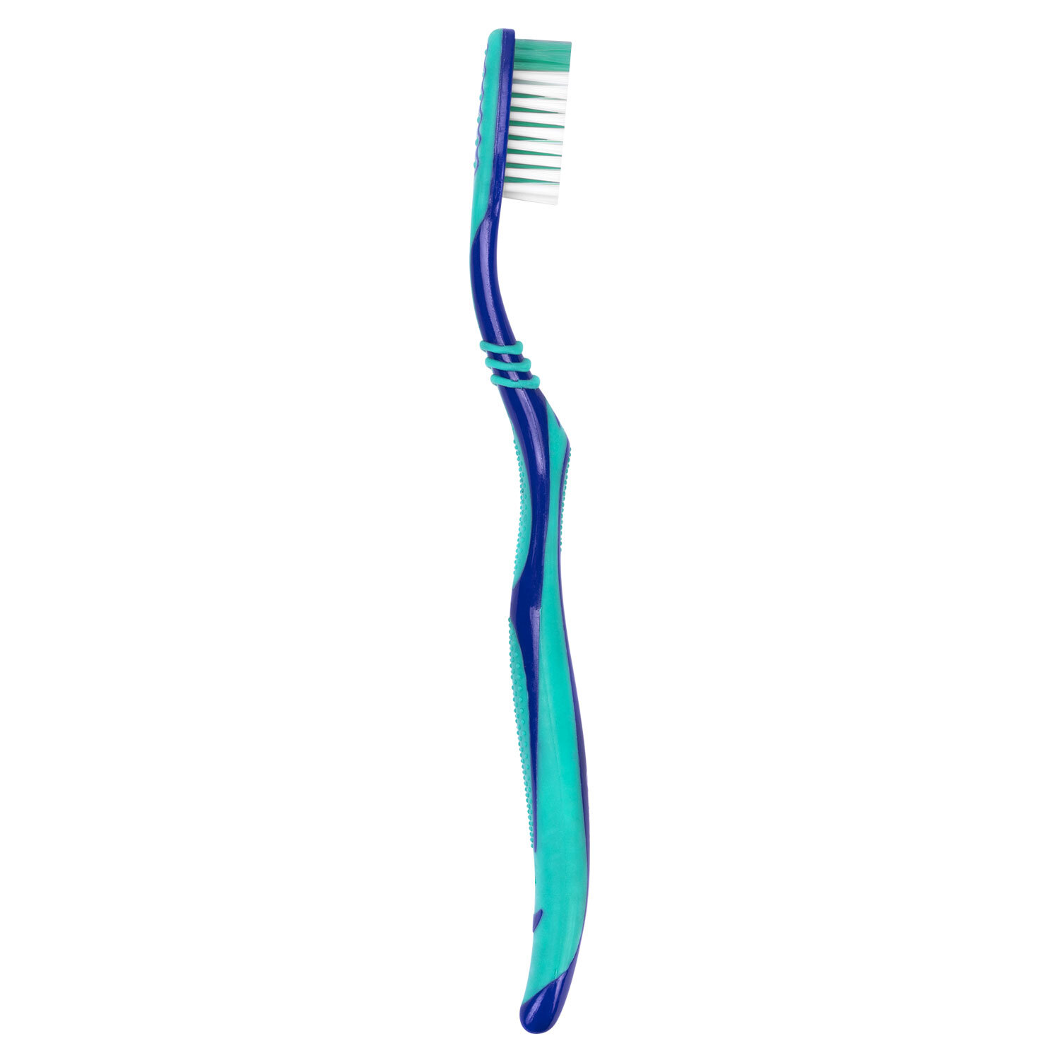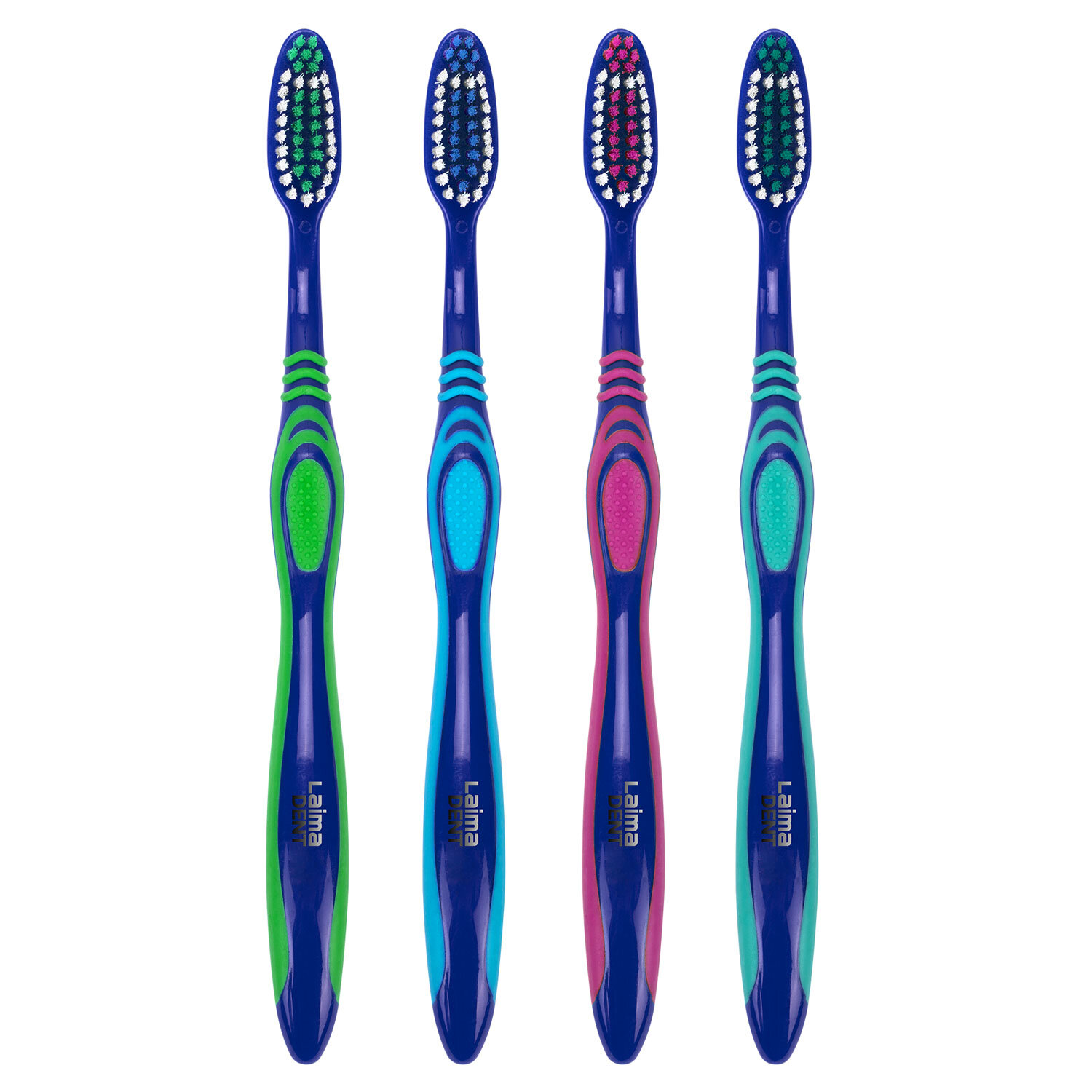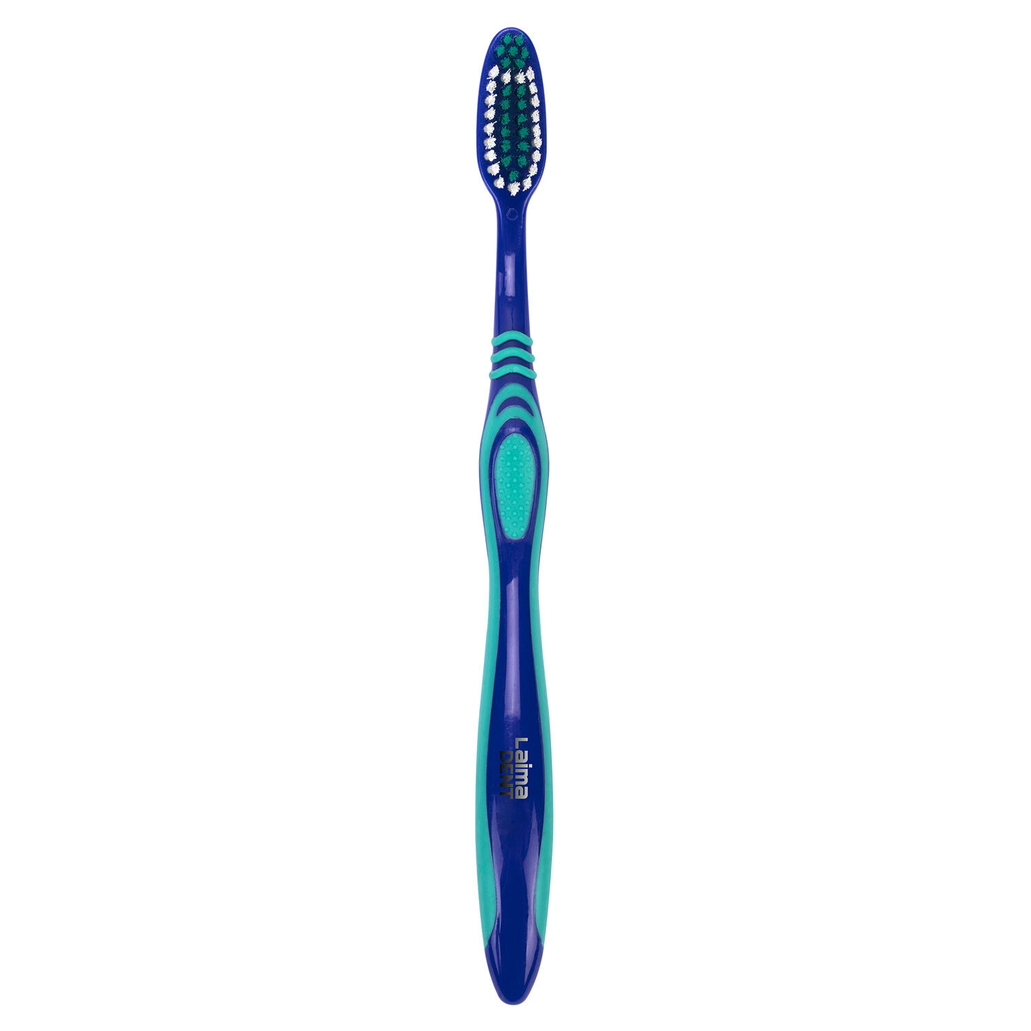 Зубная щетка средней жесткости, с чисткой языка, гибкая, КОМПЛЕКТ 4 шт., LAIMA DENT Код товара: 609323 152,78 ₽ Купить Производитель:LAIMA DENT Зубная щетка LAIMA DENT – идеальный выбор для всей семьи! Обеспечивает качественную гигиену полости рта. Щетина средней жесткости обеспечивает максимальное очищение, щетинки эффективно удаляют налет и бактерии, предотвращая кариес и зубной камень. Массажная вставка обеспечивает бережную чистку языка. Компактная головка щетки легко проникает в труднодоступные места. Удобная ручка для комфортного захвата. Важно! Перед использованием новую зубную щетку промыть в теплой воде (не более 60 °С) с мылом. Более высокая температура воды может деформировать материал щетки и её ручки. Во время использования рекомендуется хранить щетку в вертикальном положении, щетиной вверх. Рекомендуемый срок службы зубной щетки – 2-3 месяца.Производство: КитайТип товара: зубная щеткаЖесткость щетины: средняяНаличие скребка для языка: даПрорезиненная вставка на рукоятке : даКоличество в упаковке: 4 шт.Особенности щетки: с чисткой языкаСерия: DENT SETВозрастная группа: взрослаяВес: 94 грРазмер упаковки: 2.2 × 24 × 8.8 смОбъём: 0.0007 м3Промежуточная упаковка: 12 штТранспортная упаковка: 72 штШтрих-код: 4606224439518 Сертификат-1.jpg Сертификат-2.jpg