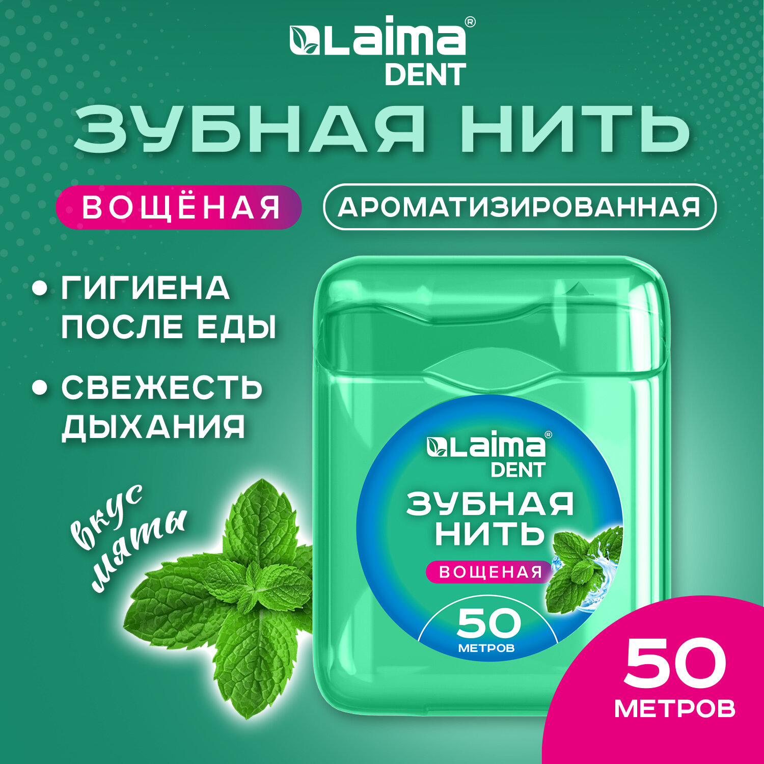 Зубная нить вощеная 50 м, мягкая забота о деснах, ВКУС МЯТЫ, LAIMA DENT Код товара: 609413 95,2 ₽ Купить Производитель:LAIMA DENT Зубная нить предназначена для ежедневного ухода за полостью рта, предотвращает кариес и неприятный запах во рту. Зубная нить вощеная 50 метров с ароматом мяты упакована в стандартный корпус с резаком и блистер. Зубная нить изготовлена из высококачественного нейлона, корпус – из полипропилена. Вощеное покрытие облегчает скольжение нити между зубами, а аромат мяты придает дополнительный освежающий эффект после использования. Зубная нить – незаменимое средство для бережной очистки межзубных пространств от остатков пищи и зубного налета.Производство: КитайТип товара: зубная нитьКоличество в комплекте: 1 шт.Длина нити: 50 мВощеная: даАромат: мятаСерия: DentМатериал: нейлонУпаковка: блистер с европодвесомВес: 25 грРазмер упаковки: 1.8 × 11 × 6.7 смОбъём: 0.0002 м3Промежуточная упаковка: 12 штТранспортная упаковка: 288 штШтрих-код: 4606224440873 Сертификат-1.jpg