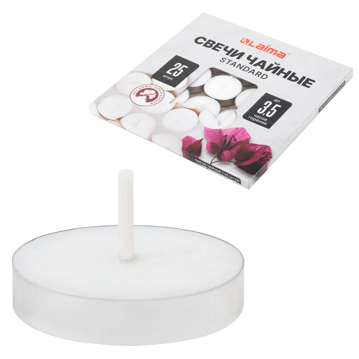 Свечи чайные Standard, до 3,5 часов горения, вес 9 г, КОМПЛЕКТ 25 шт., в гильзе, LAIMA, 609196 Код товара: 609196 151,27 ₽ Купить Производитель:LAIMA Чайные свечи LAIMA Standard – приятное дополнение к сервировке. Используются в ароматической лампе, декоративных фонарях, подсвечниках различной формы, на подставках для подогрева (например, поддержание температуры в чайнике с чаем и т.д.). Чайные свечи сочетают в себе стильный дизайн и высокое качество. Они изготовлены из безопасного парафина, который обеспечивает длительное и равномерное горение. Алюминиевая гильза не только защищает свечу от повреждений, но и придает ей элегантный вид. Свечи можно использовать как с подсвечником, так и без него. Хлопковый фитиль обеспечивает чистое и спокойное горение без копоти и дыма. Время горения каждой свечи составляет 3,5 часа, на протяжении которых можно наслаждаться светом и теплом. Диаметр каждой свечи составляет 3,75 см, что делает их идеальными для использования в любом интерьере. Рекомендуется размещать на огнестойких и жаростойких поверхностях. Идеальный выбор для создания уютной и праздничной атмосферы в вашем доме или в качестве подарка для близких и друзей.Производство: КитайТип свечи: чайные в гильзеКоличество в комплекте: 25 шт.Горение до: 3.5 часовФорма: кругДиаметр: 3.75 смВысота: 0.8 смЦвет: белыйСерия: StandardВес: 9 гУпаковка: коробка с термоусадкойРазмер упаковки: 1.2 × 18.7 × 18.8 смОбъём: 0.0005 м3Промежуточная упаковка: 40 штТранспортная упаковка: 40 штШтрих-код: 4606224433738 Файлы Сертификат-1.jpg Сертификат-2.jpg Сертификат-3.jpg Сертификат-4.jpg Сертификат-5.jpg Сертификат-6.jpg Сертификат-7.jpg Сертификат-8.jpg Сертификат-9.jpg Сертификат-10.jpg Сертификат-11.jpg Сертификат-12.jpg Сертификат-13.jpg Сертификат-14.jpg Сертификат-15.jpg Сертификат-16.jpg Сертификат-17.jpg Сертификат-18.jpg Сертификат-19.jpg Сертификат-20.jpg Сертификат-21.jpg Сертификат-22.jpg Сертификат-23.jpg Сертификат-24.jpg Сертификат-25.jpg Сертификат-26.jpg