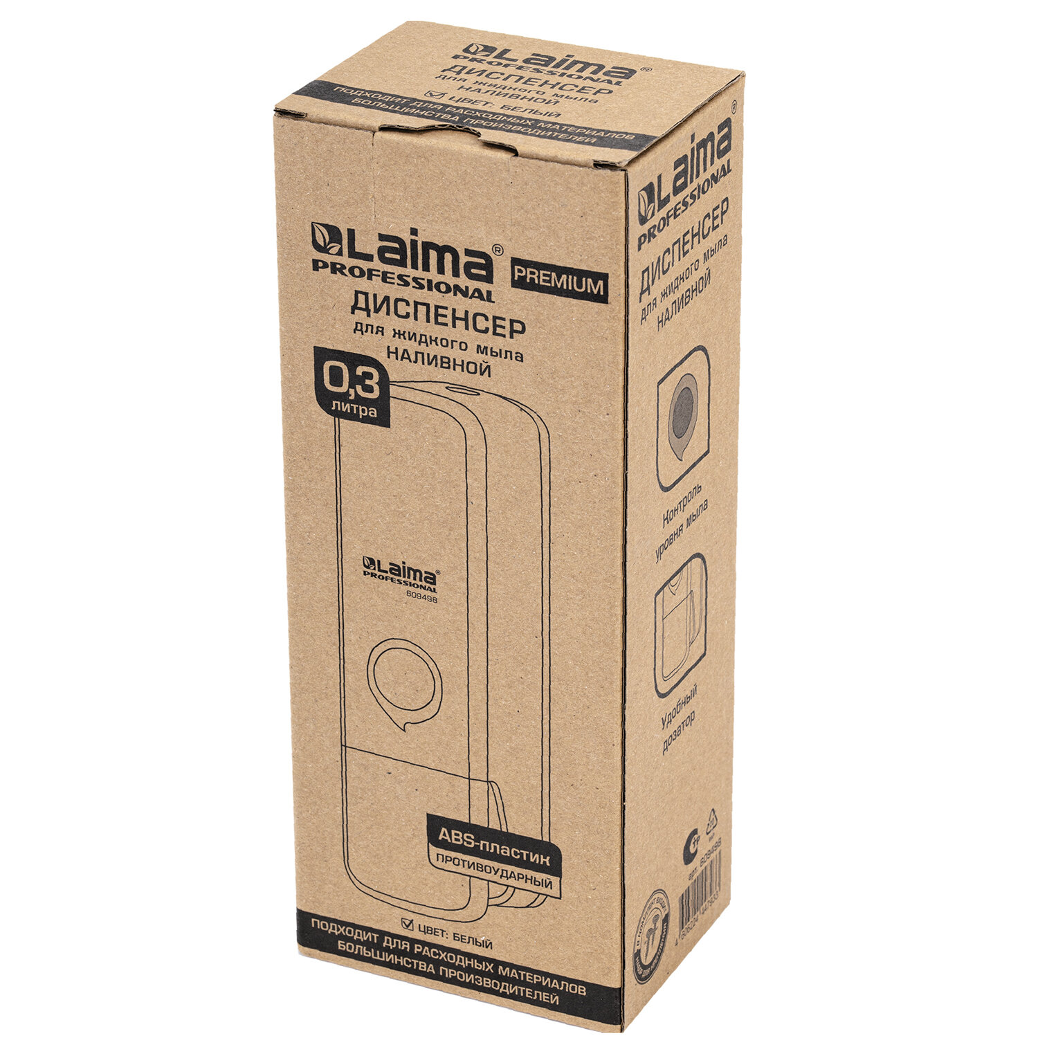Дозатор для жидкого мыла LAIMA PREMIUM НАЛИВНОЙ, 0,3 л, белый, ABS-пластик Код товара: 609498 768,73 ₽ Купить Производитель:LAIMA Дозатор для жидкого мыла LAIMA объёмом 0,3 л прекрасно подойдёт для использования как в бытовых условиях, так и в небольших офисах, кафе и предприятиях малого бизнеса. Отличается современным дизайном и надежной конструкцией. Дозатор для жидкого мыла LAIMA наливного типа изготовлен из АБС-пластика. Объём контейнера для расходных материалов – 0,3 л. Может применяться не только с жидким мылом, но и с другими моющими средствами в гелеобразной форме, таких как жидкость для мытья посуды, моющие средства и т.д. В комплект поставки входит набор для монтажа на стену со сверлением стены и без сверления (шурупы с пластиковыми дюбелями и монтажная пластина с клеевым слоем).Производство: КитайОбъем: 0.3 лТип диспенсера: наливной для жидкого мылаАртикул: 609498Серия: PremiumДиспенсерная система: нетУправление: механическоеИндикаторы: окно для контроля уровня мылаКомплектация: крепежные материалыКоличество режимов дозирования: 1Чувствительность сенсора до: 0 смСочетается с расходными материалами других производителей: даМатериал замка: пластикМатериал корпуса: ударопрочный пластик ABSЦвет корпуса: белыйШирина: 65 ммВысота: 215 ммГлубина: 80 ммВес: 345 грРазмер упаковки: 7.3 × 23 × 8.8 смОбъём: 0.0017 м3Промежуточная упаковка: 60 штТранспортная упаковка: 60 штШтрих-код: 4606224447933 Сертификат-1.jpg Сертификат-2.jpg Сертификат-3.jpg