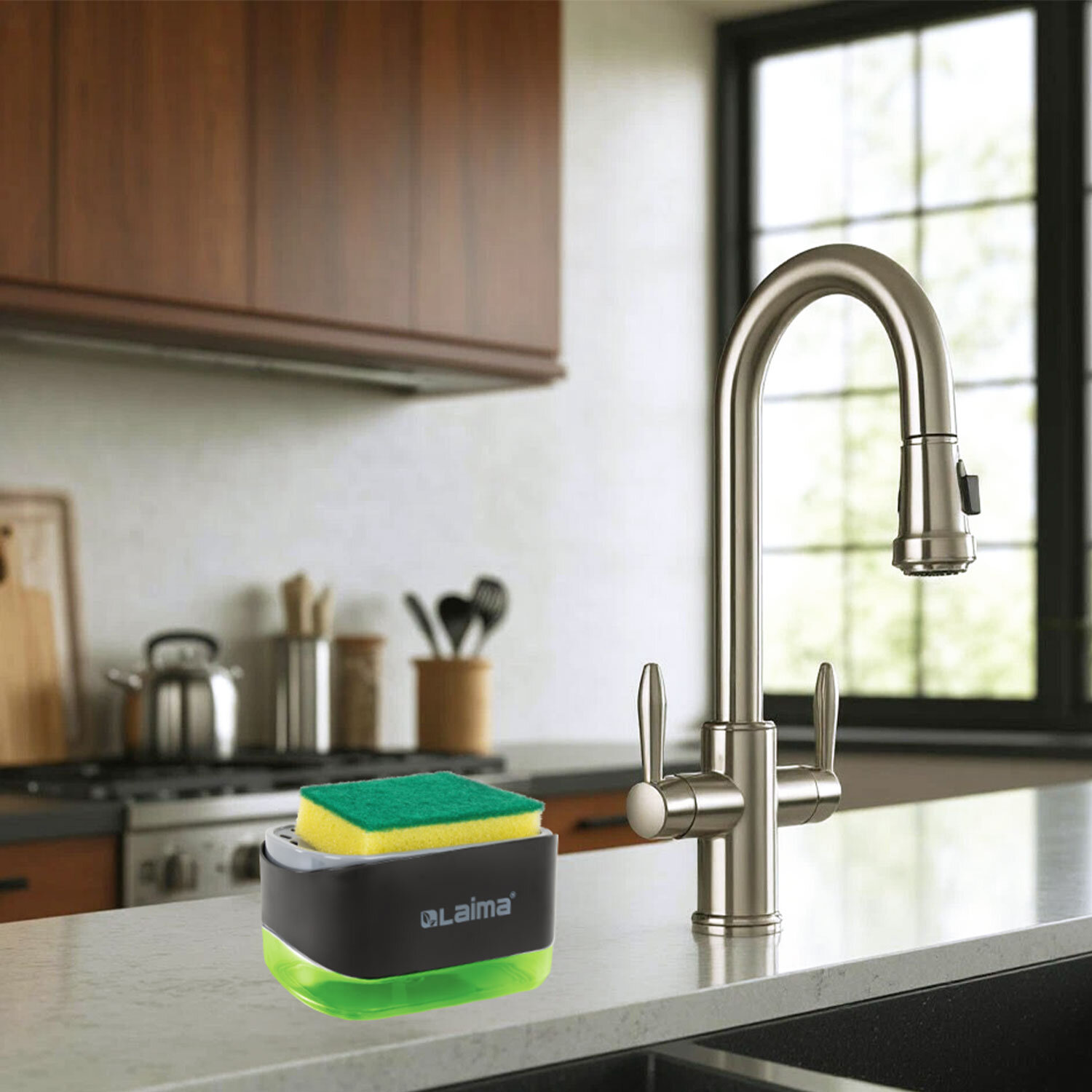 Диспенсер/дозатор для моющего средства органайзер + губка, ЧЕРНЫЙ, 14,5х9х10 см, LAIMA HOME Код товара: 700042 272,65 ₽ Купить Производитель:LAIMA Диспенсер для моющего средства LAIMA HOME станет незаменимым помощником на вашей кухне или в ванной комнате. Благодаря удобному дизайну и продуманной системе дозирования, он обеспечивает экономичный расход моющих средств и облегчает процесс уборки. Диспенсер для моющего средства LAIMA HOME поможет привести в идеальный порядок вашу кухню или ванную комнату, а также сэкономить драгоценное время. Диспенсер выполнен из прочного пластика с помпой из полипропилена и нержавеющей стали, резиновое основание предотвращает скольжение. Размеры изделия 14,5х9х10 см. Вместимость контейнера для моющего средства – 350 мл. Моющее средство подается при нажатии на лоток для губки. В комплекте с диспенсером идет полиуретановая губка. Основные преимущества диспенсера LAIMA HOME: - Качественные материалы обеспечат долгий срок службы диспенсера - Диспенсер прост в использовании и уходе - Эргономичный стильный дизайн изделия поможет поддерживать порядок на кухне или в ваннойПроизводство: КитайОбъем: 0.35 лТип диспенсера: помповыйСерия: HomeНазначение: моющее средствоУправление: механическоеКомплектующие: губкаМатериал корпуса: полистиролЦвет: черный/серыйШирина: 145 ммВысота: 100 ммГлубина: 90 ммВес: 232 грРазмер упаковки: 10.6 × 14.9 × 11.6 смОбъём: 0.0022 м3Промежуточная упаковка: 48 штТранспортная упаковка: 48 штШтрих-код: 4606224464817 Сертификат-1.jpg Сертификат-2.jpg Сертификат-3.jpg