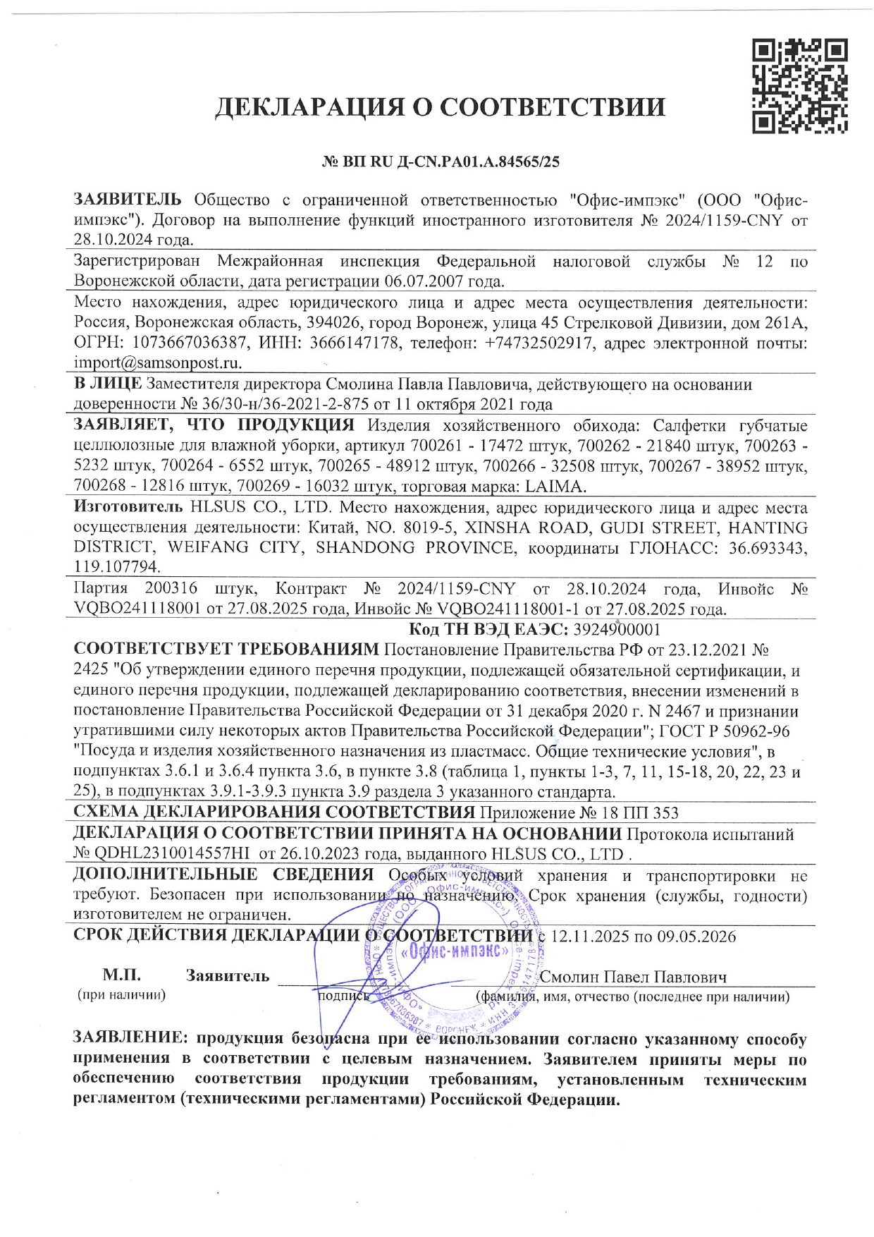 Салфетки губчатые для уборки кухни 15х18 см, ЦЕЛЛЮЛОЗНЫЕ, КОМПЛЕКТ 10 шт., цветные, LAIMA Код товара: 700269 300,78 ₽ Купить Производитель:LAIMA Губчатые салфетки LAIMA – ваш идеальный помощник в уборке! Используются во влажном виде, супервпитывающие, не оставляют разводов, обеспечивают надежную чистоту в вашем доме. Комплект губчатых салфеток LAIMA – 10 шт. Размер салфетки – 15х18 см. Цвета в одном комплекте: желтый, синий, розовый, зеленый, серый. Супервпитывающие салфетки из 100% целлюлозы используются для уборки на кухне и в ванной комнате, для мытья посуды, стекол и зеркал, для протирания любых поверхностей и даже для ухода за автомобилем. Салфетки не ломаются и не крошатся, сохраняют свою форму после многократного использования, что делает их идеальными для любых задач. Впитывают большой объем жидкости.Производство: КитайМатериал: целлюлозаПрименение: для влажной уборкиКоличество салфеток: 10 шт.Размер (ДхШ): 15х18 смЦвет: разноцветныйСерия: целлюлозныеПлотность: 900 г/м2Упаковка: пакет с европодвесомВес: 290 грРазмер упаковки: 4.2 × 19.2 × 15.8 смОбъём: 0.0014 м3Промежуточная упаковка: 24 штТранспортная упаковка: 24 штШтрих-код: 4606224472850 Сертификат-1.jpg Сертификат-2.jpg Сертификат-3.jpg