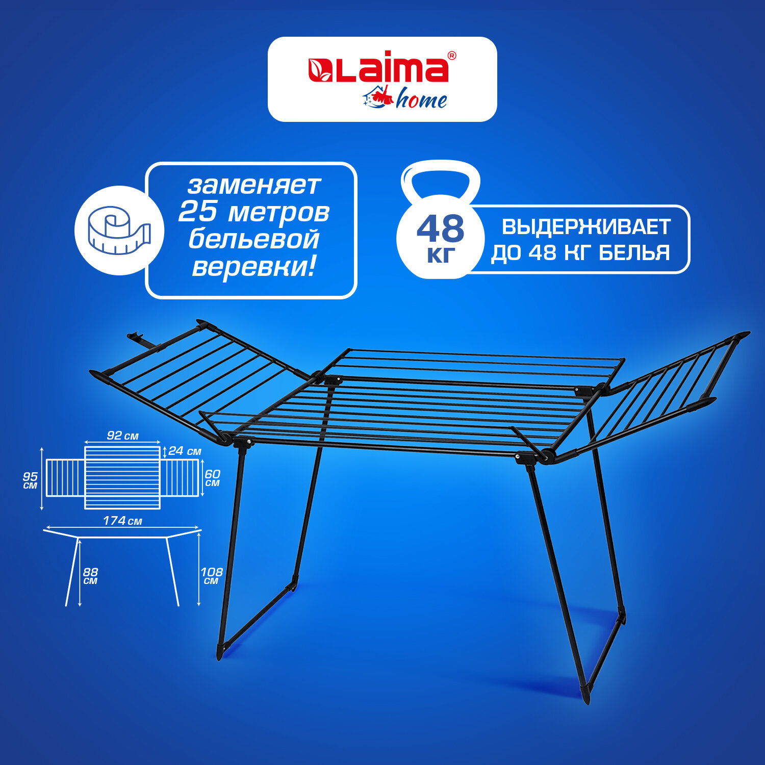 Сушилка напольная для белья раскладная, 5 зон сушки, 25 метров, LAIMA HOME MEGA BLACK Код товара: 700471 3 551,26 ₽ Купить Производитель:LAIMA Напольная сушилка для белья LAIMA HOME подходит для использования в любых помещениях. Сушилка имеет удобную складную конструкцию и антикоррозионное покрытие. Сушилка ПРЕМИАЛЬНОГО качества, надежные элементы и узлы, толстостенные трубчатые элементы. Компактная складная напольная сушилка для белья LAIMA HOME – незаменимая вещь в каждом доме. Имеет удобный и надежный механизм раскладывания. Имеет 4 раскладные створки, что позволяет получить 5 зон для сушки вместо одной! Идеально подходит для дома и квартиры. Сушилка для белья изготовлена из высококачественных прочных материалов, что обеспечивает ее устойчивость и мобильность. Все углы сушилки плавно и аккуратно скруглены. Ножки оснащены пластиковыми накладками для защиты пола от царапин и предотвращения скольжения сушилки по поверхности. Размер – 60х92х88 см в сложенном виде и 95х174х108 см с разложенными с четырех сторон створками. Выдерживает нагрузку до 48 кг. Устойчивая, вместительная и компактная в хранении, при необходимости быстро и легко складывается и убирается. Заменяет до 25 метров бельевой веревки!Производство: КитайТип товара: сушилка для белья напольнаяМаксимальная нагрузка: 48 кгПолезная длина сушки: 25 мШирина: 94-174 смВысота: 108 смГлубина: 95 смОсобенности: легко складывается, удобно хранитьСерия: BlackМатериал: стальПорошковая окраска: даВес: 4,22 кгРазмер упаковки: 8.5 × 99.5 × 60.5 смОбъём: 0.055 м3Промежуточная упаковка: 4 штТранспортная упаковка: 4 штШтрих-код: 4606224484525 Файлы Сертификат-1.jpg Сертификат-2.jpg Сертификат-3.jpg Сертификат-4.jpg Сертификат-5.jpg Сертификат-6.jpg Сертификат-7.jpg Сертификат-8.jpg Сертификат-9.jpg Сертификат-10.jpg Сертификат-11.jpg Сертификат-12.jpg Сертификат-13.jpg Сертификат-14.jpg Сертификат-15.jpg Сертификат-16.jpg Сертификат-17.jpg Сертификат-18.jpg Сертификат-19.jpg Сертификат-20.jpg Сертификат-21.jpg Сертификат-22.jpg Сертификат-23.jpg Сертификат-24.jpg Сертификат-25.jpg Сертификат-26.jpg