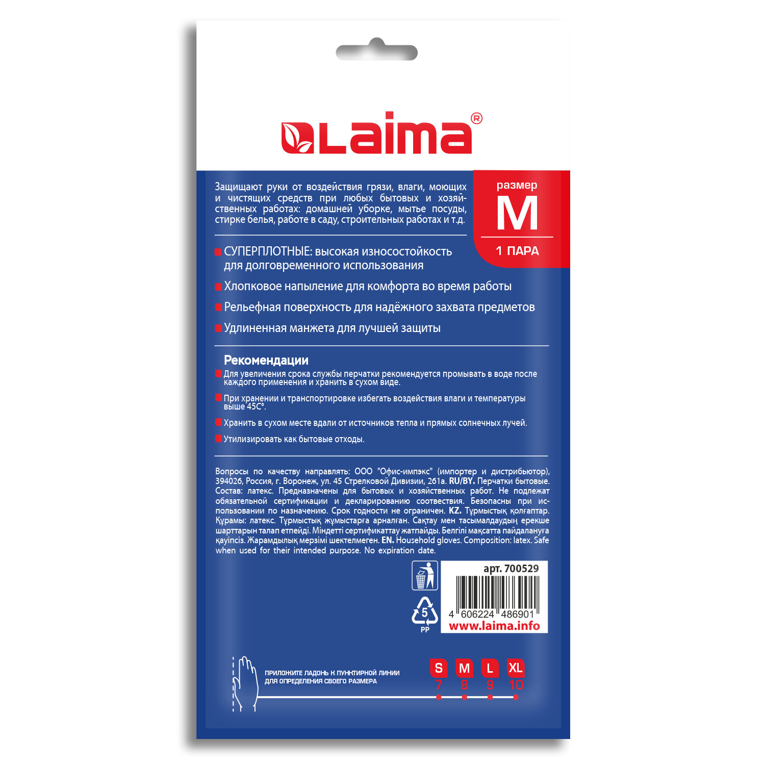 Перчатки МНОГОРАЗОВЫЕ латексные LAIMA, c ДЛИННОЙ МАНЖЕТОЙ 25 см, КРАСНЫЕ, размер M (средний), вес 75 г Код товара: 700529 94,19 ₽ Купить Производитель:LAIMA Универсальные суперплотные латексные перчатки LAIMA защищают руки от воздействия грязи, влаги, моющих и чистящих средств при любых бытовых и хозяйственных работах: мытьё посуды, стирка белья, уборка, садоводческая работа и т.д. Суперплотные перчатки с высокой износостойкостью для долговременного использования. Изготовлены из прочного латексного материала, который защищает руки от внешних воздействий при проведении любых хозяйственно-бытовых работ. Текстура на ладони и пальцах помогает улучшить сцепление и препятствует выскальзыванию предметов из рук. Длинная манжета обеспечивает защиту при погружении рук в глубокую емкость с жидкостью. Внутреннее хлопковое напыление позволяет надевать перчатки даже на влажные руки, а также обеспечивает комфорт во время использования. Перчатки пригодны для многократного использования. Нельзя использовать при работе с растворителями и электрическим током. Материал – латекс. Длина – 37 см. Цвет – красный. Упаковка – цветной пакет с европодвесом.Производство: КитайЗащита от: нетРазмер: M (средний)Размер производителя: 7-8 (M)Вид: хозяйственно-бытовыеМатериал основы: латексПокрытие внешнее: нетПодкладка: хлопковое напылениеСерия: С длинной манжетойСтепень защиты от кислот: неприменимоСтепень защиты от щелочей: неприменимоПоверхность области захвата: рельефнаяКоличество в комплекте: 1 парДлина: 370 ммТолщина: 0.33 ммЦвет: красныйВес: 81 грРазмер упаковки: 1.4 × 21.9 × 12.7 смОбъём: 0.0003 м3Промежуточная упаковка: 12 штТранспортная упаковка: 120 штШтрих-код: 4606224486901 Файлы Сертификат-1.jpg Сертификат-2.jpg Сертификат-3.jpg Сертификат-4.jpg Сертификат-5.jpg Сертификат-6.jpg Сертификат-7.jpg Сертификат-8.jpg Сертификат-9.jpg Сертификат-10.jpg Сертификат-11.jpg Сертификат-12.jpg Сертификат-13.jpg Сертификат-14.jpg Сертификат-15.jpg Сертификат-16.jpg Сертификат-17.jpg Сертификат-18.jpg Сертификат-19.jpg Сертификат-20.jpg Сертификат-21.jpg Сертификат-22.jpg Сертификат-23.jpg Сертификат-24.jpg Сертификат-25.jpg Сертификат-26.jpg