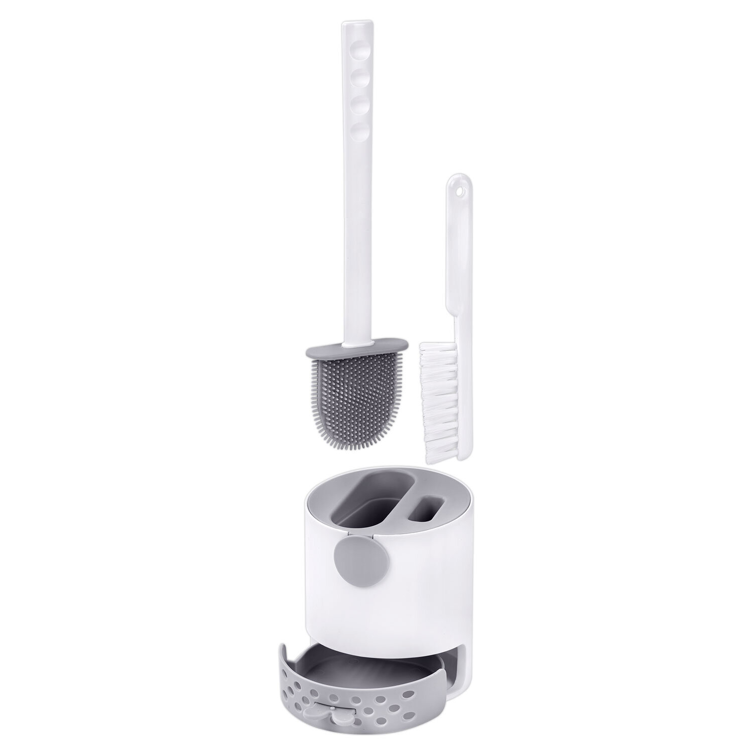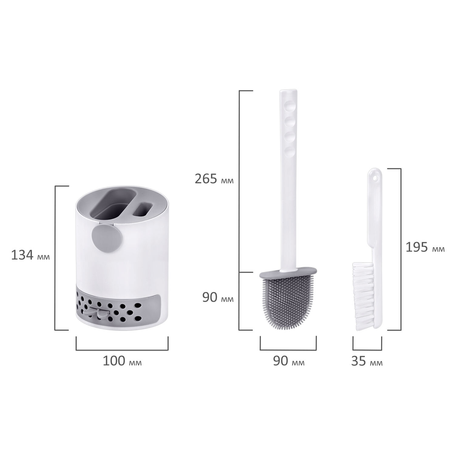 Ершик для унитаза силиконовый (плоский) + щеточка, напольный / настенное крепление, LAIMA Код товара: 700561 450,7 ₽ Купить Производитель:LAIMA Надоело использовать непрактичные щетки для унитазов с жесткими волокнами, которые быстро царапают поверхность? Силиконовый ершик LAIMA – незаменимый помощник в чистке унитаза, удаляет загрязнения даже в труднодоступных местах! Силиконовый ершик для унитаза с щеточкой LAIMA – ваш незаменимый помощник для уборки в туалете и ванной комнате. Размер изделия: высота – 37 см, ширина подставки – 10 см. Пластиковый стакан с силиконовым ершиком и щеточкой может быть размещен на полу или установлен на стене при помощи крепления на клеевой основе, которое идет в комплекте с ершиком. Универсальный, удобный в применении ёршик с подставкой предназначен для чистки, уборки унитаза и ежедневного поддержания чистоты. Ершик для туалета выполнен из высококачественного силикона, имеет прочную ручку и чашу из качественного пластика. Небольшая щеточка также выполнена из прочного качественного пластика и поможет вам удалить загрязнения в самых труднодоступных местах. Силиконовый ершик легко справляется со сложными загрязнениями. Ерш для унитаза оснащен специальным контейнером для стекания жидкости, что не позволяет воде и запахам застаиваться в туалете и ванной.Производство: КитайВысота: 37 смДиаметр щетки: 9 смНаличие подставки: даФорма подставки: цилиндрМатериал: пластик/силиконЦвет: белый/серыйДиаметр подставки: 10 смВес: 364 грРазмер упаковки: 10.8 × 24.5 × 10.6 смОбъём: 0.0032 м3Промежуточная упаковка: 24 штТранспортная упаковка: 24 штШтрих-код: 4606224492414 Сертификат-1.jpg Сертификат-2.jpg