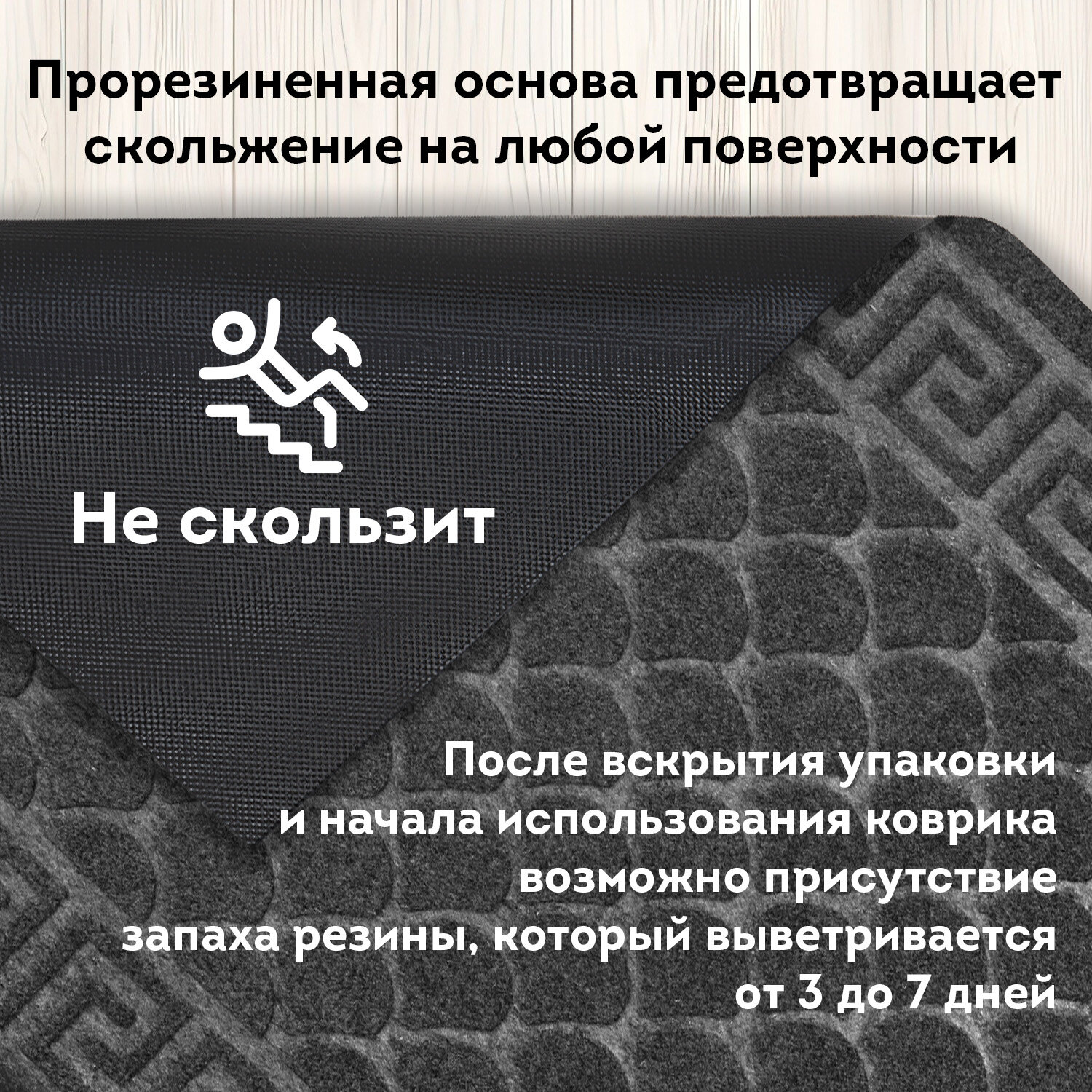 Коврик придверный 60х90 см, СЕРЫЙ, грязезащитный, 430 г/м2, фактурный рисунок ЧЕШУЙКИ, ЛЮБАША Код товара: 701061 558,08 ₽ Купить Производитель:ЛЮБАША Коврик влаго-грязезащитный ЛЮБАША – практичное и эффективное решение для защиты помещения от грязи и влаги. Предназначен для использования внутри и вне помещений. Коврик влаго-грязезащитный ЛЮБАША – практичное и эффективное решение для защиты помещения от грязи и влаги. Ворс коврика изготовлен из полиэстера, который отлично впитывает влагу и задерживает мелкие частицы грязи с подошв обуви. Коврик имеет прямоугольную форму. ПВХ-основа предотвращает скольжение и обеспечивает устойчивость на полу. Основные преимущества влаговпитывающего коврика: Надежная грязезащита и влаговпитывание, что снижает количество уборок в помещении; Износостойкость и устойчивость к деформациям и перепадам температуры; Простота ухода – коврик можно пылесосить; Безопасность за счет нескользящей основы, особенно актуально в осенне-зимний период. Основные характеристики: Размер – 60х90 см. Толщина – 7 мм. Ворс изготовлен из полиэстера. Коврик выполнен в сером цвете. Фактурный рисунок – чешуйки. Во избежание скольжения рекомендуется укладывать коврик на чистую увлажненную поверхность (пыль и песок повышают вероятность скольжения ковра). Рекомендации, которые на 100% исключат скольжение ковра на любых напольных покрытиях: 1. Применить противоскользящую ленту. Её наклеивают по периметру коврика с обратной (изнаночной) стороны. 2. Использовать силиконовые наклейки. Они крепятся с изнаночной стороны в углы коврика (обычно нужно 4 наклейки на один коврик). 3. Применить резиновый клей. Им промазывают всю поверхность коврика, при этом и коврик, и кафель в момент приклеивания должны быть сухими и чистыми. Или использовать любой двусторонний скотч. 4. Использовать фиксаторы для ковров. Это специально разработанные подушечки, которые можно поместить под углы коврика. Обычно они состоят из двух частей – липкой, которая приклеивается к подложке коврика, и рельефной, которая прижимается к полу. 5. Использовать липучки для ковров. Одну сторону липучки прикрепляют к изнанке ковра, а другую – к полу. При сжатии застёжки-липучки создают прочное соединение, препятствующее скольжению.Производство: РоссияНазначение: влаго-грязезащитныйДлина: 90 смШирина: 60 смТолщина: 7 ммМатериал: ПВХ, полиэстерМатериал ворса: 100% полиэстерМетод производства: вулканизацияДизайн: чешуйкиАнтискользящее основание: даВорсовое покрытие с ребристой текстурой: даЦвет: серыйВес: 1,02 кгРазмер упаковки: 0.5 × 90 × 60 смОбъём: 0.0032 м3Промежуточная упаковка: 10 штТранспортная упаковка: 10 штШтрих-код: 4606224505992 Сертификат-1.jpg Сертификат-2.jpg Сертификат-3.jpg
