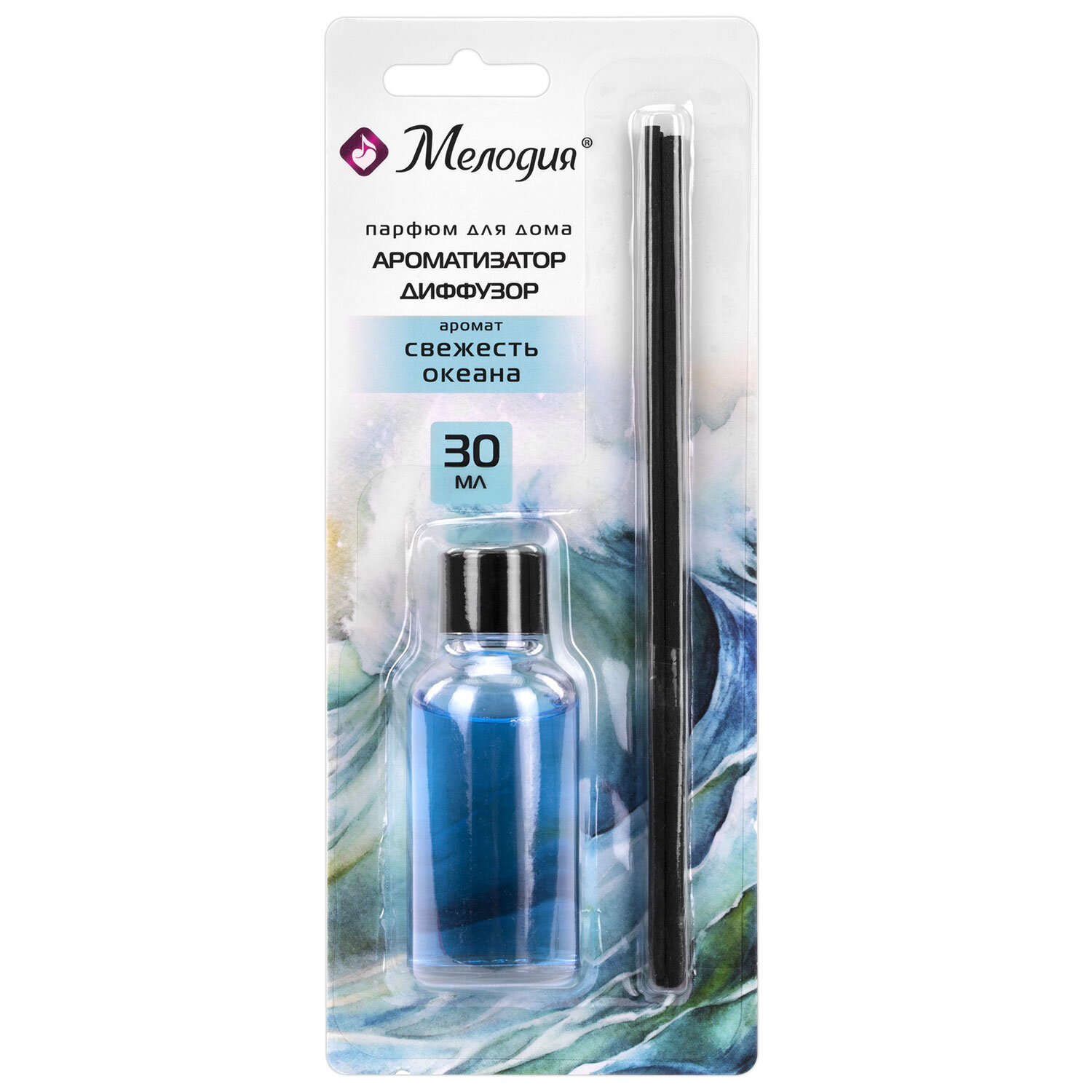 Ароматизатор аромадиффузор с палочками, освежитель 30 мл, МЕЛОДИЯ "Свежесть океана" Код товара: 609790 132,59 ₽ Купить Производитель:МЕЛОДИЯ Уникальная формула ароматического диффузора МЕЛОДИЯ создает комфортную атмосферу, медленно заполняя помещение приятным ароматом и помогая расслабиться. Аромат, который сделает ваш дом особенным! Наполните дом стойким изысканным ароматом аромадиффузора МЕЛОДИЯ без суеты и проводов. Просто расставьте палочки, и мягкий шлейф будет витать в воздухе, создавая ваше личное пространство гармонии. Палочки пропитываются аромамаслами и равномерно распространяют парфюмерные ноты в воздухе в течение длительного времени. В зависимости от их количества меняется интенсивность запаха парфюмерии. Способ применения: осторожно откупорьте крышку выкручивающими движениями, опустите палочки во флакон с аромажидкостью, установите диффузор в место с хорошей циркуляцией воздуха. Палочки важно применить сразу все и периодически переворачивать (1–2 раза в сутки). Флакона хватит на помещение площадью до 15 м2. Срок службы: от 1 месяца в зависимости от места использования. Состав: > 30% вода, < 30% этиловый спирт, < 15% касторовое масло, < 5% загуститель, < 5% отдушка.Производство: КитайТип товара: аромадиффузорОтдушка: Свежесть океанаСерия: АроматизаторыОбъем/вес: 30 мл/гПлощадь звучания: 15 м2Упаковка: блистерСрок годности: 48 месВес: 101 грРазмер упаковки: 3.7 × 20.5 × 8.3 смОбъём: 0.0005 м3Промежуточная упаковка: 24 штТранспортная упаковка: 96 штШтрих-код: 4606224460161 Сертификат-1.jpg Сертификат-2.jpg