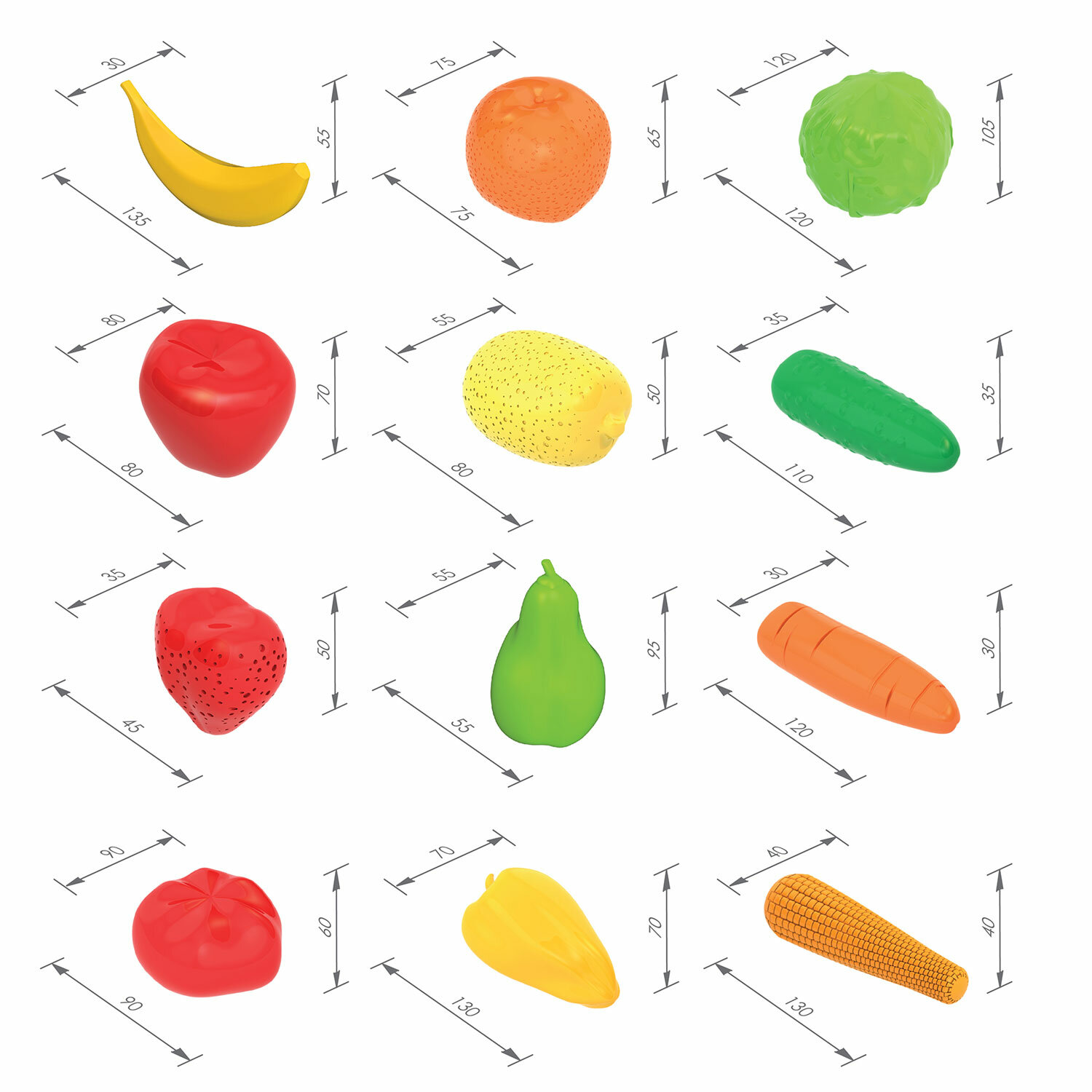 Набор игрушечный "Фрукты и Овощи", пластиковый, 13 предметов, НОРДПЛАСТ Код товара: 666469 497,44 ₽ Купить Производитель:НОРДПЛАСТ Интересный набор НОРДПЛАСТ с яркими детализировано проработанными фруктами и овощами познакомит малышей с разными фигурами и формами, научит различать цвета. А детишки постарше могут использовать набор фруктов и овощей в различных сюжетно-ролевых играх. Набор абсолютно безвреден для ребенка, так как выполнен из прочной безопасной пластмассы. Сертифицированные материалы, яркие цвета, четкая деталировка. Комплектация: 1 банан, 1 груша, 1 лимон, 1 апельсин, 1 яблоко, 1 клубника, 1 капуста, 1 перец, 1 помидор, 1 огурец, 1 морковка, 1 чеснок, 1 кукуруза. Упаковка – сетка.Производство: РоссияТип товара: набор игрушечныйВозраст ребенка: 1+Тематика: продукты игрушечныеКоличество предметов в наборе: 13 шт.Материал: пластикЦвет: ассортиСерия: сюжетно-ролевой наборУпаковка: сеткаВес: 236 грРазмер упаковки: 11.4 × 24.1 × 18 смОбъём: 0.0039 м3Промежуточная упаковка: 20 штТранспортная упаковка: 20 штШтрих-код: 4607006444256 Файлы Сертификат-1.jpg Сертификат-2.jpg Сертификат-3.jpg Сертификат-4.jpg Сертификат-5.jpg Сертификат-6.jpg Сертификат-7.jpg