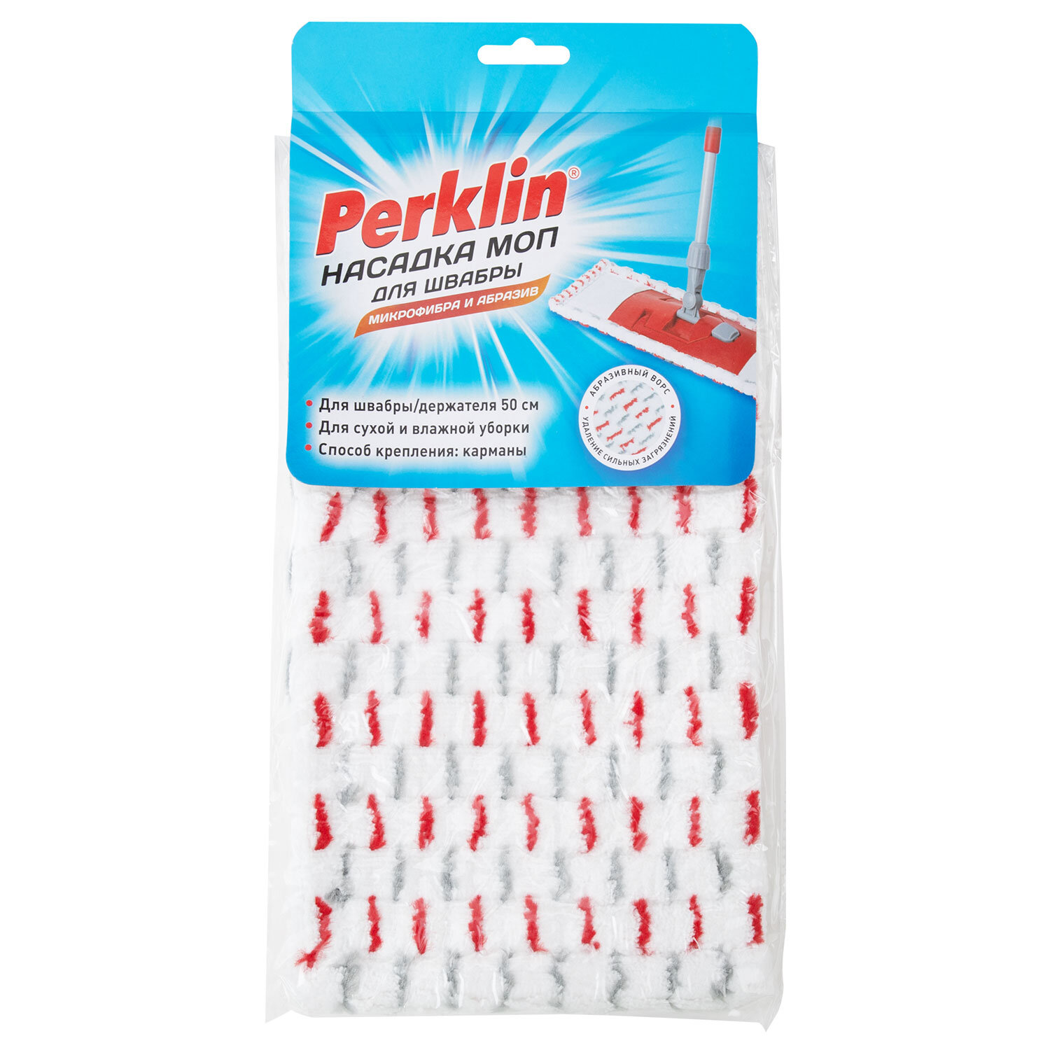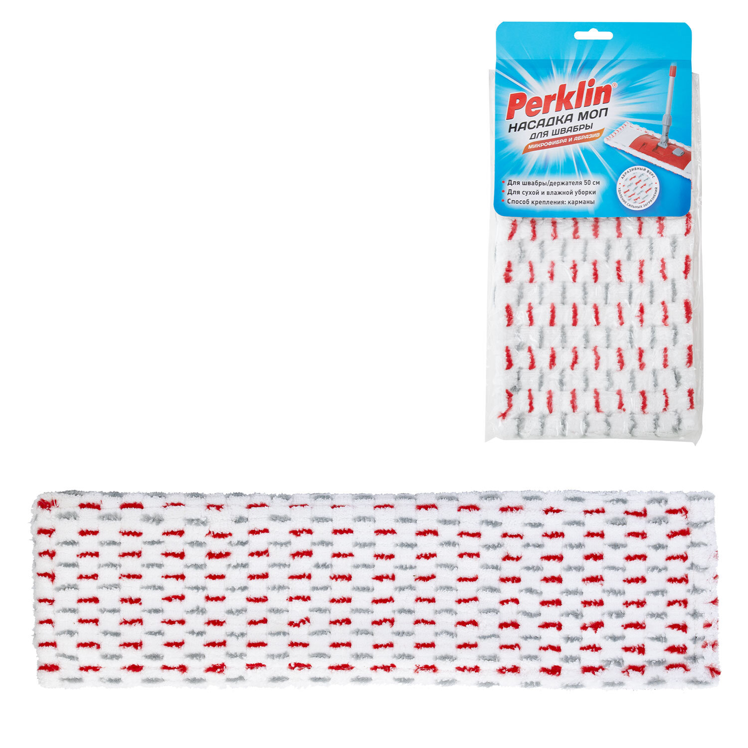 Насадка МОП плоская для швабры/держателя 50 см, микрофибра/абразив (ТИП К), PERKLIN (ПЕРКЛИН) Код товара: 700985 266,86 ₽ Купить Производитель:PERKLIN Насадка PERKLIN микрофибра/абразив – идеальное решение для быстрой и эффективной уборки! Насадка PERKLIN выполнена из высококачественной микрофибры с абразивными волокнами по всей поверхности. Она легко справляется даже с самыми стойкими загрязнениями, не повреждая деликатные поверхности. Благодаря сочетанию мягкой микрофибры и абразивных волокон, насадка глубоко очищает, удаляет пыль, грязи, пятна без применения агрессивной химии. Подходит для уборки плитки, ламината, кварцвинила и других напольных покрытий. Насадка не оставляет разводов, подходит для сухой и влажной уборки. Размер рабочей поверхности: 55х16 см. Размер подходящего основания швабры: 50х10 см. Тип крепления: карманы.Производство: КитайТип насадки: плоская для складного держателяМатериал: абразив, микрофибраКоличество в комплекте: 1 шт.Крепление насадки: 2 карманаДлина: 50 смШирина: 10 смЦвет: белыйВес: 100 гРазмер упаковки: 2.1 × 32.5 × 16.7 смОбъём: 0.001 м3Промежуточная упаковка: 24 штТранспортная упаковка: 24 штШтрих-код: 4606224505091 Файлы Сертификат-1.jpg Сертификат-2.jpg Сертификат-3.jpg Сертификат-4.jpg Сертификат-5.jpg Сертификат-6.jpg Сертификат-7.jpg Сертификат-8.jpg Сертификат-9.jpg Сертификат-10.jpg Сертификат-11.jpg Сертификат-12.jpg Сертификат-13.jpg Сертификат-14.jpg Сертификат-15.jpg Сертификат-16.jpg Сертификат-17.jpg Сертификат-18.jpg Сертификат-19.jpg Сертификат-20.jpg Сертификат-21.jpg Сертификат-22.jpg Сертификат-23.jpg Сертификат-24.jpg Сертификат-25.jpg Сертификат-26.jpg