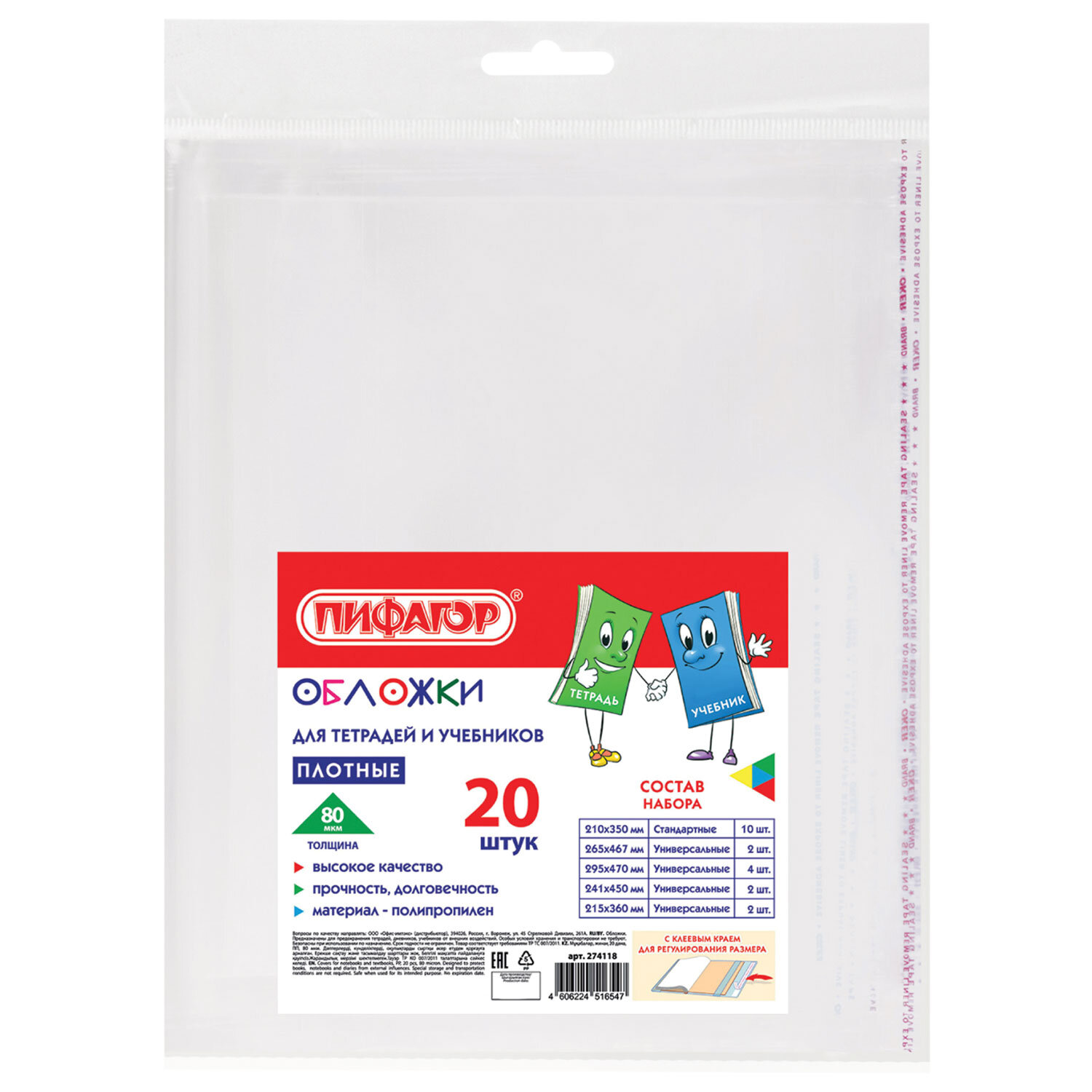 Обложки ПП для тетрадей и учебников, КЛЕЙКИЙ КРАЙ, НАБОР 20 шт., ПЛОТНЫЕ, 80 мкм, ПИФАГОР Код товара: 274118 226,8 ₽ Купить Производитель:ПИФАГОР Прозрачные обложки ПИФАГОР отлично предохраняют тетради и учебники от внешних воздействий, тем самым увеличивая срок их службы и сохраняя прекрасный внешний вид. Предназначены для тетрадей и учебников. Прозрачные плотные обложки ПИФАГОР для тетрадей и учебников изготовлены из полипропилена (ПП) толщиной 80 мкм. Благодаря КЛЕЙКОМУ КРАЮ обложка легко регулируется по ширине. В наборе следующие обложки: • 295x470 мм – 4 шт., • 265х467 мм – 2 шт., • 241х450 мм – 2 шт., • 215х360 мм – 2 шт., • 210х350 мм – 10 шт.Производство: РоссияПредназначены для: дневников, прописей, рабочих тетрадей, тетрадей, учебниковРазмер: 210x350 ммКоличество в комплекте: 20 шт.Регулировка ширины: даМатериал: ППТолщина: 80 мкмТип обложки: глянцеваяНаличие клеевого края: даЦвет: прозрачныйНаличие штрихкода на ед. товара: даВес: 195 грРазмер упаковки: 1.3 × 30.4 × 24.6 смОбъём: 0.001 м3Промежуточная упаковка: 20 штТранспортная упаковка: 20 штШтрих-код: 4606224516547 Сертификат-1.jpg Сертификат-2.jpg Сертификат-3.jpg