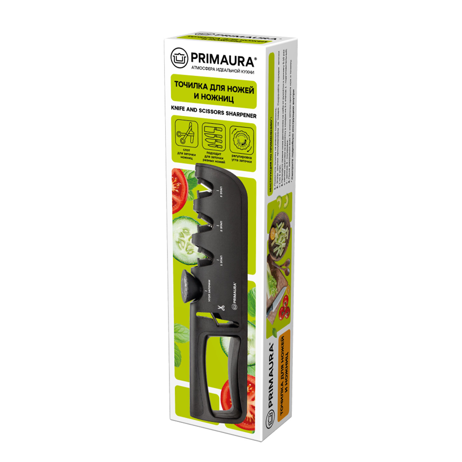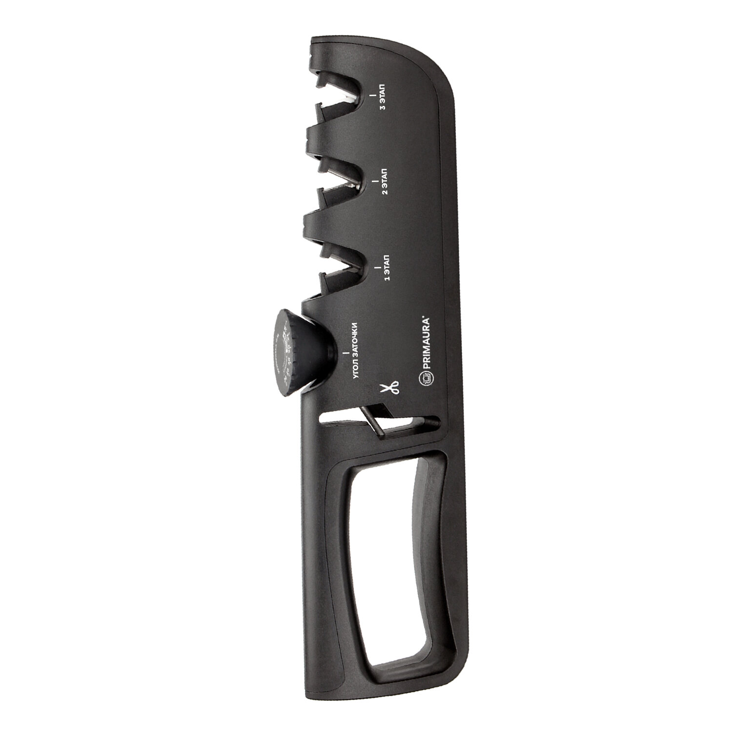 Точилка для ножей (ножеточка) и ножниц ручная, 3 зоны (грубая, чистовая, шлифовка), регулировка угла заточки, PRIMAURA (ПРИМАУРА) Код товара: 701623 598,11 ₽ Купить Производитель:PRIMAURA Точилка для ножей и ножниц PRIMAURA с регулировкой угла заточки – это универсальный инструмент, который подходит для заточки самых разных лезвий. Острый нож или ножницы всего за пару секунд без лишних хлопот с точилкой PRIMAURA. Точилка PRIMAURA предназначена для профессиональной заточки различных типов ножей и ножниц. Устройство обеспечивает полный цикл обработки лезвия от грубой заточки до финишной полировки. Главным преимуществом данной ножеточки является регулируемый угол (от 14° до 24°) заточки лезвия ножа, что позволяет достичь идеальной остроты лезвия без потери прочности ножа. Для вашего удобства на корпусе точилки присутствует таблица соответствия угла заточки к конкретному типу ножа. Корпус точилки для ножей выполнен из ударопрочного пластика и имеет удобную эргономичную ручку с удобным хватом для руки. Точилка для ножей универсальна, подходит для правши и для левши. Прорезиненные вставки в основании не позволяют прибору скользить по столу и другим поверхностям. Процесс заточки ножей предельно прост: необходимо лишь поместить лезвие в слот остриём вниз, а затем провести несколько раз по направлению к себе (достаточно 3–5 движений лезвием по слоту). Подробная инструкция идет в комплекте. Точилка имеет три специализированных слота для поэтапной заточки ножей и отдельный слот для ножниц: 1. Грубая заточка – вольфрамовая сталь (первичная обработка лезвия). 2. Чистовая заточка – алмазное покрытие (доведение режущей кромки до нужной формы). 3. Финишная полировка – керамика (придание лезвию идеальной остроты). 4. Заточка ножниц – алмазное покрытие (специальный слот для восстановления остроты ножниц). С ножеточкой PRIMAURA вы вернете остроту ножам за считанные минуты: трёхступенчатая система не просто шлифует лезвие, а бережно восстанавливает его форму и продлевает срок службы. Отлично подходит для дома, работы или путешествий. Внимание: не рекомендуется к использованию с керамическими ножами и зазубренными лезвиями (серрейторными).Производство: КитайТип товара: ножеточкаТип заточки: грубая заточка ножа, заточка ножниц, чистовая заточка ножа, шлифовка лезвия ножаОсобенности: регулируемый угол заточкиКоличество в комплекте: 1 шт.Материал: пластикЦвет: черныйУпаковка: красочная картонная коробкаВес: 384 грРазмер упаковки: 5.3 × 30.5 × 8.3 смОбъём: 0.0018 м3Промежуточная упаковка: 12 штТранспортная упаковка: 48 штШтрих-код: 4606224511702 Сертификат-1.jpg Сертификат-2.jpg