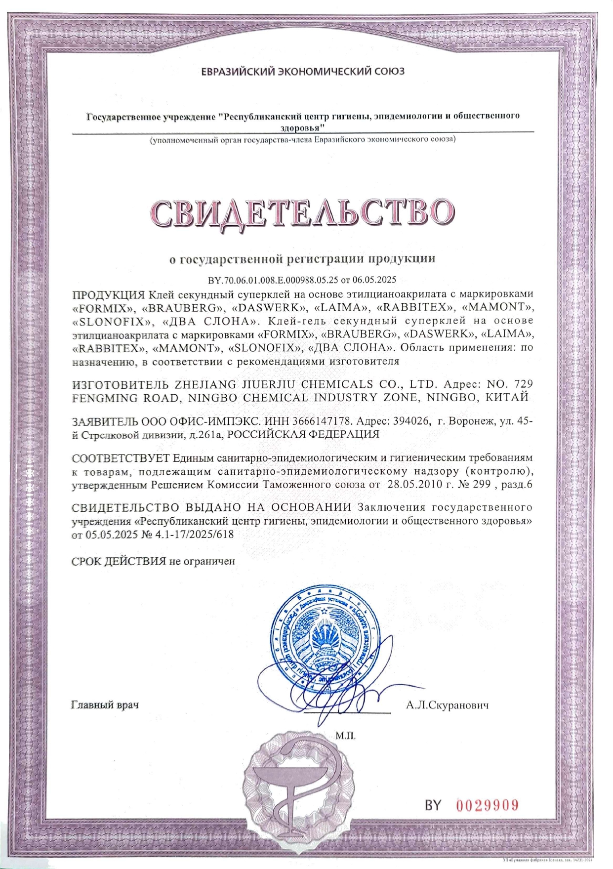 Клей-гель секундный суперклей УЛЬТРАПРОЧНЫЙ, МАКСИМАЛЬНЫЙ ОБЪЕМ, 20 грамм, RABBITEX Код товара: 609804 87,32 ₽ Купить Производитель:RABBITEX Секундный клей-гель RABBITEX - это профессиональное качество и прочное решение любых бытовых и профессиональных задач. Идеальный помощник в доме, на даче, в мастерской или офисе. Клей-гель секундный RABBITEX - это мгновенная прочность, качество и долговечность. Идеально подходит для ремонта пластика, керамики, дерева, металла, кожи и других материалов. Оптимальный выбор для склеивания вертикальных поверхностей и пористых материалов. Клей-гель не течет, наносится точно, обеспечивая чистое и аккуратное склеивание. Не применяется для посуды, контактирующей с пищей! Состав на основе высококачественного этилцианоакрилата обеспечивает молниеносное схватывание всего за 5-10 секунд. После высыхания образует прочное, прозрачное и влагостойкое соединение, устойчивое к механическим нагрузкам и температурным перепадам. Пластиковый флакон оснащен длинным и тонким носиком, который позволяет наносить клей без подтеков, излишков или склеенных пальцев, делая работу чистой и точной. Преимущества: - прозрачность - влагостойкость - термостойкость - мгновенная фиксация - широкий спектр применения - ультрапрочность Время схватывания: 5-10 секунд (возможна коррекция в первые 10 секунд) Температурный диапазон эксплуатации: - 30°С / + 80°С Вес нетто: 20 граммПроизводство: КитайНазначение: универсальныйВид: суперклейФорма выпуска: клей-гельВремя схватывания: 0.08 минутВес/объем: 20 г/млМногоразовое применение: даВодостойкий: даСклеивает: войлок, дерево, картон, керамика, кожа, металл, оргстекло, пластик, резина, стекло, фарфор, фибергласСпециальный колпачок позволяет использовать клей многократно: даЦвет клея: прозрачныйСрок годности: 48 месВес: 42 грРазмер упаковки: 2.5 × 3.5 × 11 смОбъём: 0.0001 м3Промежуточная упаковка: 12 штТранспортная упаковка: 288 штШтрих-код: 4606224458113 Файлы Сертификат-1.jpg Сертификат-2.jpg Сертификат-3.jpg Сертификат-4.jpg Сертификат-5.jpg Сертификат-6.jpg Сертификат-7.jpg Сертификат-8.jpg Сертификат-9.jpg Сертификат-10.jpg Сертификат-11.jpg Сертификат-12.jpg Сертификат-13.jpg Сертификат-14.jpg Сертификат-15.jpg Сертификат-16.jpg Сертификат-17.jpg Сертификат-18.jpg Сертификат-19.jpg Сертификат-20.jpg Сертификат-21.jpg Сертификат-22.jpg Сертификат-23.jpg Сертификат-24.jpg Сертификат-25.jpg