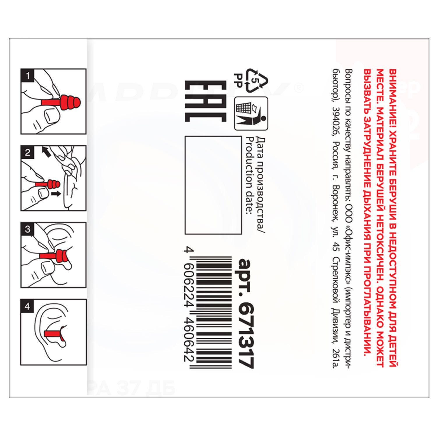 Беруши многоразовые силиконовые со шнурком, 1 пара в контейнере, SNR 37 дБ, RABBITEX Код товара: 671317 51,81 ₽ Купить Производитель:RABBITEX Беруши применяются для защиты слуха от вредного воздействия шума на производстве, для создания комфорта во время путешествия, сна и отдыха, предотвращают попадание воды и посторонних предметов в слуховые каналы. Беруши используются для защиты слуха при регулярном воздействии шумов. Предотвращают нарушение слуха при громких звуках на работе и на концертах, защищают уши во время плавания; помогают усилить концентрацию во время работы и учебы благодаря эффекту шумоподавления. Изготовлены из силикона – гипоаллергенного, мягкого и эластичного материала. Форма берушей в виде ёлочки обеспечивает комфортную посадку в ухе. Благодаря силиконовой ножке беруши удобно вставляются и извлекаются из слухового канала. Могут применяться многократно, легко очищаются, не впитывают влагу, сохраняют со временем свои форму и свойства. Оснащены шнурком из ПВХ, который поможет берушам не потеряться в перерывах между использованиями. Беруши располагаются в пластиковом контейнере для удобства хранения и переноски. Диаметр берушей 8 мм на конце и 12 мм ближе к серединке. Акустическая эффективность – 37 дБ. Материал – силикон. Цвет – жёлтый. Длина шнура – 65 см. Упакованы в индивидуальный пакет (1 пара в контейнере в пакете). Сферы применения: промышленные работы, строительные и монтажные работы, слесарно-столярные работы и другие работы, сопровождающиеся громким шумом.Производство: КитайВид: многоразовыеМатериал: силиконБеруши на шнурке: даНаличие контейнера: даКоличество в комплекте: 1 парШумопонижение: 37 дБЦвет*: желтыйЦвет: желтыйУпаковка: контейнерСрок годности: 60 месВес: 15 грРазмер упаковки: 2.5 × 4.6 × 4 смОбъём: 0.0001 м3Промежуточная упаковка: 100 штТранспортная упаковка: 1000 штШтрих-код: 4606224460642