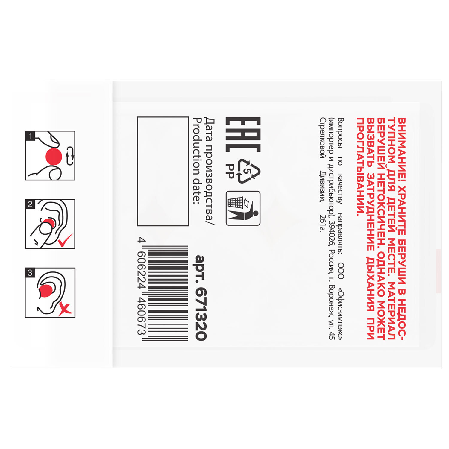 Беруши анатомические восковые из пластичного силикона, КОМПЛЕКТ 3 пары в контейнере, RABBITEX (РАББИТЕКС) Код товара: 671320 135,85 ₽ Купить Производитель:RABBITEX Беруши применяются для защиты слуха от вредного воздействия шума на производстве, для создания комфорта во время путешествия, сна и отдыха, предотвращают попадание воды и посторонних предметов в слуховые каналы. Беруши используются для защиты слуха при регулярном воздействии шумов. Предотвращают нарушение слуха при громких звуках на работе и на концертах, защищают уши во время плавания; помогают усилить концентрацию во время работы и учебы благодаря эффекту шумоподавления. Изготовлены из воскового силикона – гипоаллергенного, пластичного материала, мягкого как пластилин, который легко подвергается деформации и принимает нужную форму. Подойдут и взрослым, и детям. Устойчивы к влаге, легко моются при помощи мыла и воды. Сохраняют звукопоглощающие свойства даже при многократном применении. 3 пары вкладышей располагаются в пластиковом контейнере для удобства хранения и переноски. Акустическая эффективность – 32 дБ. Материал – восковый силикон. Цвет – прозрачный. Упакованы в индивидуальный пакет (3 пары в контейнере в пакете) Сферы применения: промышленные работы, строительные и монтажные работы, слесарно-столярные работы и другие работы, сопровождающиеся громким шумом.Производство: КитайВид: многоразовыеМатериал: восковый силиконНаличие контейнера: даКоличество в комплекте: 3 парШумопонижение: 32 дБЦвет*: прозрачныйЦвет: белый/прозрачныйУпаковка: контейнерСрок годности: 60 месВес: 40 грРазмер упаковки: 2.1 × 7.7 × 4.4 смОбъём: 0.0001 м3Промежуточная упаковка: 50 штТранспортная упаковка: 200 штШтрих-код: 4606224460673