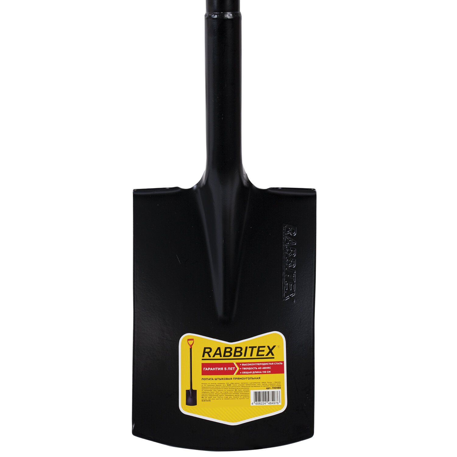 Лопата прямоугольная стальная 19х27 см, ОБЩАЯ ДЛИНА 115 см, черенок сталь, V-ручка, RABBITEX (РАББИТЕКС) "STRONG METAL" Код товара: 700480 741,7 ₽ Купить Производитель:RABBITEX Штыковая прямоугольная лопата RABBITEX "STRONG METAL" из закаленной легированной стали поможет вам в садовых и строительных работах. Высокое качество материалов, удобная ручка и универсальная длина помогут вам сделать работу легче и продуктивнее Штыковая прямоугольная лопата RABBITEX "STRONG METAL" выполнена из закаленной легированной стали. Закаленное лезвие и стальной черенок круглого сечения легко справятся с любыми нагрузками и прослужат вам долгие годы. Универсальное применение – от перекопки грядок до работы со строительными материалами. Прямоугольная форма лезвия идеально подходит для тяжелых почв, а качественное сварное соединение рабочей части и черенка обеспечивает дополнительную надежность. Эргономичный дизайн включает закругленную верхнюю кромку рабочего полотна для комфортного нажатия ногой и удобную рукоятку универсального размера, позволяющую работать как в перчатках, так и без них. Размер рабочей части и продуманная геометрия лопаты сделают работу максимально эффективной. Идеально подходит для дачных участков, строительных работ и любых землекопных задач. Основные характеристики: Размер рабочей части: 19х27 см. Материал: закаленная сталь. Материал черенка: сталь. Диаметр черенка: 34 мм. Общая длина лопаты: 115 см. Вес: 1,65 кг.Производство: КитайТип инструмента: лопата штыковая кгМатериал рабочей части: стальНаличие черенка: даНаличие рукоятки на черенке: даСерия: STRONG METALДлина рабочей части: 27 смШирина рабочей части: 19 смТолщина материала рабочей части: 1.5 ммДлина ручки/черенка: 88 смДиаметр черенка: 34 ммМатериал черенка/рукоятки: стальТип крепления черенка/рукоятки: неразборноеВес: 1.6 кгРазмер упаковки: 3.4 × 116 × 5.2 смОбъём: 0.0056 м3Промежуточная упаковка: 6 штТранспортная упаковка: 6 штШтрих-код: 4606224484976 Файлы Сертификат-1.jpg Сертификат-2.jpg Сертификат-3.jpg Сертификат-4.jpg Сертификат-5.jpg Сертификат-6.jpg Сертификат-7.jpg Сертификат-8.jpg Сертификат-9.jpg Сертификат-10.jpg Сертификат-11.jpg Сертификат-12.jpg Сертификат-13.jpg Сертификат-14.jpg Сертификат-15.jpg Сертификат-16.jpg Сертификат-17.jpg Сертификат-18.jpg Сертификат-19.jpg Сертификат-20.jpg Сертификат-21.jpg Сертификат-22.jpg Сертификат-23.jpg Сертификат-24.jpg Сертификат-25.jpg Сертификат-26.jpg