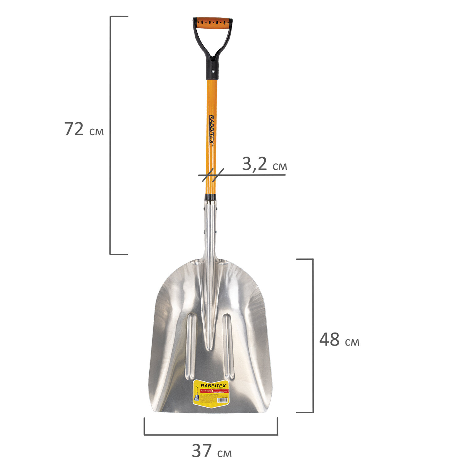 Лопата алюминиевая для снега 37х48 см, ОБЩАЯ ДЛИНА 120 см, черенок стекловолокно, V-ручка, RABBITEX (РАББИТЕКС) "FIBERGLASS" Код товара: 700486 2 178,7 ₽ Купить Производитель:RABBITEX Легкая снегоуборочная лопата RABBITEX "FIBERGLASS" – ваш надежный помощник в борьбе с зимними осадками. Инновационная конструкция сочетает в себе прочность алюминиевого ковша и легкость фиберглассового морозостойкого черенка. Гарантия качества – 5 лет. Снегоуборочная лопата RABBITEX "FIBERGLASS" – идеальный выбор для уборки снега с тротуаров, дорожек и парковочных мест. Яркий цвет черенка делает инструмент заметным даже в темное время суток. Эргономичный дизайн составляют удобная V-образная ручка и надежное соединение всех элементов при помощи заклепок. Общая длина 120 см обеспечивает комфортную работу без лишних усилий. Форма ковша обеспечивает плавное скольжение даже по неровной поверхности. Два ребра жесткости позволяют работать с самым слежавшимся снегом, а также с зерновыми культурами, грунтом и строительными материалами, а соединение рабочей части и черенка при помощи крепкого деревянного наконечника обеспечивает дополнительную надежность и предотвращает слом стеклопластиковой части черенка. Основные характеристики: Размер рабочей части: 37х48 см. Материал: алюминий. Материал черенка: фибергласс (стеклопластик). Диаметр черенка: 32 мм. Общая длина лопаты: 120 см. Вес: 1,8 кг.Производство: КитайТип инструмента: лопата снегоуборочнаяМатериал рабочей части: алюминийНаличие черенка: даНаличие рукоятки на черенке: даСерия: FIBERGLASSДлина рабочей части: 48 смШирина рабочей части: 37 смТолщина материала рабочей части: 1.5 ммДлина ручки/черенка: 72 смДиаметр черенка: 32 ммВес: 1.8 кгРазмер упаковки: 15 × 122 × 15.2 смОбъём: 0.0183 м3Промежуточная упаковка: 6 штТранспортная упаковка: 6 штШтрих-код: 4606224485034 Файлы Сертификат-1.jpg Сертификат-2.jpg Сертификат-3.jpg Сертификат-4.jpg Сертификат-5.jpg Сертификат-6.jpg Сертификат-7.jpg Сертификат-8.jpg Сертификат-9.jpg Сертификат-10.jpg Сертификат-11.jpg Сертификат-12.jpg Сертификат-13.jpg Сертификат-14.jpg Сертификат-15.jpg Сертификат-16.jpg Сертификат-17.jpg Сертификат-18.jpg Сертификат-19.jpg Сертификат-20.jpg Сертификат-21.jpg Сертификат-22.jpg Сертификат-23.jpg Сертификат-24.jpg Сертификат-25.jpg Сертификат-26.jpg