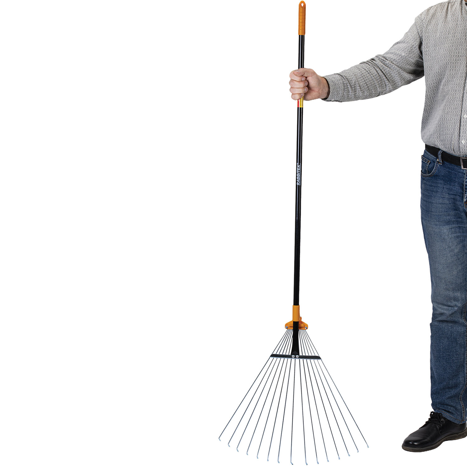 Грабли веерные 15 зубьев раздвижные, захват 20-60 см, ОБЩАЯ ДЛИНА 120-150 см, RABBITEX (РАББИТЕКС) "LONG HANDLE" Код товара: 700495 547,97 ₽ Купить Производитель:RABBITEX Грабли стальные RABBITEX "LONG HANDLE" – незаменимый инструмент для вашего сада и огорода. Применяются для сгребания листьев, травы и мусора, подготовки почвы к посеву, ухода за газоном. Стальные раздвижные садовые грабли RABBITEX "LONG HANDLE" выполнены из закаленной легированной стали и благодаря высокому качеству материалов и продуманному эргономичному дизайну прослужат вам долгие годы. Максимальная надежность обеспечивается рабочим полотном из стали, прошедшей специальную закалку. Инструмент способен выдержать любые нагрузки при длительной работе без потери прочности. Грабли оснащены 15 стальными зубьями, расположенными на оптимальном расстоянии друг от друга, для наиболее эффективной работы. Раздвижной механизм позволяет расширять рабочую часть с 20 см до 60 см и увеличивать длину со 120 см до 150 см, благодаря чему вы сможете при помощи всего лишь одного инструмента провести уборку в самых труднодоступных местах участка. Надежное соединение на заклепках, оптимальные размеры рабочей части, удобная длина и прочный стальной черенок сделают вашу работу проще и продуктивнее. Основные характеристики: Ширина рабочей части: 20-60 см. Материал: закаленная сталь. Материал черенка: сталь. Диаметр черенка: 25 мм Общая длина изделия: 120-150 см. Вес: 0,75 кг.Производство: КитайТип инструмента: грабли кгМатериал рабочей части: стальНаличие черенка: даКоличество зубьев: 15Серия: LONG HANDLEШирина рабочей части: 60 смДиаметр черенка: 25 ммМатериал черенка/рукоятки: металлТип крепления черенка/рукоятки: заклепкиВес: 0.75 кгРазмер упаковки: 4 × 119 × 19 смОбъём: 0.0034 м3Промежуточная упаковка: 24 штТранспортная упаковка: 24 штШтрих-код: 4606224484457 Файлы Сертификат-1.jpg Сертификат-2.jpg Сертификат-3.jpg Сертификат-4.jpg Сертификат-5.jpg Сертификат-6.jpg Сертификат-7.jpg Сертификат-8.jpg Сертификат-9.jpg Сертификат-10.jpg Сертификат-11.jpg Сертификат-12.jpg Сертификат-13.jpg Сертификат-14.jpg Сертификат-15.jpg Сертификат-16.jpg Сертификат-17.jpg Сертификат-18.jpg Сертификат-19.jpg Сертификат-20.jpg Сертификат-21.jpg Сертификат-22.jpg Сертификат-23.jpg Сертификат-24.jpg Сертификат-25.jpg Сертификат-26.jpg