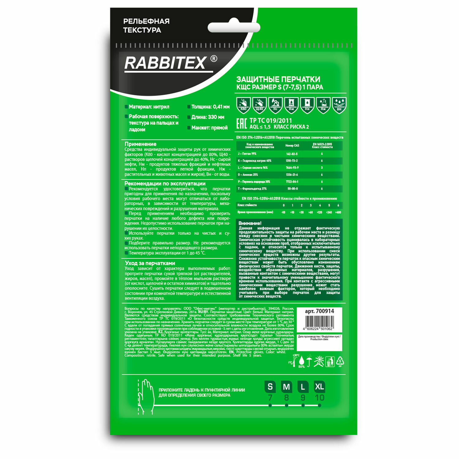 Перчатки нитриловые КЩС, EXTRA STRONG, химически устойчивые, белые, размер 7-7,5, S (малый), RABBITEX (РАББИТЕКС) Код товара: 700914 131,29 ₽ Купить Производитель:RABBITEX Нитриловые перчатки RABBITEX для защиты рук от загрязнений и химических факторов: кислот, щелочей, нефтепродуктов, растительных и животных масел и жиров, а также от воды и растворов нетоксичных веществ. Могут применяться в быту и на производстве. Перчатки нитриловые КЩС Extra Strong – это средство индивидуальной защиты рук от различных химических факторов: кислот концентрацией до 80% (К80), щелочей концентрацией до 40% (Щ40), сырой нефти (Нс), продуктов тяжелых фракций и нефтяных масел (Нм), продуктов легкой фракции (Нл), растительных и животных масел и жиров (Нж), а также от воды и растворов нетоксичных веществ. Благодаря повышенной плотности перчатки защищают от более высоких концентраций химических веществ. Рельефная текстура на ладони и пальцах обеспечивает надёжный захват влажных и промасленных предметов. Удлинённая манжета защищает руки и рукава одежды от загрязнений. Изготовлены в соответствии с EN ISO 374-1:2016 и ТР ТС 019/2011. Длина – 330 мм. Толщина – 0,41 мм. Цвет – белый. Упакованы в цветной пакет с европодвесом. Сферы применения: - автомобильная / механическая промышленности; - обработка / обезжиривание металлов с помощью агрессивных растворителей; - химическая промышленность; - погрузка барабанов для химической продукции; - обслуживание; - пропитка и отделка крепёжного леса; - применение пестицидов; - очистка типографских роликов.Производство: КитайЗащита от: химических воздействийРазмер: S (малый)Размер производителя: 7-7,5 (S)Вид: КЩСМатериал основы: нитрилПокрытие внешнее: нетПодкладка: нетСерия: КЩССтепень защиты от кислот: 80%Степень защиты от щелочей: 40%Поверхность области захвата: рельефнаяСоответствует требованиям ГОСТа : ГОСТ EN ISO 374-1:2016/Type AКоличество в комплекте: 1 парДлина: 330 ммТолщина: 0.41 ммЦвет: белыйСрок годности: 60 месВес: 75 грРазмер упаковки: 1.3 × 22.3 × 14.7 смОбъём: 0.0002 м3Промежуточная упаковка: 12 штТранспортная упаковка: 120 штШтрих-код: 4606224501062 Файлы Сертификат-1.jpg Сертификат-2.jpg Сертификат-3.jpg Сертификат-4.jpg Сертификат-5.jpg Сертификат-6.jpg