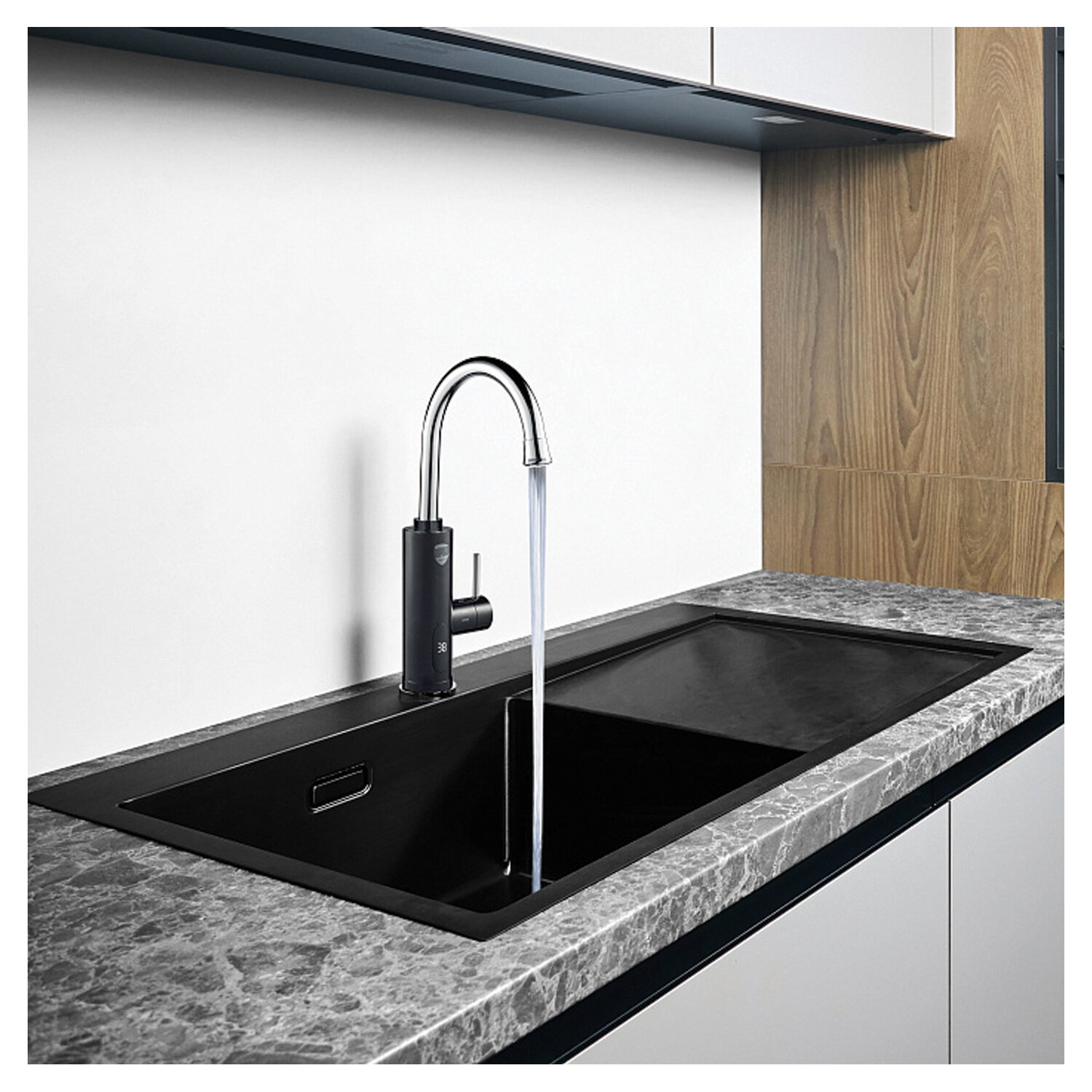 Водонагреватель проточный электрический ROYAL THERMO QuickTap, 3,3 кВт, 1,48 л/м, кран, черный Код товара: 458999 2 790,97 ₽ Купить Производитель:ROYAL THERMO Получайте горячую воду мгновенно с проточным водонагревателем ROYAL THERMO QuickTap – компактным решением, заменяющим обычный смеситель на раковине! Этот стильный черный кран с мощностью 3,3 кВт обеспечивает подачу воды со скоростью 1,48 л/мин при температуре до 60 °C, избавляя от ожидания и сложных установок. Благодаря миниатюрным размерам (23,5х11,5х38 см) и металлопластиковому корпусу, он органично впишется в интерьер кухни или ванной, а LED-дисплей в реальном времени информирует о состоянии нагрева. Модель оснащена защитой от перегрева и сухого включения: при отсутствии воды пар безопасно выводится через специальные отверстия, предотвращая повреждение ТЭНа. Класс пылевлагозащиты IPX4 гарантирует надёжность в условиях повышенной влажности. Установка занимает считанные минуты – достаточно заменить смеситель, подключить водонагреватель к стандартной розетке 220-240 В (кабель 1,2 м в комплекте) и настроить напор воды механическим регулятором. Рабочее давление – от 0,4 до 6 бар, подключение – нижнее (1/2 дюйма). Производитель оставляет за собой право без предварительного уведомления вносить изменения в технические характеристики, комплектацию и конструкцию, не ухудшающие эксплуатационные характеристики изделия.Производство: КитайОбъем бака: 0 лВид установки (крепления): на раковину/столешницуМощность: 3.3 кВтВариант размещения: вертикальноеТип подключения: нижнееТип нагревательного элемента: ТЭНЗащита от перегрева: даЗащита от включения без воды: даКоличество режимов нагрева: 1Макс. температура воды: 60 °СМин. температура воды: 0 °СВремя нагрева воды от 10°С до 75°С: 0 мин.Материал внутреннего бака: нержавеющая стальМатериал внешнего корпуса: металл/пластикСерия: QuickTapВысота: 38 смШирина: 23.5 смГлубина: 11.5 смВес (без упаковки): 0.9 кгВес: 1,1 кгРазмер упаковки: 32 × 25 × 9.5 смОбъём: 0.0076 м3Промежуточная упаковка: 1 штТранспортная упаковка: 1 штШтрих-код: 4660294157284 Приложение-1.pdf