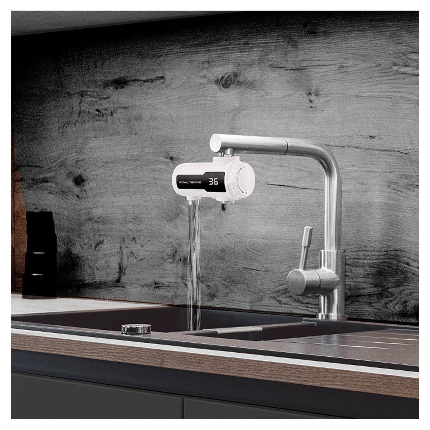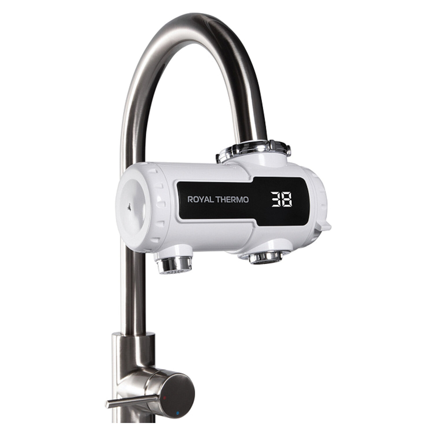 Водонагреватель проточный электрический ROYAL THERMO UniTap Mini 3,3 кВт 1,48л/м наса Код товара: 459001 2 593,95 ₽ Купить Производитель:ROYAL THERMO Получайте горячую воду мгновенно с проточным водонагревателем ROYAL THERMO UniTap Mini — компактным решением, которое устанавливается прямо на смеситель без демонтажа! Этот мини-кран с мощностью 3,3 кВт обеспечивает подачу воды со скоростью 1,48 л/мин при температуре до 60°C, идеально подходя для мытья посуды, рук и других повседневных задач. Благодаря ультракомпактным размерам (7 х 6,5 х 15,6 см) и белому цвету, он незаметно впишется в интерьер кухни или ванной, не занимая лишнего места. Модель оснащена цифровым дисплеем с точностью отображения температуры до 1°C, механическим управлением и двумя уровнями защиты: автоматическим отключением при перегреве и отсутствии воды. Класс пылевлагозащиты IPX4 гарантирует безопасность в условиях повышенной влажности. Установка занимает минуты — в комплекте идут все необходимые переходники для подключения к стандартному смесителю. Подключение к сети 220–240 В через кабель с вилкой (сечение 2,5 мм2), рабочее давление — от 0,4 до 6 бар. Вес устройства — 0,9 кг. Производитель оставляет за собой право без предварительного уведомления вносить изменения в технические характеристики, комплектацию и конструкцию, не ухудшающие эксплуатационные характеристики изделия.Производство: КитайОбъем бака: 0 лВид установки (крепления): на кранМощность: 3.3 кВтВариант размещения: горизонтальноеТип подключения: верхнееТип нагревательного элемента: ТЭНЗащита от перегрева: даЗащита от включения без воды: даКоличество режимов нагрева: 1Макс. температура воды: 60 °СМин. температура воды: 0 °СВремя нагрева воды от 10°С до 75°С: 0 мин.Материал внутреннего бака: нержавеющая стальМатериал внешнего корпуса: пластикСерия: UniTap MiniВысота: 15.6 смШирина: 7 смГлубина: 6.5 смВес (без упаковки): 0.9 кгВес: 1,1 кгРазмер упаковки: 11 × 18 × 24 смОбъём: 0.0048 м3Промежуточная упаковка: 1 штТранспортная упаковка: 1 штШтрих-код: 4660294157321 Приложение-1.pdf