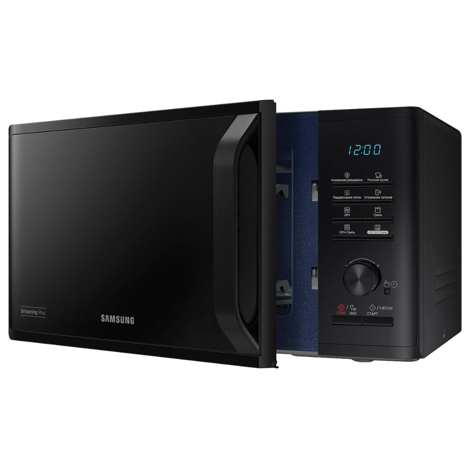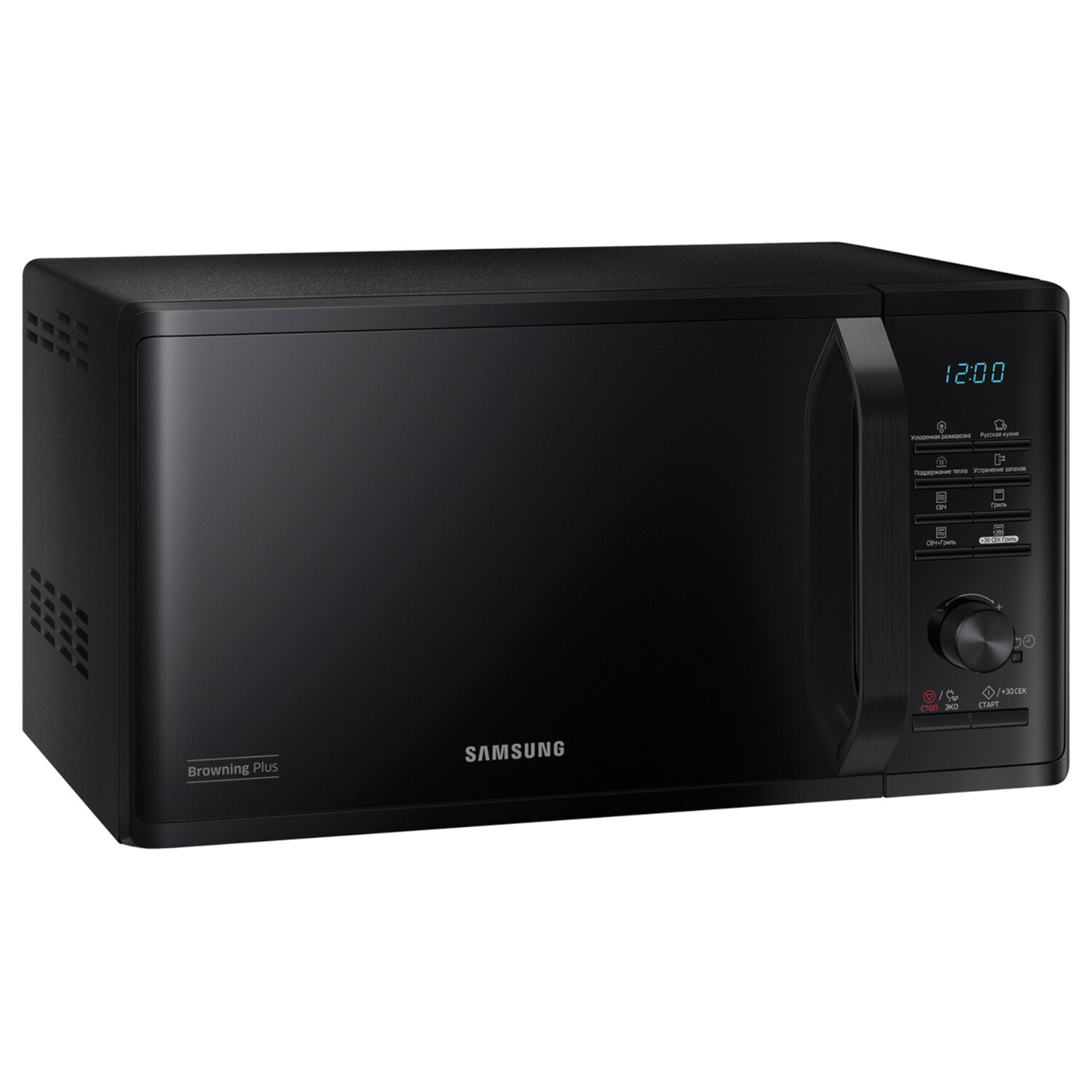 Микроволновая печь SAMSUNG MG23K3515AK/BW, объем 23 л, мощность 800 Вт, электронное управление, черная Код товара: 457186 16 065 ₽ Купить Производитель:SAMSUNG Микроволновая печь SAMSUNG MG23K3515AK/BW – сочетание функциональности и современного дизайна. Данная модель подойдет к любому интерьеру, а привычное и понятное электронное управление не покажется сложным в обращении. Микроволновая печь Samsung MG23K3515AK – современное многофункциональное устройство с предустановленными автоматическими программами приготовления и размораживания, которые помогут сэкономить время и силы. Гриль даст возможность получить хрустящую румяную корочку. Для ускорения процесса его можно комбинировать с микроволнами. Функция "Поддержание тепла" сохранит блюдо горячим. Режим "Удаление запахов" поможет освежить камеру, что особенно актуально после приготовления сильно пахнущих продуктов. Внутреннее покрытие печи выполнено из биокерамики, это прочный и гигиеничный материал, устойчивый к царапинам и другим механическим повреждениям. Его легко поддерживать в чистоте даже без использования особо сильных моющих средств. Производитель оставляет за собой право без предварительного уведомления вносить изменения в технические характеристики, комплектацию и конструкцию, не ухудшающие эксплуатационные характеристики изделия.Производство: ВьетнамОбъем: 23 лМощность микроволн: 800 ВтУправление: электронноеВнутреннее покрытие: керамическая эмальФункционал: автоматическая разморозка, автоматический разогрев, автоматическое поддержание температуры, гриль, устранение запаховДисплей: даТаймер: 99 мин.Блокировка от детей: даВнутреннее освещение: даВстроенные часы: даНаличие звукового сигнала: даНаличие поворотного стола: даКоличество автоматических программ: 6 шт.Диаметр поддона: 28.8 смОткрывание дверцы: ручкаСерия: MG23K3515AKДизайн: MG23K3515AK/BWЦвет корпуса: черныйШирина: 48.9 смВысота: 27.5 смГлубина: 39.3 смВес (без упаковки): 13 кгВес: 15 кгРазмер упаковки: 33 × 42 × 56 смОбъём: 0.0776 м3Промежуточная упаковка: 1 штТранспортная упаковка: 1 штШтрих-код: 8806088566900 Приложение-1.pdf Сертификат-1.jpg Сертификат-2.jpg