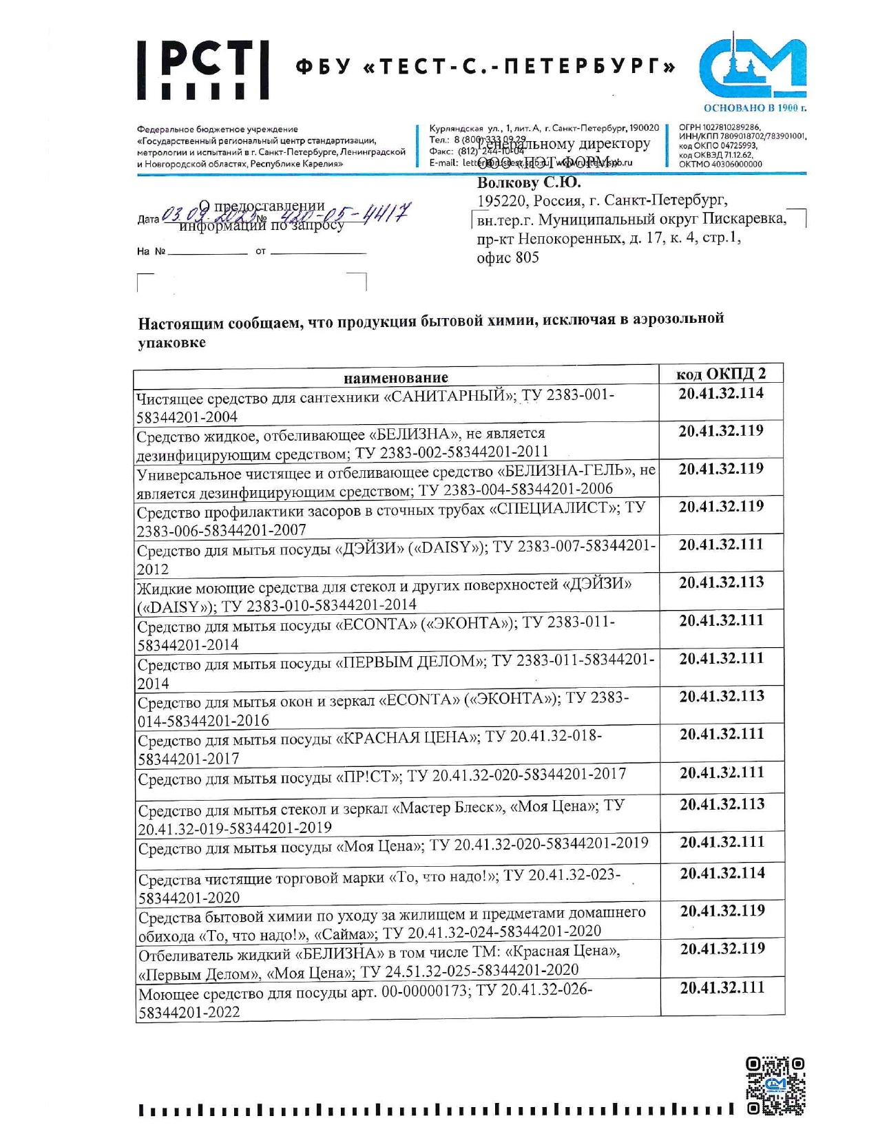 Средство чистящее для сантехники с щавелевой кислотой, АНТИРЖАВЧИНА, 5 л, САНИТАРНЫЙ, МИНПРОМТОРГ Код товара: 702436 453,2 ₽ Купить Производитель:САНИТАРНЫЙ Для удаления ржавчины, отложений извести и мыльного камня с сантехники, акриловых ванн, душевых кабин, кафеля, фаянсовых, фарфоровых, керамических и пластиковых поверхностей. Универсальное чистящее средство для сантехники САНИТАРНЫЙ ГЕЛЬ (на основе композиции органических и неорганических кислот) предназначено для чистки поверхности унитазов, раковин, ванн (в том числе акриловых), кафельной плитки, других фаянсовых и акриловых поверхностей. Удаляет биологические загрязнения, известковый налёт и ржавчину, устраняет неприятные запахи. Не рекомендуется применять на никелированных, латунных, эмалированных поверхностях (кроме покрытых кислотостойкими эмалями). Не применять одновременно с щелочными чистящими средствами! При работе со средством необходимо использовать перчатки. Способ применения: равномерно щеткой или губкой распределить средство по загрязнённой поверхности. Через 10 минут после нанесения смыть средство вместе с загрязнениями с поверхности. При необходимости воспользоваться щеткой или губкой. Состав: более 30% очищенная вода; более 5%, но менее 15% соляная кислота; менее 5% композиция неионогенных ПАВов, менее 5% краситель, менее 5% отдушка.Производство: РоссияНазначение: для сантехники, кафеля, металлических и полимерных поверхностей и удаления ржавчиныСерия: САНИТАРНЫЙЭффект от использования: очищение поверхности, удаление запаха, удаление известкового налета, удаление ржавчиныПодходит для поверхностей: акрил, кафель, пластик, фаянсОбъем/вес: 5000 мл/гОтдушка: нетФорма выпуска: гельСодержит: кислотуТовар относится к сегменту ЭКОНОМ: даpH: 4Дозатор: нетУпаковка: канистраСрок годности: 36 месВес: 5,25 кгРазмер упаковки: 29.2 × 18.9 × 12.7 смОбъём: 0.0081 м3Промежуточная упаковка: 3 штТранспортная упаковка: 3 штШтрих-код: 4612727501546 Сертификат-1.jpg Сертификат-2.jpg Сертификат-3.jpg