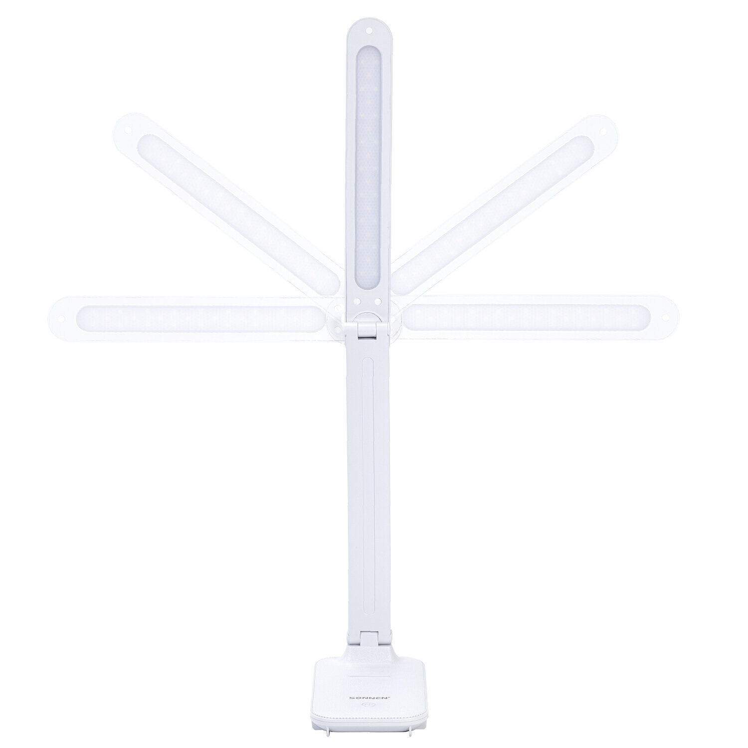 Настольная лампа / светильник беспроводная SONNEN PT-102, USB, LED, 3 Вт, 3 режима, белый Код товара: 238777 627,27 ₽ Купить Производитель:SONNEN Настольная лампа-светильник SONNEN PT-102 предназначена для освещения рабочего места в офисе или дома. Конструкция светильника обеспечивает произвольную регулировку направления света. Многофункциональный светодиодный светильник 3 Вт – идеальное решение для офиса и дома. Светильник оснащен 26 яркими диодами, что обеспечивает равномерное освещение и бережную нагрузку на глаза при длительной работе. Три режима цветовой температуры (тёплый, нейтральный, холодный свет) и бесступенчатая регулировка яркости позволяют настроить свет под любую задачу и время суток. Встроенный аккумулятор обеспечит бесперебойную работу светильника, а специальная подставка для телефона позволит удобно держать устройство под рукой.Производство: КитайТип лампы: светодиоднаяТип крепления: подставкаМощность: 3 ВтЦоколь: нетНазначение: универсальныйСерия: PT-10Цветность света: нейтральный белый - 3500-4500 К, теплый белый - 2700-3400 К, холодный белый - от 6100 и болееСветовой поток: 300 ЛюменКол-во режимов свечения: 3Источник света: 26 LEDИсточник питания: сеть, аккумуляторРасположение кнопки выключателя: на корпусеСенсорный выключатель: даПроизвольная регулировка направления подсветки: даОтсутствие мерцания и шумов: даСкладная конструкция: даВысота: 35 смДлина шнура: 1.2 мМатериал корпуса: пластикЦвет корпуса: белыйВес: 494 грРазмер упаковки: 5.8 × 34.5 × 10.2 смОбъём: 0.0025 м3Промежуточная упаковка: 40 штТранспортная упаковка: 40 штШтрих-код: 4606224465937 Сертификат-1.jpg Сертификат-2.jpg