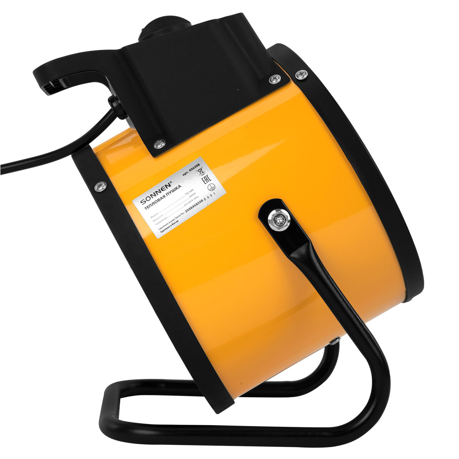 Тепловая пушка электрическая SONNEN TSE-30FA, 3000 Вт, ТЭН/спиральный нагревательный элемент, 2 режима Код товара: 456208 3 307,34 ₽ Купить Производитель:SONNEN Тепловая пушка SONNEN TSE-30FA идеально подойдет для поддержания комфортной температуры воздуха в жилых и нежилых помещениях площадью до 30 м2. Тепловая пушка оснащена спиральным нагревательным элементом мощностью 3000 Вт. Предназначена для быстрого обогрева помещения площадью до 30 м2. Оснащена функцией защиты от перегрева. Два режима работы тепловой пушки и встроенный механический термостат помогут подобрать оптимальную температуру воздуха.Производство: КитайТип: электрическаяМощность: 3000 ВтТермостат (терморегулятор): даВентиляция без нагрева: даРекомендованная площадь обогрева: 30 м2Регулировка мощности: даСерия: TSEНапряжение: 220 ВЧастота сети: 50 ГцПроизводительность теплого воздуха: 260 м3/чЗащита от перегрева: даНаличие ручки-держателя: даЭлектрический провод в комплекте: даДлина шнура: 1.35 мФорма: круглаяВысота: 315 ммШирина: 190 ммГлубина: 225 ммЦвет: желтыйВес (без упаковки): 2.4 кгВес: 2,64 кгРазмер упаковки: 19.4 × 31.9 × 23.5 смОбъём: 0.0145 м3Промежуточная упаковка: 1 штТранспортная упаковка: 1 штШтрих-код: 4606224486680 Файлы Приложение-1.pdf Сертификат-1.jpg Сертификат-2.jpg Сертификат-3.jpg Сертификат-4.jpg Сертификат-5.jpg