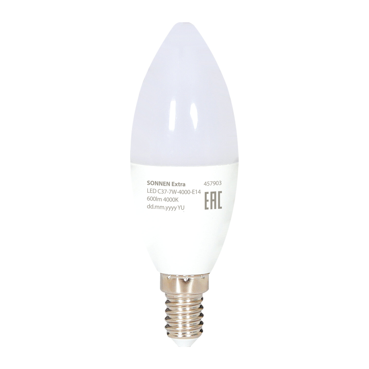 Лампа светодиодная SONNEN EXTRA, 7 (60) Вт, Е14, свеча, нейтральный белый, 30000 ч, LED C37-7W-4000-Е14 Код товара: 457903 67,6 ₽ Купить Производитель:SONNEN Светодиодная лампа SONNEN EXTRA компактного размера. Срок службы лампы составляет не менее 30000 часов, что примерно в 30 раз больше, чем у обычной лампы накаливания. Оснащена цоколем типа Е14 и излучает нейтральный белый cвет. Отличается длительным сроком службы. Имеет форму колбы "свеча" и сделана из белого матового пластика. Мощность лампы составляет 7 Вт. Представленная модель дает световой поток 600 Лм, а цветовая температура равна 4000 K. Диаметр лампы составляет 37 мм. Производитель сохраняет за собой право на внесение изменений в технические характеристики, комплектацию и конструкцию данной модели для улучшения эксплуатационных свойств без предварительного уведомления.Производство: Китай Тип цоколя : E14Оттенок света: нейтральный белыйМощность: 7 ВтТип лампы: светодиоднаяТип колбы: свечаВид колбы: матоваяМинимальное рабочее напряжение: 175 ВМаксимальное рабочее напряжение: 265 ВМощность эквивалентной по световому потоку лампы накаливания: 60 ВтСветовой поток: 600 ЛмЦветовая температура: 4000 КИндекс цветопередачи: 80 %Срок службы: 30000 ч.Высота (длина) лампы: 100 ммДиаметр лампы: 37 ммВес: 24 грРазмер упаковки: 3.8 × 10 × 3.8 смОбъём: 0.0002 м3Промежуточная упаковка: 10 штТранспортная упаковка: 100 штШтрих-код: 4606224501628 Сертификат-1.jpg Сертификат-2.jpg