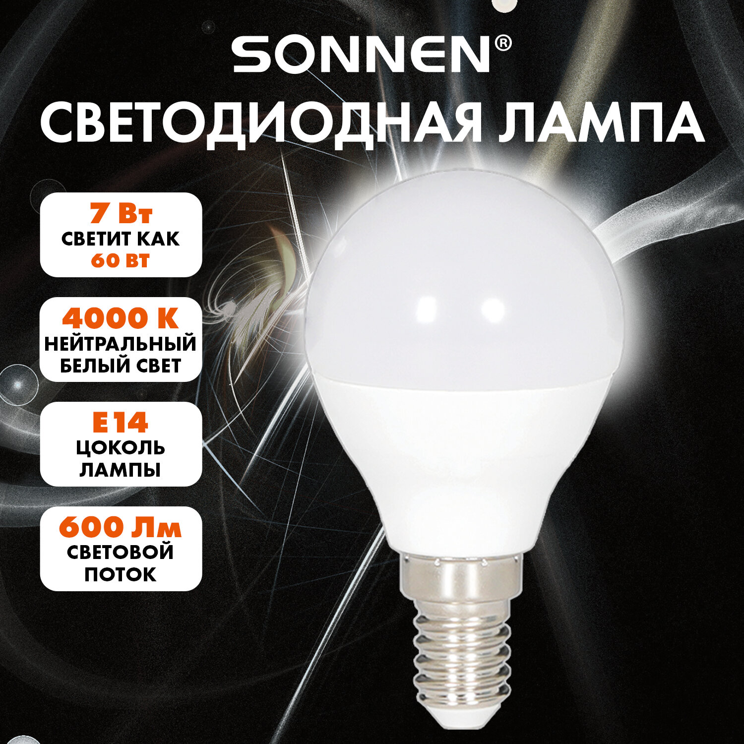 Лампа светодиодная SONNEN EXTRA, 7 (60) Вт, E14, шар, нейтральный белый, 30000 ч, LED G45-7W-4000-Е14 Код товара: 457908 66,68 ₽ Купить Производитель:SONNEN Светодиодная лампа SONNEN EXTRA компактного размера. Срок службы лампы составляет не менее 30000 часов, что примерно в 30 раз больше, чем у обычной лампы накаливания. Оснащена цоколем типа Е14 и излучает нейтральный белый cвет. Отличается длительным сроком службы. Имеет форму колбы "шар" и сделана из белого матового пластика. Мощность лампы составляет 7 Вт. Представленная модель дает световой поток 600 Лм, а цветовая температура равна 4000 K. Диаметр лампы составляет 45 мм. Производитель сохраняет за собой право на внесение изменений в технические характеристики, комплектацию и конструкцию данной модели для улучшения эксплуатационных свойств без предварительного уведомления.Производство: Китай Тип цоколя : E14Оттенок света: нейтральный белыйМощность: 7 ВтТип лампы: светодиоднаяТип колбы: шарВид колбы: матоваяМинимальное рабочее напряжение: 175 ВМаксимальное рабочее напряжение: 265 ВМощность эквивалентной по световому потоку лампы накаливания: 60 ВтСветовой поток: 600 ЛмЦветовая температура: 4000 КИндекс цветопередачи: 80 %Срок службы: 30000 ч.Высота (длина) лампы: 80 ммДиаметр лампы: 45 ммВес: 25 грРазмер упаковки: 4.9 × 4.7 × 8.1 смОбъём: 0.0002 м3Промежуточная упаковка: 10 штТранспортная упаковка: 100 штШтрих-код: 4606224501673 Сертификат-1.jpg Сертификат-2.jpg