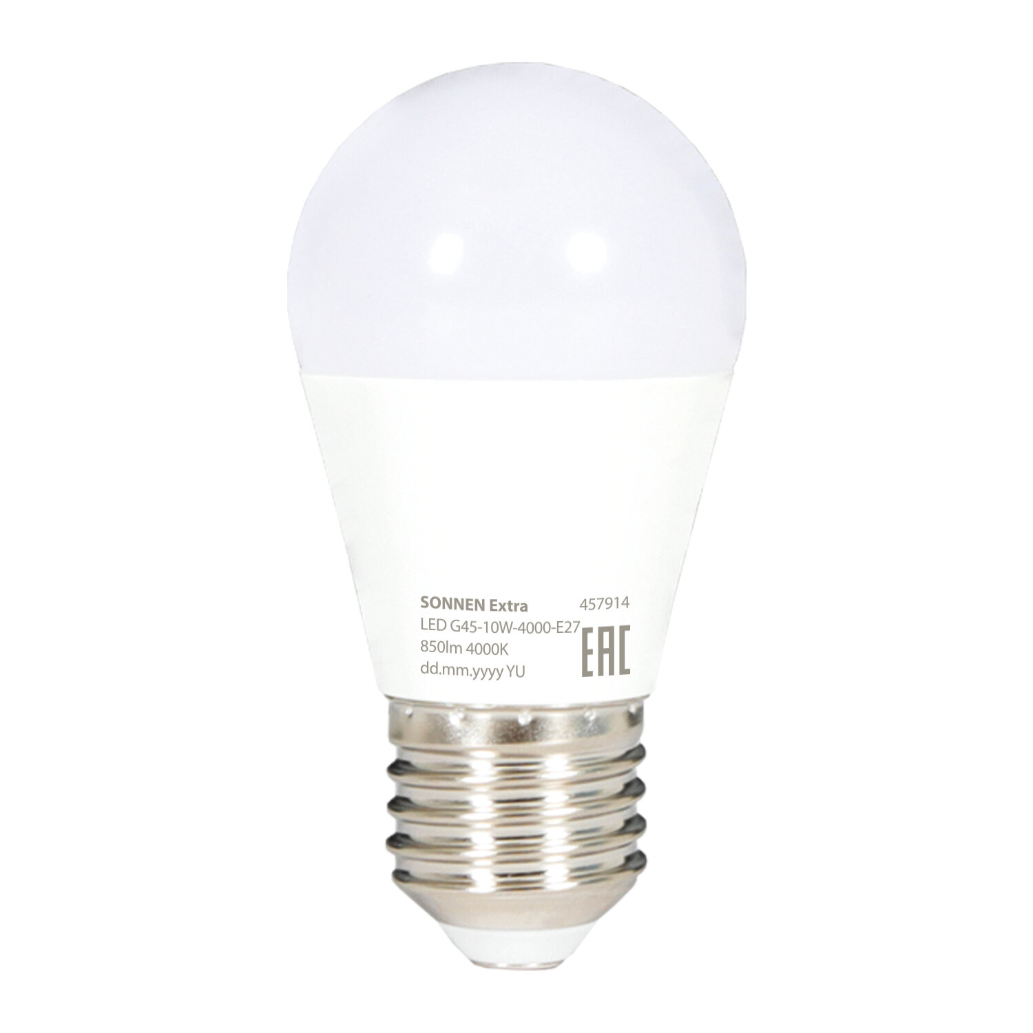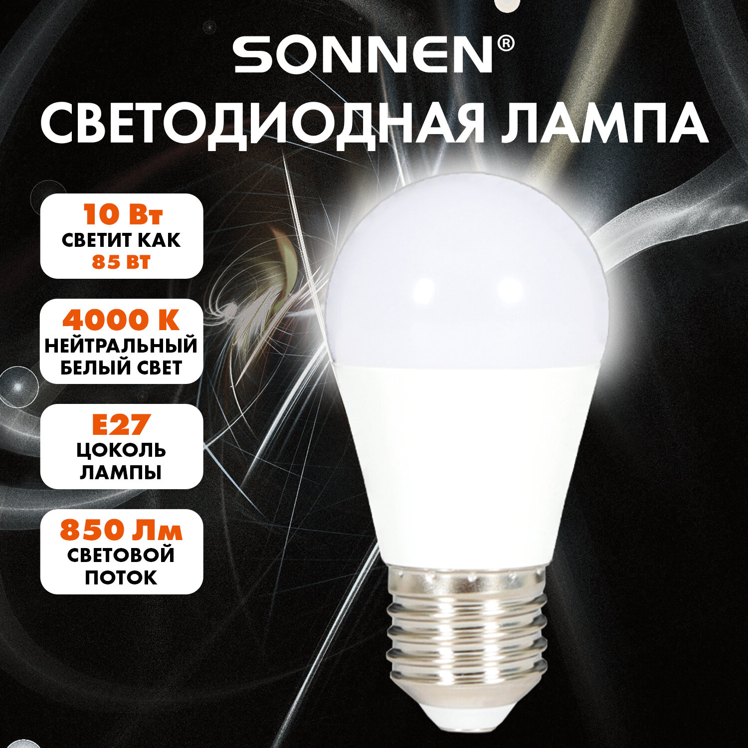 Лампа светодиодная SONNEN EXTRA, 10 (85) Вт, E27, шар, нейтральный белый, 30000 ч, LED G45-10W-4000-Е27 Код товара: 457914 80,48 ₽ Купить Производитель:SONNEN Светодиодная лампа SONNEN EXTRA компактного размера. Срок службы лампы составляет не менее 30000 часов, что примерно в 30 раз больше, чем у обычной лампы накаливания. Оснащена цоколем типа Е27 и излучает нейтральный белый cвет. Отличается длительным сроком службы. Имеет форму колбы "шар" и сделана из белого матового пластика. Мощность лампы составляет 10 Вт. Представленная модель дает световой поток 850 Лм, а цветовая температура равна 4000 K. Диаметр лампы составляет 45 мм. Производитель сохраняет за собой право на внесение изменений в технические характеристики, комплектацию и конструкцию данной модели для улучшения эксплуатационных свойств без предварительного уведомления.Производство: Китай Тип цоколя : E27Оттенок света: нейтральный белыйМощность: 10 ВтТип лампы: светодиоднаяТип колбы: шарВид колбы: матоваяМинимальное рабочее напряжение: 175 ВМаксимальное рабочее напряжение: 265 ВМощность эквивалентной по световому потоку лампы накаливания: 85 ВтСветовой поток: 850 ЛмЦветовая температура: 4000 КИндекс цветопередачи: 80 %Срок службы: 30000 ч.Высота (длина) лампы: 80 ммДиаметр лампы: 45 ммВес: 26 грРазмер упаковки: 4.6 × 4.6 × 8.1 смОбъём: 0.0002 м3Промежуточная упаковка: 10 штТранспортная упаковка: 100 штШтрих-код: 4606224501734 Сертификат-1.jpg Сертификат-2.jpg