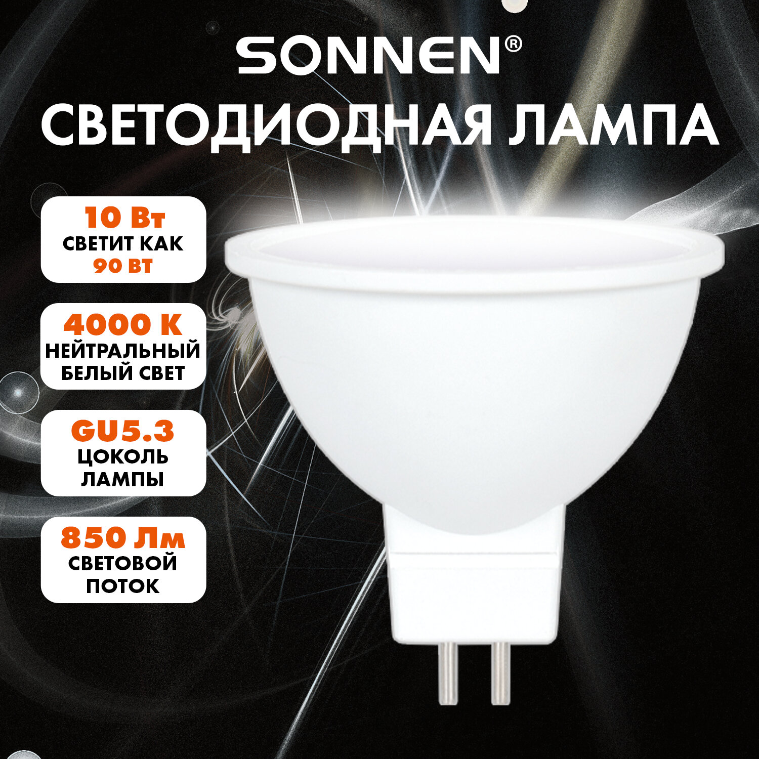 Лампа светодиодная SONNEN EXTRA, 10 (90) Вт, GU5.3, софит, нейтральный белый, 30000 ч, LED MR16-GU5.3-10W-4000 Код товара: 457919 72,94 ₽ Купить Производитель:SONNEN Светодиодная лампа SONNEN EXTRA компактного размера. Срок службы лампы составляет не менее 30000 часов, что примерно в 30 раз больше, чем у обычной лампы накаливания. Оснащена цоколем типа GU5.3 и излучает нейтральный белый cвет. Отличается длительным сроком службы. Имеет форму колбы "софит" и сделана из белого матового пластика. Мощность лампы составляет 10 Вт. Представленная модель дает световой поток 850 Лм, а цветовая температура равна 4000 K. Диаметр лампы составляет 50 мм. Производитель сохраняет за собой право на внесение изменений в технические характеристики, комплектацию и конструкцию данной модели для улучшения эксплуатационных свойств без предварительного уведомления.Производство: Китай Тип цоколя : GU5.3Оттенок света: нейтральный белыйМощность: 10 ВтТип лампы: светодиоднаяТип колбы: софитВид колбы: матоваяМинимальное рабочее напряжение: 175 ВМаксимальное рабочее напряжение: 265 ВМощность эквивалентной по световому потоку лампы накаливания: 90 ВтСветовой поток: 850 ЛмЦветовая температура: 4000 КИндекс цветопередачи: 80 %Срок службы: 30000 ч.Высота (длина) лампы: 48 ммДиаметр лампы: 50 ммВес: 28 грРазмер упаковки: 5.6 × 5.2 × 6.3 смОбъём: 0.0002 м3Промежуточная упаковка: 5 штТранспортная упаковка: 100 штШтрих-код: 4606224501789 Сертификат-1.jpg Сертификат-2.jpg