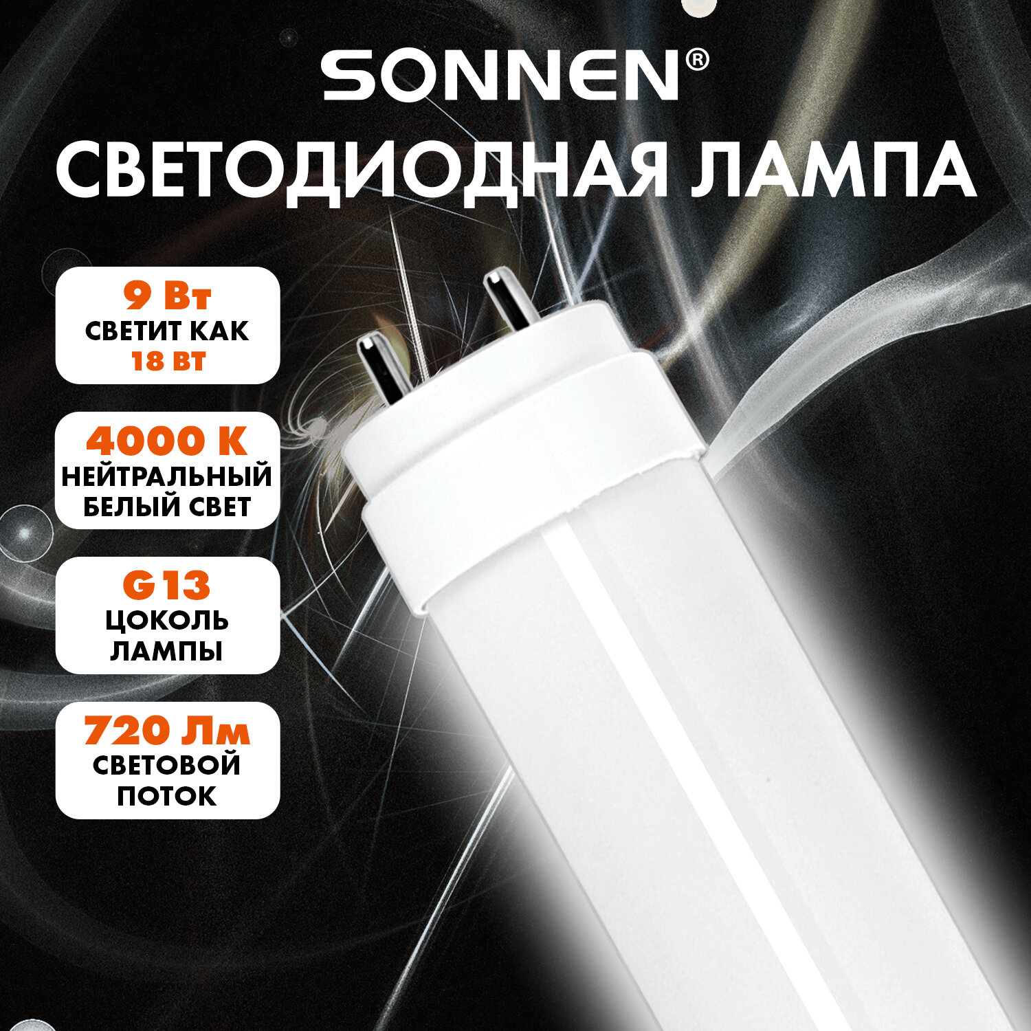 Лампа-трубка светодиодная SONNEN EXTRA, 9 (18) Вт, G13, 30000 ч, 60 см, нейтральный белый, LED T8-9W-4000-G13 Код товара: 457937 109,35 ₽ Купить Производитель:SONNEN Светодиодная лампа-трубка SONNEN EXTRA. Срок службы лампы составляет не менее 30000 часов, что примерно в 30 раз больше, чем у обычной лампы накаливания. Оснащена цоколем типа G13 и излучает нейтральный белый cвет. Отличается длительным сроком службы. Имеет форму колбы "трубка" и сделана из белого матового пластика. Мощность лампы составляет 9 Вт. Представленная модель дает световой поток 720 Лм, а цветовая температура равна 4000 K. Длина лампы составляет 60 см. Производитель сохраняет за собой право на внесение изменений в технические характеристики, комплектацию и конструкцию данной модели для улучшения эксплуатационных свойств без предварительного уведомления.Производство: КитайТип цоколя: G13Тип колбы: трубкаВид колбы: матоваяОттенок света: нейтральный белыйМинимальное рабочее напряжение: 175 ВМаксимальное рабочее напряжение: 265 ВТип лампы: светодиоднаяМощность: 9 ВтМощность эквивалентной по световому потоку люминесцентной лампы: 18 ВтСветовой поток: 720 ЛмЦветовая температура: 4000 КИндекс цветопередачи: 80 %Срок службы: 30000 чВысота (длина) лампы: 60 смДиаметр лампы: 25 ммВес: 117 грРазмер упаковки: 2.5 × 60.5 × 2.5 смОбъём: 0.0008 м3Промежуточная упаковка: 25 штТранспортная упаковка: 25 штШтрих-код: 4606224501963 Сертификат-1.jpg Сертификат-2.jpg