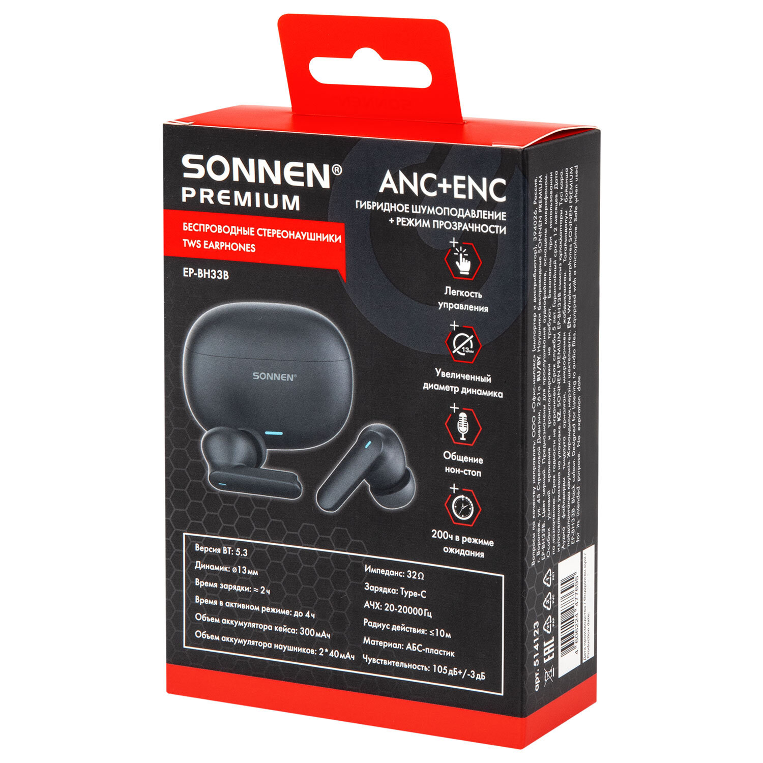 Наушники беспроводные TWS внутриканальные, гибридное шумоподавление ANC + ENC, SONNEN PREMIUM EP-BH33B, Bluetooth 5.3, черные Код товара: 514123 1 188,82 ₽ Купить Производитель:SONNEN Беспроводные наушники с микрофоном SONNEN PREMIUM EP-BH33B – незаменимый аксессуар для прослушивания музыки, аудиокниг, лекций и подкастов, а также для телефонных разговоров на прогулке, во время занятия спортом, на отдыхе, за рулем. Наушники SONNEN PREMIUM EP-BH33B – это качественный и стильный аксессуар для повседневной жизни и отдыха. Созданы с учетом анатомии ушных раковин, оснащены мягкими силиконовыми амбушюрами, что делает их максимально комфортными в использовании. Гибридное шумоподавление ANC + ENC позволяет наслаждаться прослушиванием и общением, не отвлекаясь на посторонние звуки. А наличие режима прозрачности дает возможность слышать звуки окружающего мира при необходимости*. Модуль Bluetooth версии 5.3 гарантирует бесперебойную и качественную связь с любым источником сигнала, поддерживающим подключение по Bluetooth. Увеличенный диаметр динамика 13 мм обеспечивает объемное и чистое стереозвучание. Встроенный HD-микрофон позволяет оставаться на связи в любой ситуации. Многофункциональный сенсорный датчик делает управление максимально простым и комфортным. Данная модель поддерживает оптимальный для восприятия частотный диапазон 20-20000 Гц. А также обладает высокой чувствительностью 105 дБ и сопротивлением 32 Ом, которые обеспечивают насыщенный звук даже при подключении к слабому источнику сигнала. Объем аккумуляторов наушников по 40 мАч каждый обеспечивает работу в активном режиме прослушивания без дополнительной подзарядки до 4 часов**. Объем аккумулятора зарядного кейса 300 мАч продлевает работу наушников в активном режиме до 16 часов***, в режиме ожидания до 200 часов****. Помимо наушников и кейса в комплект также входят кабель USB-A - Type-C для зарядки кейса, руководство пользователя и гарантийный талон. Упакованы в элегантный цветной картонный короб с пластиковым европодвесом. Упаковка усилена термоусадочной пленкой для дополнительной защиты. Все это делает наушники SONNEN отличным подарком для друзей и близких. Производитель сохраняет за собой право на внесение изменений в технические характеристики, комплектацию и конструкцию данной модели для улучшения эксплуатационных свойств без предварительного уведомления. * ANC (ACTIVE NOISE CANCELLATION) – технология активного шумоподавления. Принцип работы: встроенные микрофоны отслеживают окружающий шум и фильтруют его в наушниках, создавая "антишум", который перекрывает звуки вокруг. ENC (ENVIRONMENTAL NOISE CANCELLATION) – это подавление шума окружающей среды. Данная функция отсекает внешние шумы во время телефонных разговоров и обеспечивает высокое качество передачи голоса собеседнику. Режим прозрачности (TRANSPARENT MODE) – это функция, которая позволяет слышать звуки окружающего мира, не снимая наушники и создавая общую звуковую картину. **Время работы устройства может меняться в зависимости от режима прослушивания, уровня громкости и условий окружающей среды. *** 4 часа от аккумулятора наушников + 12 часов с подзарядкой от кейса. **** Время от полного заряда до полного разряда кейса без сопряжения с источниками сигнала.Производство: КитайКатегория товара: гарнитураРазъем: USB Type-CЗвук: стереоТип наушников: беспроводныеТип крепления: -Материал амбушюров: силиконКоличество каналов