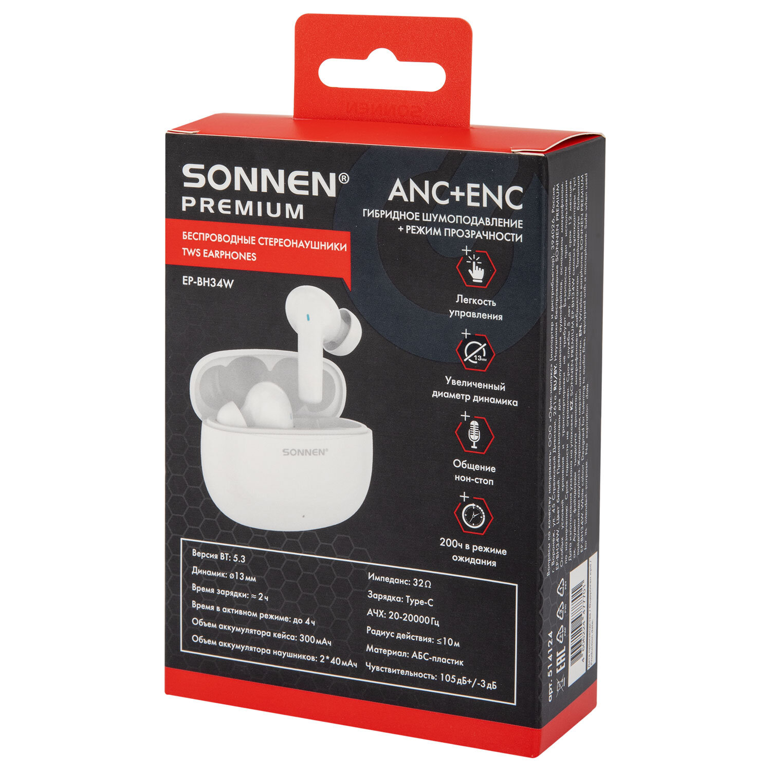 Наушники беспроводные TWS внутриканальные, гибридное шумоподавление ANC + ENC, SONNEN PREMIUM EP-BH34W, Bluetooth 5.3, белые Код товара: 514124 1 188,82 ₽ Купить Производитель:SONNEN Беспроводные наушники с микрофоном SONNEN PREMIUM EP-BH34W – незаменимый аксессуар для прослушивания музыки, аудиокниг, лекций и подкастов, а также для телефонных разговоров на прогулке, во время занятия спортом, на отдыхе, за рулем. Наушники SONNEN PREMIUM EP-BH34W – это качественный и стильный аксессуар для повседневной жизни и отдыха. Созданы с учетом анатомии ушных раковин, оснащены мягкими силиконовыми амбушюрами, что делает их максимально комфортными в использовании. Гибридное шумоподавление ANC + ENC позволяет наслаждаться прослушиванием и общением, не отвлекаясь на посторонние звуки. А наличие режима прозрачности дает возможность слышать звуки окружающего мира при необходимости*. Модуль Bluetooth версии 5.3 гарантирует бесперебойную и качественную связь с любым источником сигнала, поддерживающим подключение по Bluetooth. Увеличенный диаметр динамика 13 мм обеспечивает объемное и чистое стереозвучание. Встроенный HD-микрофон позволяет оставаться на связи в любой ситуации. Многофункциональный сенсорный датчик делает управление максимально простым и комфортным. Данная модель поддерживает оптимальный для восприятия частотный диапазон 20-20000 Гц. А также обладает высокой чувствительностью 105 дБ и сопротивлением 32 Ом, которые обеспечивают насыщенный звук даже при подключении к слабому источнику сигнала. Объем аккумуляторов наушников по 40 мАч каждый обеспечивает работу в активном режиме прослушивания без дополнительной подзарядки до 4 часов**. Объем аккумулятора зарядного кейса 300 мАч продлевает работу наушников в активном режиме до 16 часов***, в режиме ожидания до 200 часов****. Помимо наушников и кейса в комплект входит съемный силиконовый шнурок-держатель для удобства переноски, а также кабель USB-A - Type-C для зарядки кейса, руководство пользователя и гарантийный талон. Упакованы в элегантный цветной картонный короб с пластиковым европодвесом. Упаковка усилена термоусадочной пленкой для дополнительной защиты. Все это делает наушники SONNEN отличным подарком для друзей и близких. Производитель сохраняет за собой право на внесение изменений в технические характеристики, комплектацию и конструкцию данной модели для улучшения эксплуатационных свойств без предварительного уведомления. *ANC (ACTIVE NOISE CANCELLATION) – технология активного шумоподавления. Принцип работы: встроенные микрофоны отслеживают окружающий шум и фильтруют его в наушниках, создавая "антишум", который перекрывает звуки вокруг. ENC (ENVIRONMENTAL NOISE CANCELLATION) – это подавление шума окружающей среды. Данная функция отсекает внешние шумы во время телефонных разговоров и обеспечивает высокое качество передачи голоса собеседнику. Режим прозрачности (TRANSPARENT MODE) – это функция, которая позволяет слышать звуки окружающего мира, не снимая наушники и создавая общую звуковую картину. **Время работы устройства может меняться в зависимости от режима прослушивания, уровня громкости и условий окружающей среды. *** 4 часа от аккумулятора наушников + 12 часов с подзарядкой от кейса. **** Время от полного заряда до полного разряда кейса без сопряжения с источниками сигнала.Производство: КитайКатегория товара: гарнитураРазъем: USB Type-CЗвук: стереоТип наушников: беспроводные