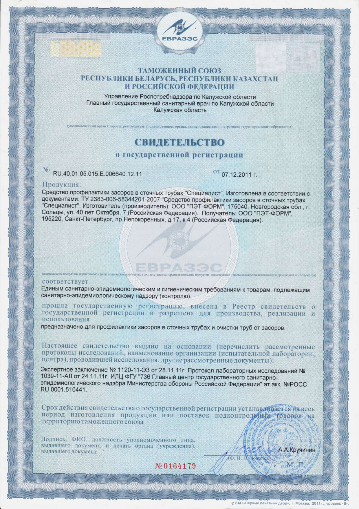 Средство для прочистки канализационных труб 1 л, ТРУБОЧИСТ-СПЕЦИАЛИСТ, МИНПРОМТОРГ Код товара: 702433 81,94 ₽ Купить Производитель:СПЕЦИАЛИСТ Предназначено для растворения загрязнений в канализационных трубах. Устраняет засоры в раковинах и унитазах. Предназначено для профилактики и очистки сточных труб от засоров. Надежное решение проблемы засоров в системе водоотведения. Этот мощный продукт эффективно справляется с засорами в канализационных трубах и стоках, обеспечивая чистоту и свободное прохождение воды. Способ применения: Залить в сливное отверстие раковины или ванны 250–300 грамм средства на 3–4 часа. Затем промыть трубы большим количеством воды. При необходимости операцию повторить. Для профилактики засоров применять средство не реже одного раз в месяц. Состав: Более 30% вода очищенная; более 5%, но менее 15% гидроксид натрия.Производство: РоссияФорма выпуска: жидкостьОбъем/вес: 1000 мл/гСерия: АнтизасорМатериал труб: универсальныйЭффект от использования: устраняет засорыЭффективен в холодной воде: даБез хлора: даТовар относится к сегменту ЭКОНОМ: даУпаковка: бутылкаСрок годности: 36 месВес: 1,05 кгРазмер упаковки: 24.5 × 8 × 8 смОбъём: 0.0017 м3Промежуточная упаковка: 15 штТранспортная упаковка: 15 штШтрих-код: 4612727500020 Сертификат-1.jpg Сертификат-2.jpg