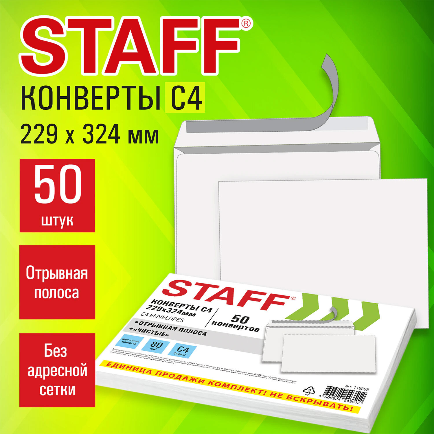 Конверты С4 (229х324 мм), отрывная лента, 80 г/м2, КОМПЛЕКТ 50 шт., внутренняя запечатка, STAFF Код товара: 118668 431,55 ₽ Купить Производитель:STAFF Конверт почтовый STAFF формата С4 предназначен для рассылки документов, журналов и и другой корреспонденции формата А4 без сложения. В конверт формата C4 можно вложить документ формата А4. Плотность бумаги 80 г/м2 позволяет размещать тяжелую корреспонденцию и скрыть содержимое от посторонних глаз. Отрывная полоса типа STRIP обеспечивает надежное запечатывание конверта и сохранность личного письма или важного документа.Производство: РоссияФормат конверта: С4Формат клапана: прямойСпособ заклеивания: полоса STRIPВнутренняя запечатка: даСерия: Формат С4 STRIPФормат вложения без сложения: А4Окно: нетЦвет: белыйПлотность бумаги: 80 г/м2Количество в комплекте: 50 шт.Упаковка: термоусадочная пленкаВес: 730 грРазмер упаковки: 2.1 × 32.4 × 22.9 смОбъём: 0.0024 м3Промежуточная упаковка: 10 штТранспортная упаковка: 10 штШтрих-код: 4606224543512 Файлы Приложение-1.pdf Сертификат-1.jpg Сертификат-2.jpg Сертификат-3.jpg Сертификат-4.jpg Сертификат-5.jpg Сертификат-6.jpg Сертификат-7.jpg Сертификат-8.jpg Сертификат-9.jpg Сертификат-10.jpg Сертификат-11.jpg Сертификат-12.jpg Сертификат-13.jpg Сертификат-14.jpg Сертификат-15.jpg Сертификат-16.jpg Сертификат-17.jpg Сертификат-18.jpg Сертификат-19.jpg Сертификат-20.jpg Сертификат-21.jpg Сертификат-22.jpg Сертификат-23.jpg Сертификат-24.jpg Сертификат-25.jpg Сертификат-26.jpg