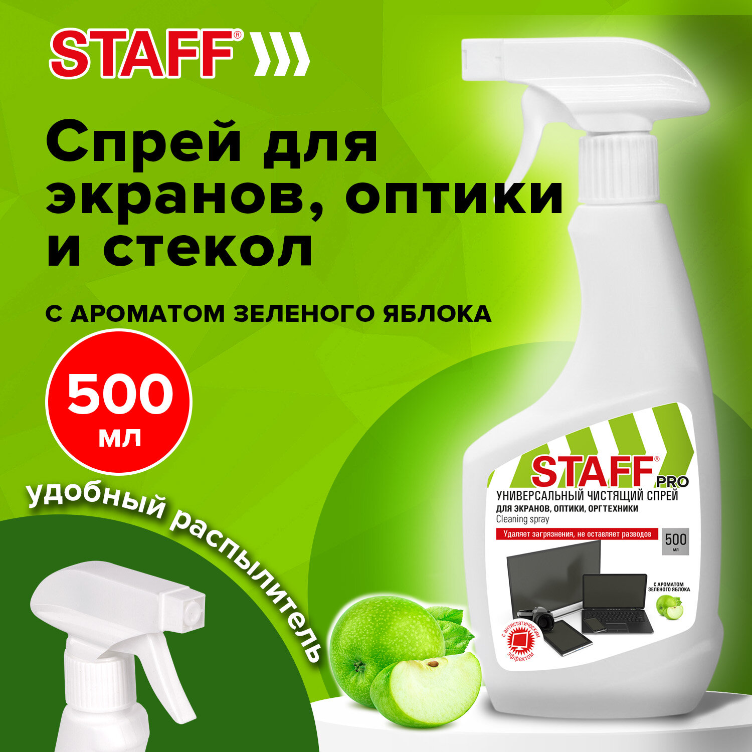 Чистящая жидкость-спрей для телевизоров, мониторов, техники, оптики и стекол, 500 мл, STAFF PRO Код товара: 514228 269,5 ₽ Купить Производитель:STAFF STAFF PRO – универсальное решение для бережной и эффективной очистки широкого спектра поверхностей. Идеально подходит для очистки экранов телевизоров, мониторов, ноутбуков, планшетов, смартфонов, а также для оптики (очки, фотообъективы, бинокли) и любых стеклянных поверхностей. Специально разработанная формула эффективно удаляет пыль, отпечатки пальцев, жирные пятна, разводы и другие загрязнения. Не повреждает антибликовые покрытия, пластик и другие деликатные материалы, оставляя после себя приятный аромат зеленого яблока. ВНИМАНИЕ! Перед очисткой электроприборов отключите их от источников тока. Устройства с питанием от батареек или аккумуляторов переведите в режим отключения или удалите источник питания.Производство: РоссияОчищаемые поверхности: Экраны, стекло и пластикСерия: Cleaning sprayАнтистатический эффект: даС ароматизатором: даОбъем, мл: 500Срок годности: 36 месВес: 570 грРазмер упаковки: 25.4 × 11.3 × 5 смОбъём: 0.0016 м3Промежуточная упаковка: 12 штТранспортная упаковка: 12 штШтрих-код: 4606224516868 Файлы Приложение-1.pdf Сертификат-1.jpg Сертификат-2.jpg Сертификат-3.jpg